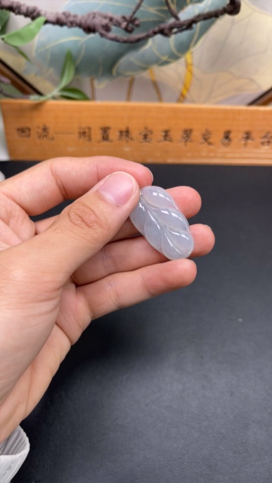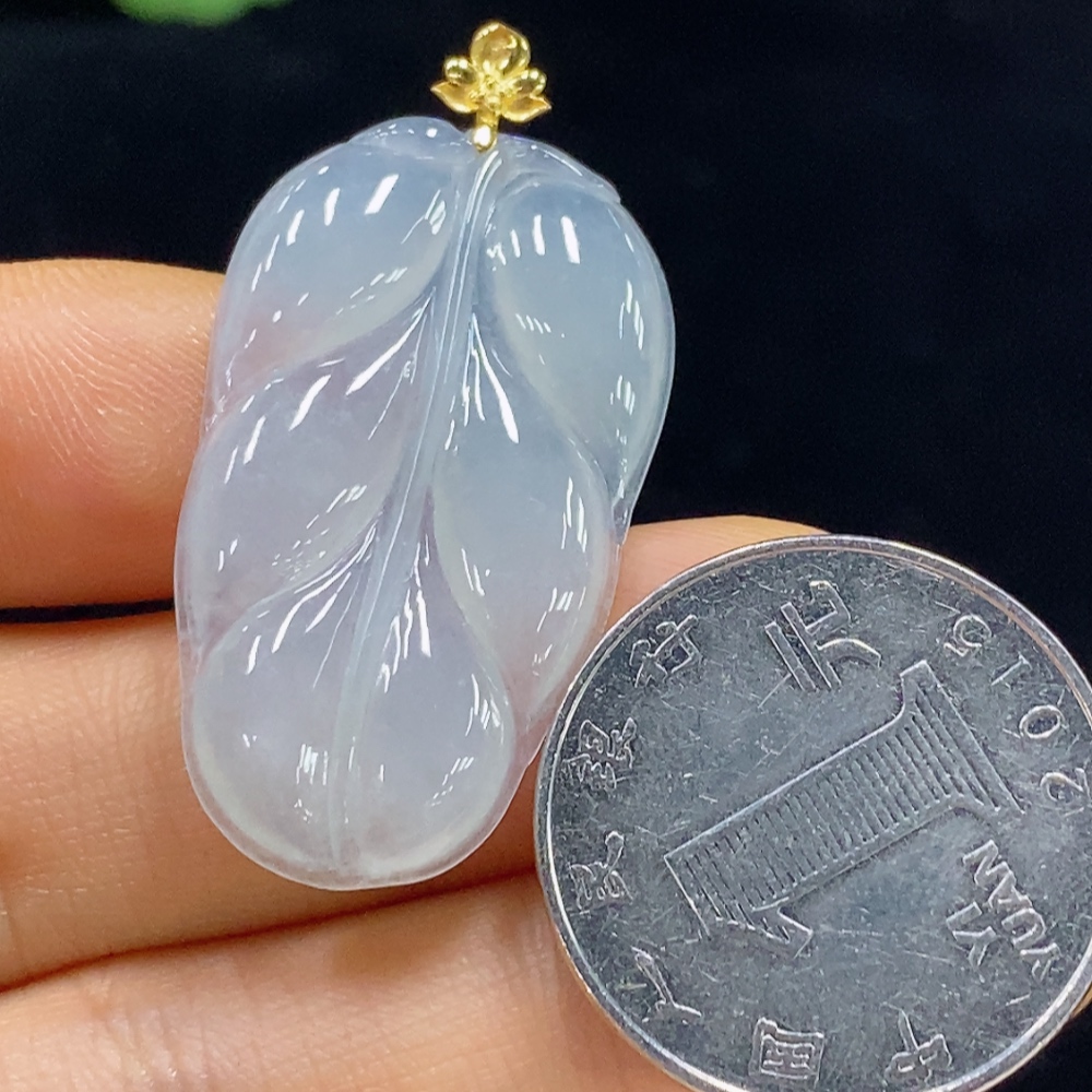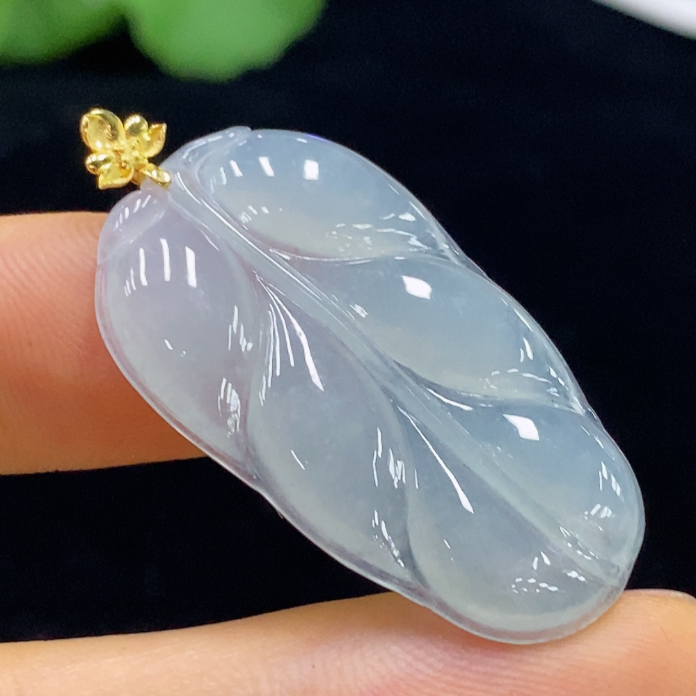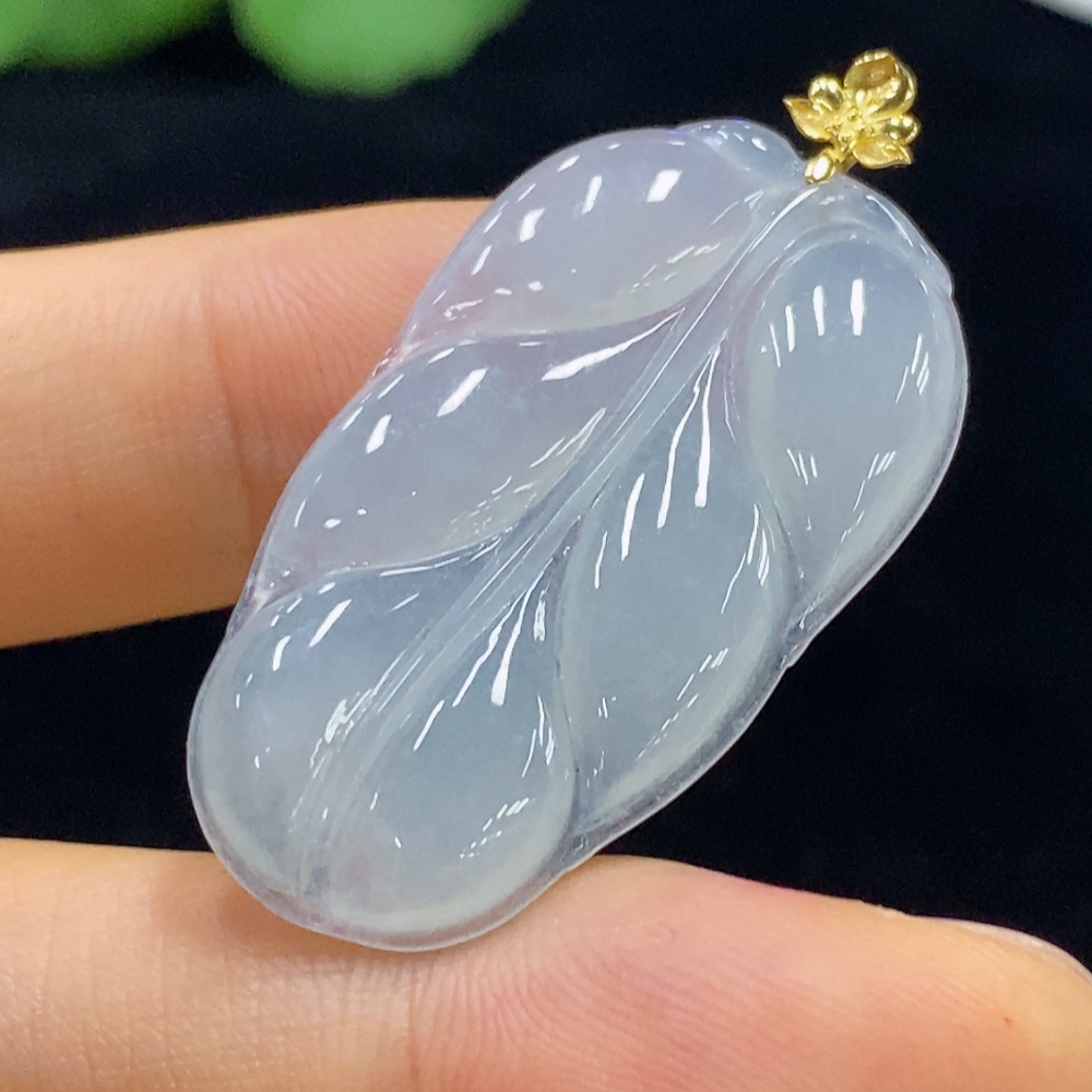 Jadeite Pendant Leaf with 18k Bail Total Weight Approx. 4.91g