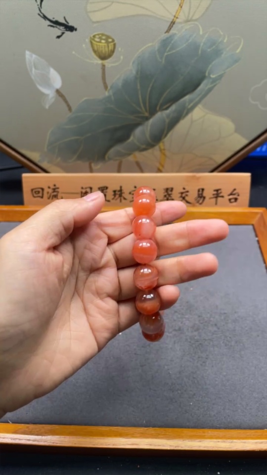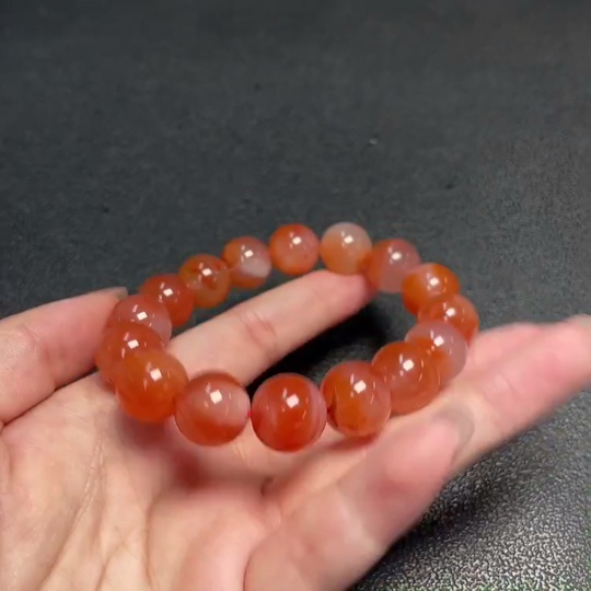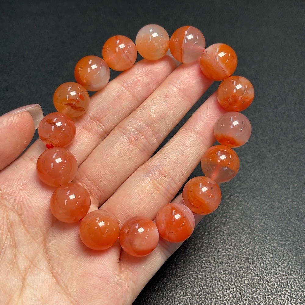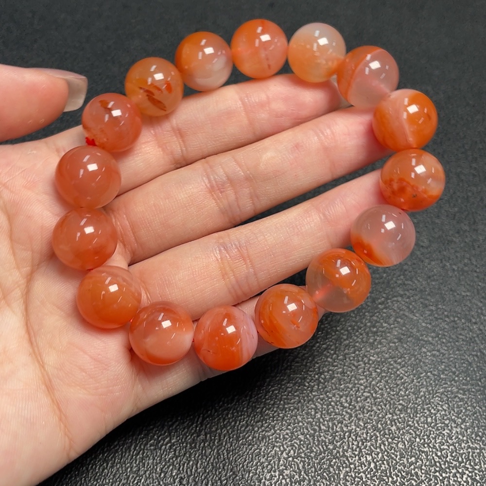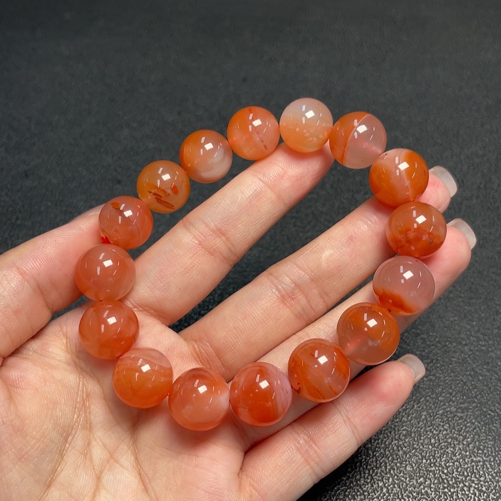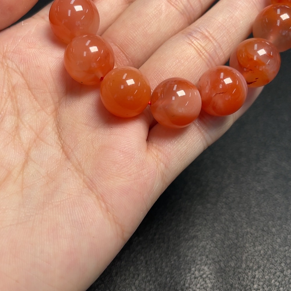 South Red Agate Bracelet with Visible Organic Matter, Total Weight Approximately 54.1g, Approximately 13.2mm in Size