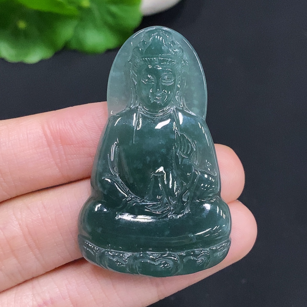 Jadeite Guanyin Pendant Total Weight Approx. 12.6g