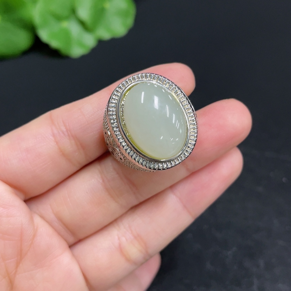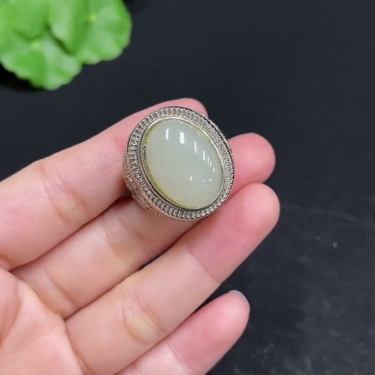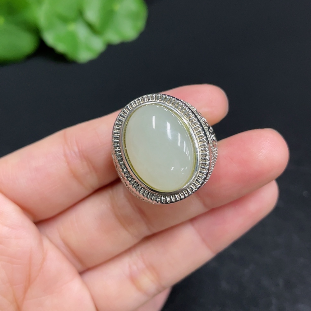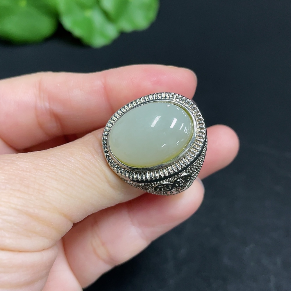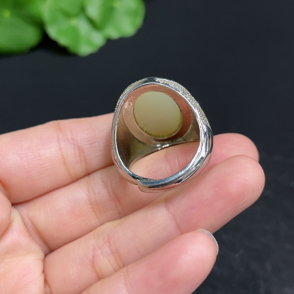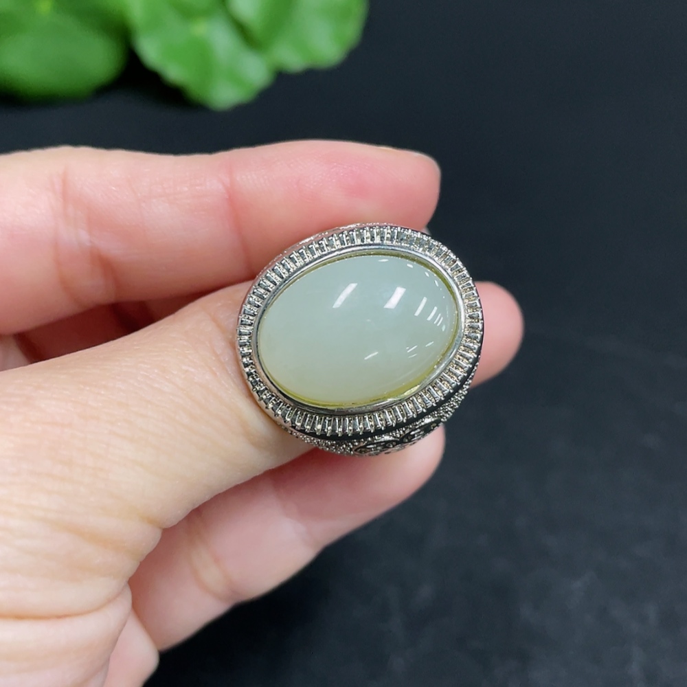 Hetian Jade Inlaid Adjustable Ring (Non-Gold Inlaid) Total Weight Approx. 10.9g
