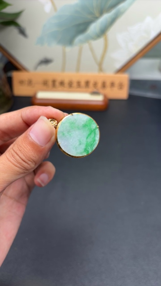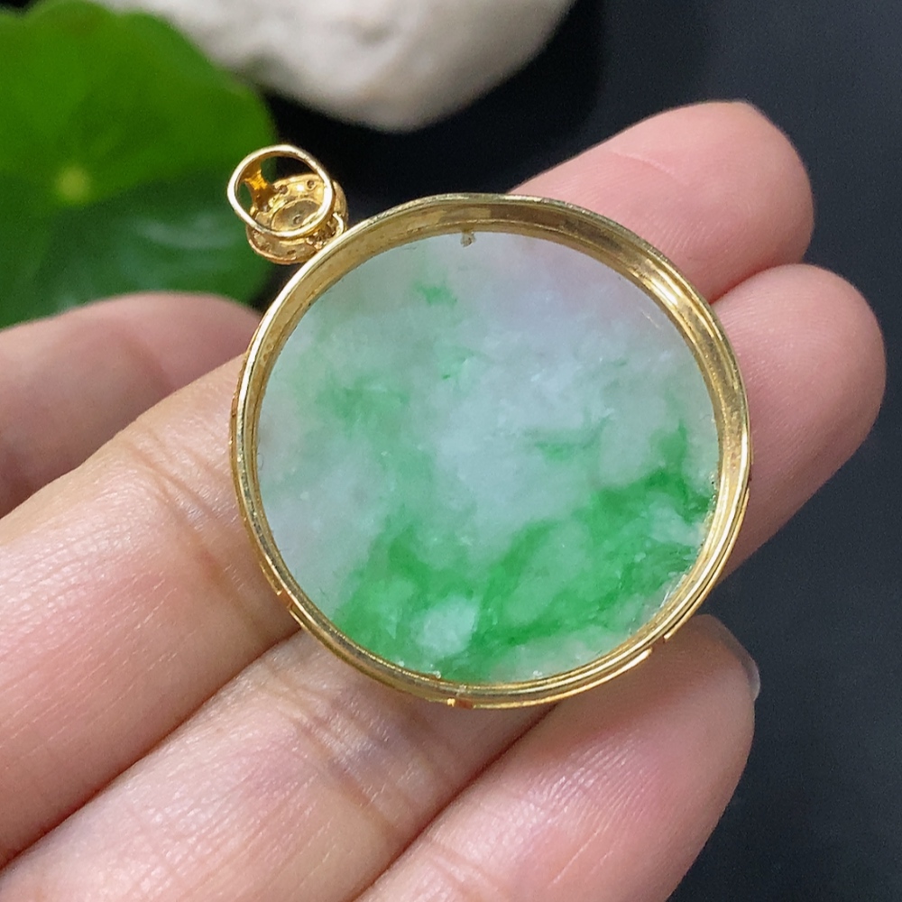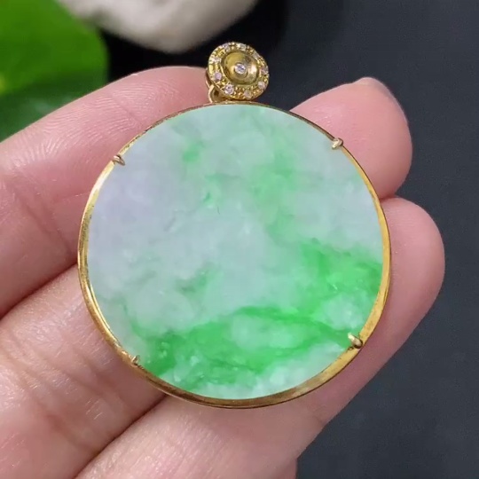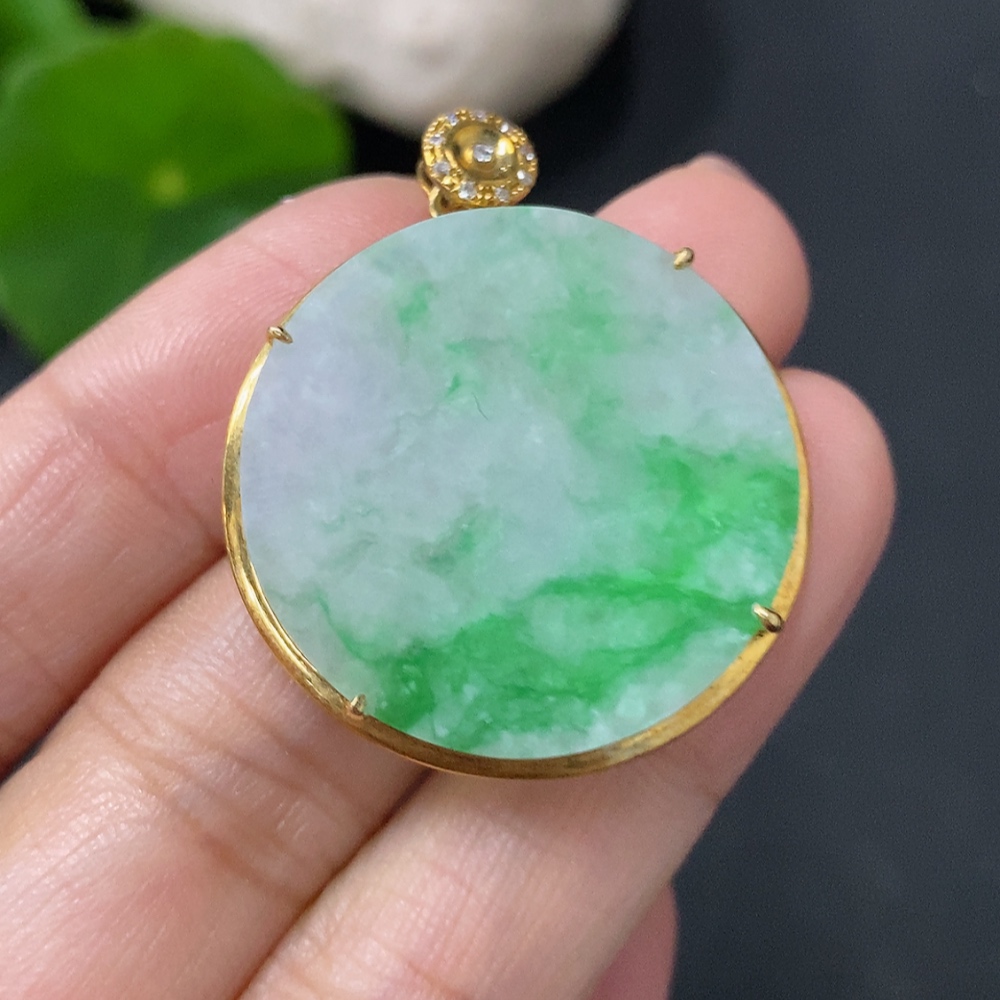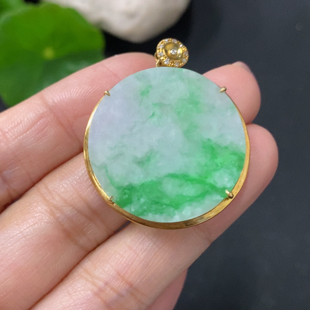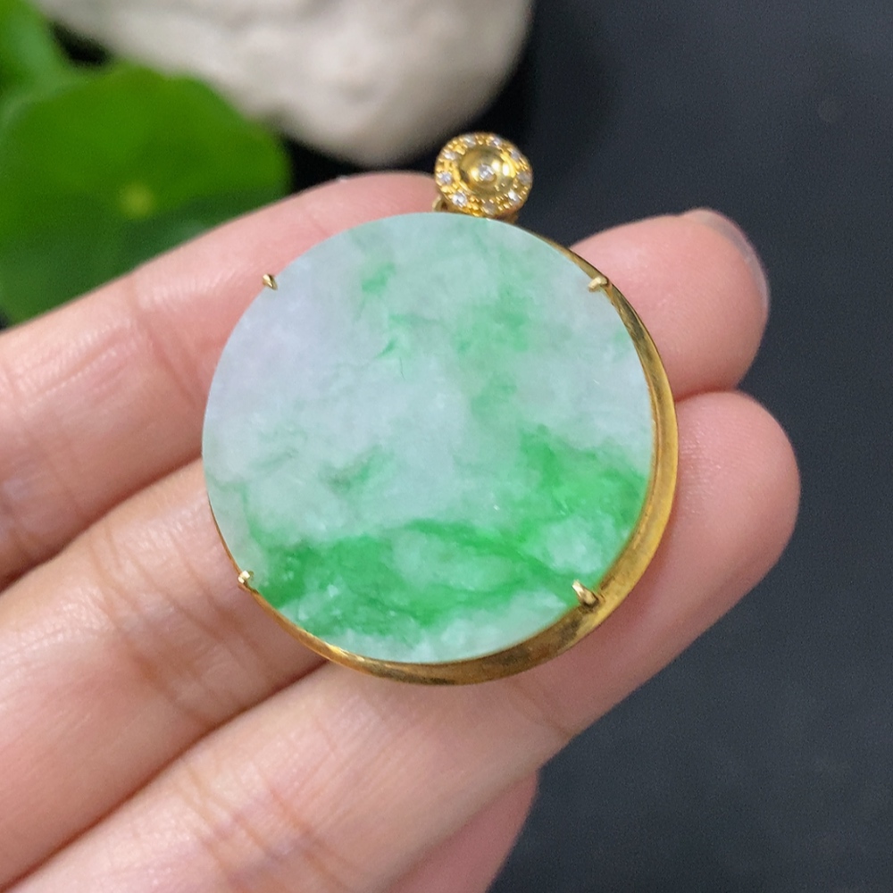 Jadeite Plain Pendant with 18k Gold and Diamond Accents, Total Weight Approx. 4.97g