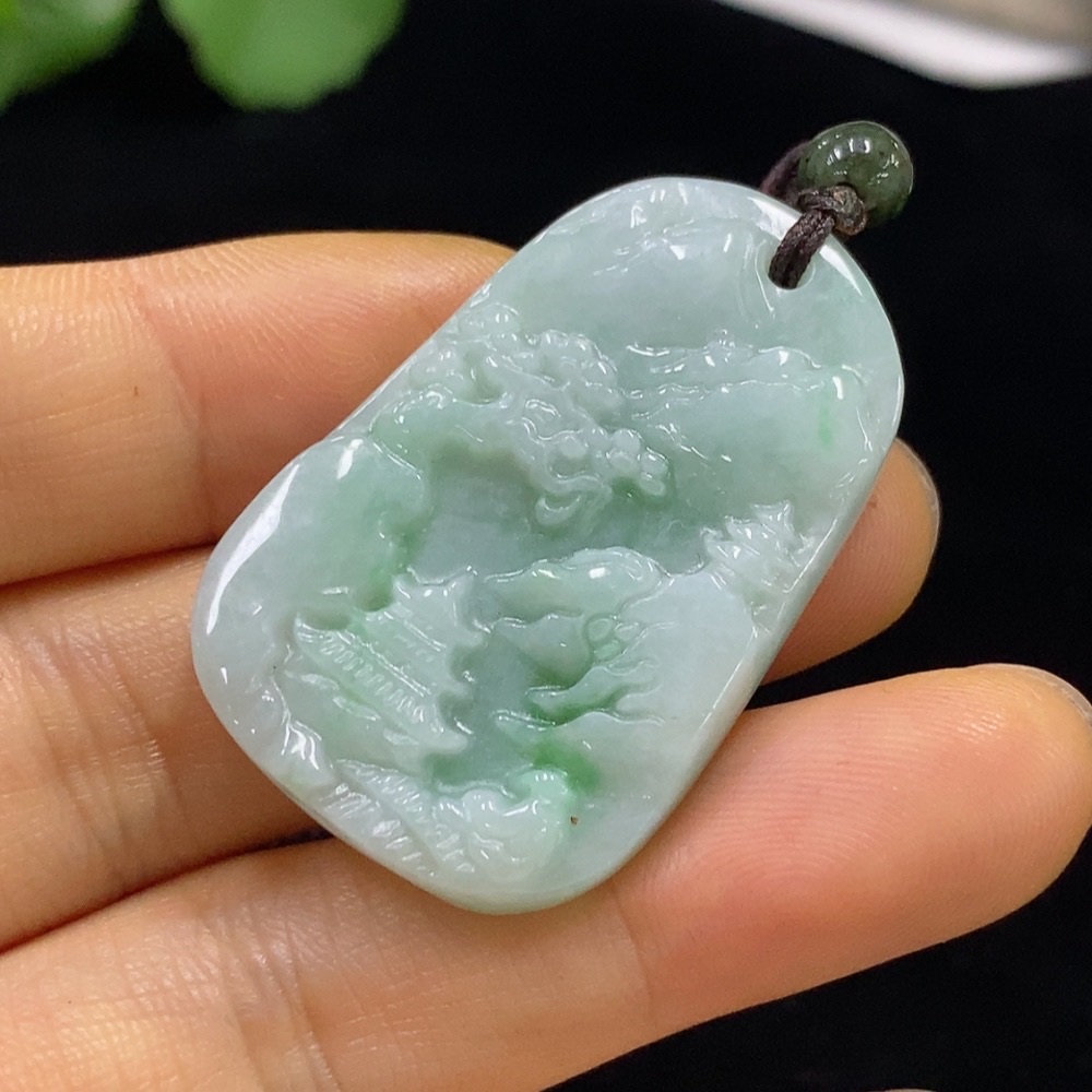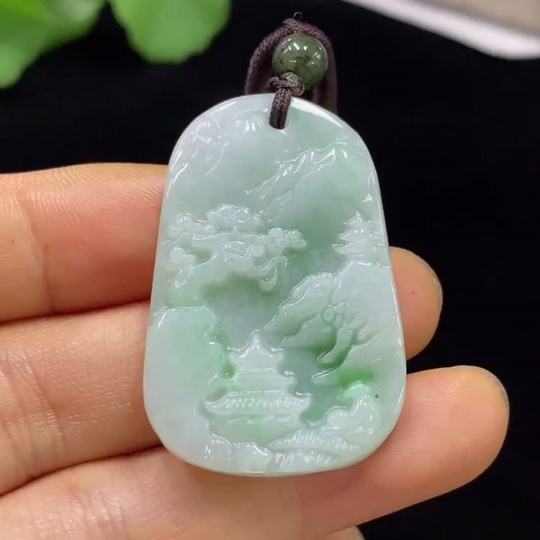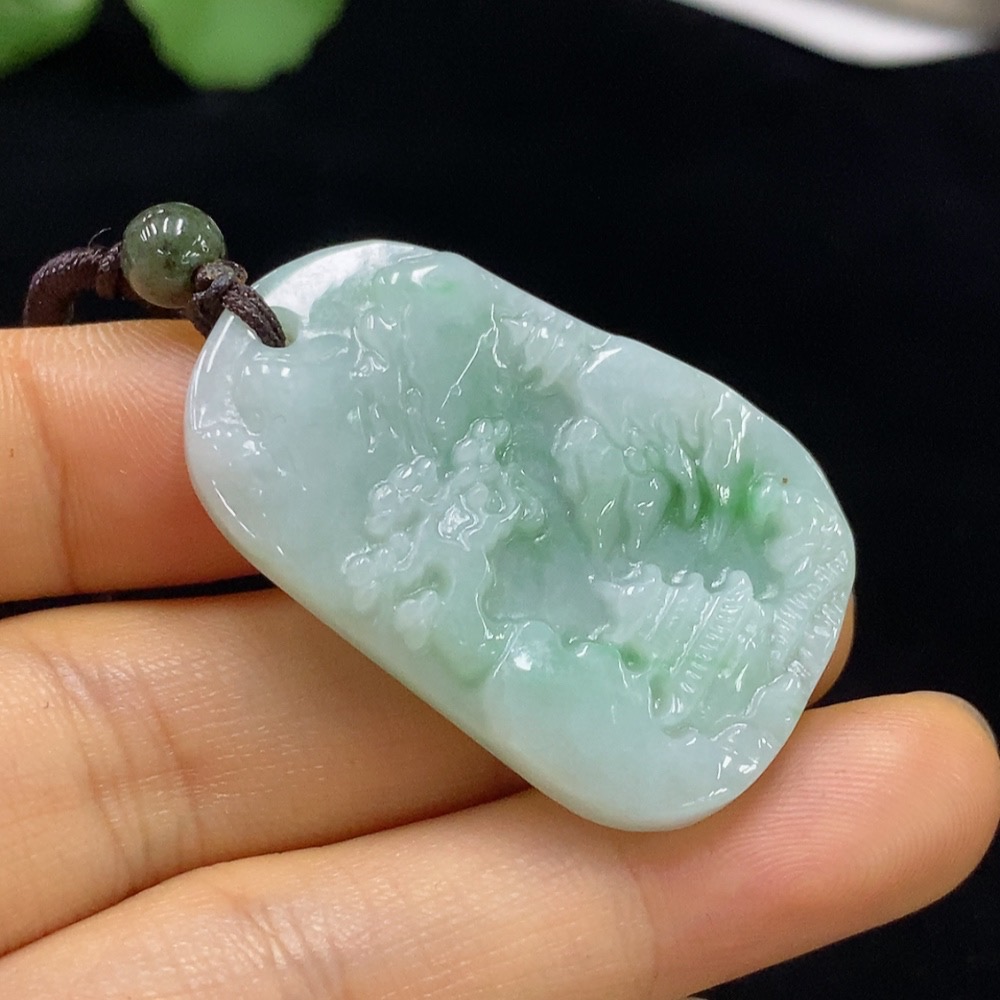 Jadeite Landscape Pendant, Total Weight Approx. 12.82g (including rope weight)