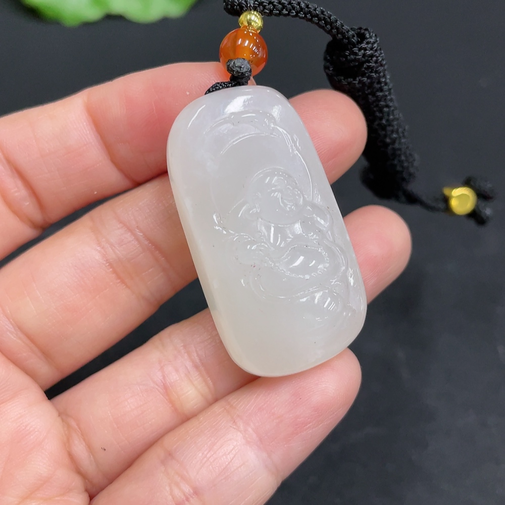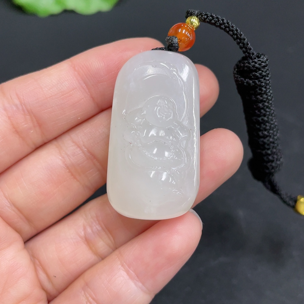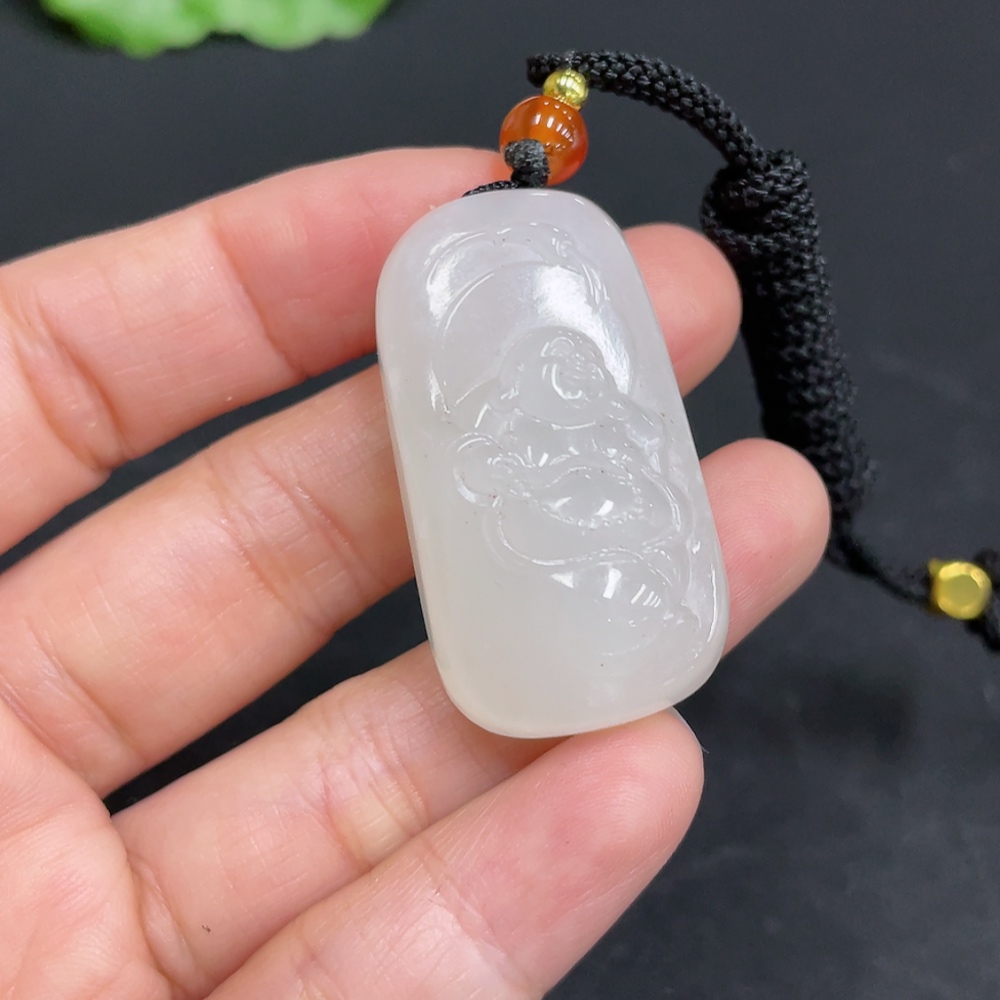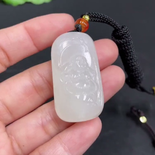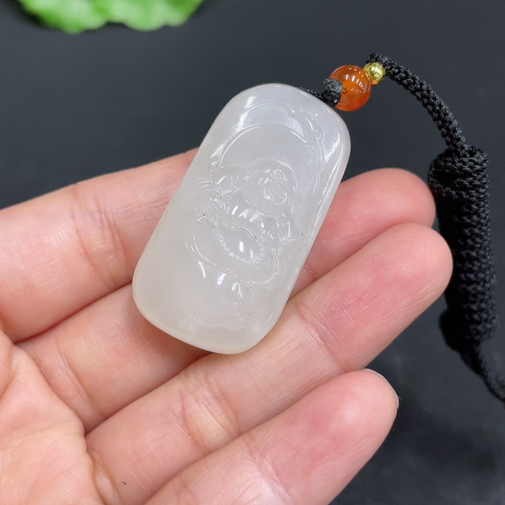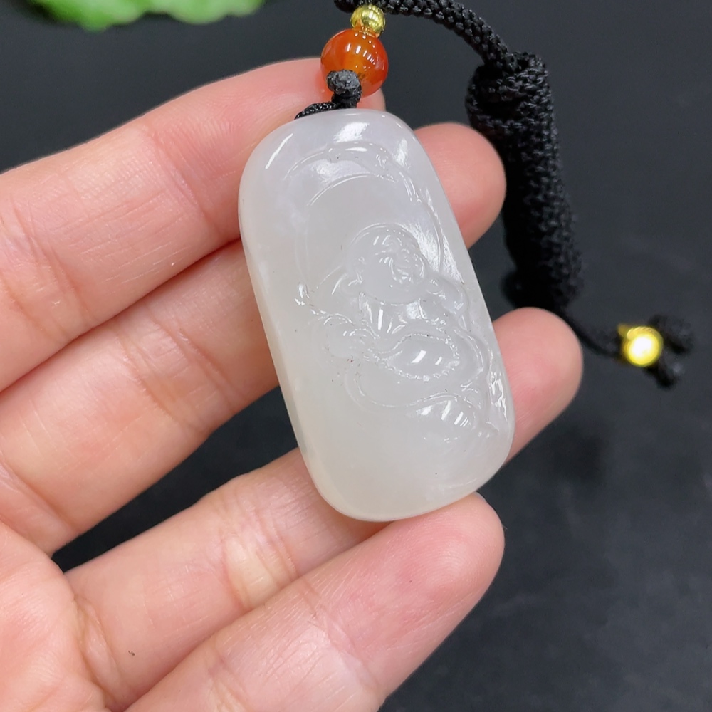 Hetian Jade Pendant Buddha, Total Weight (including rope): 18.5g