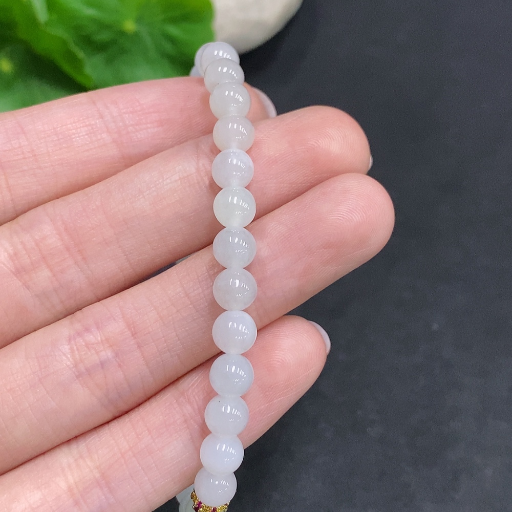 Jadeite Beaded Necklace Approx. 5.5mm Non-Gold Total Weight Approx. 10.9g