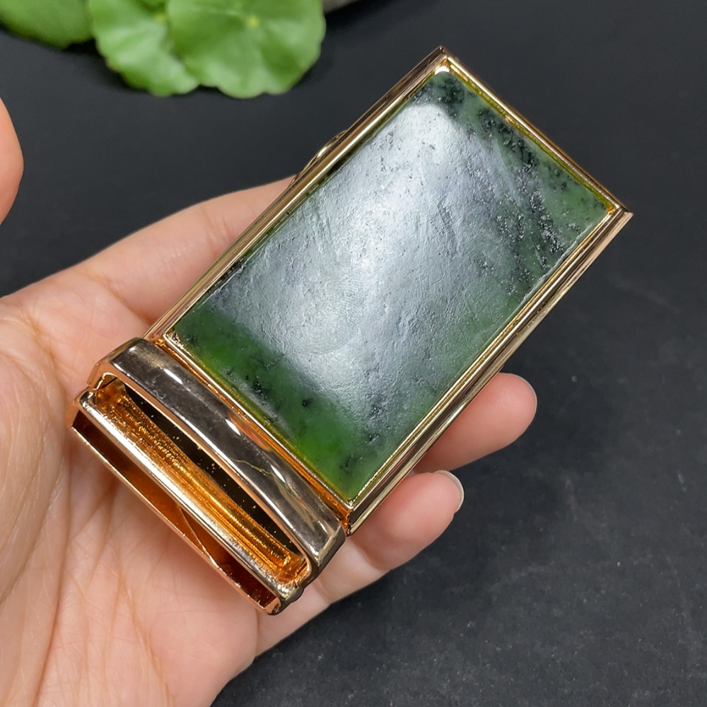 Hetian Jade Belt Buckle Non-Gold Inlaid Total Weight Approx. 110.9g
