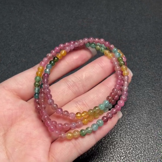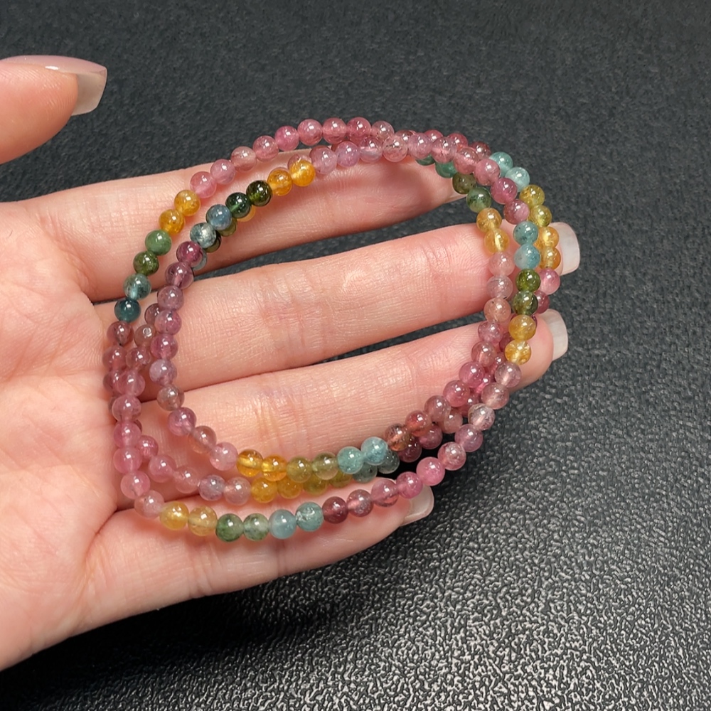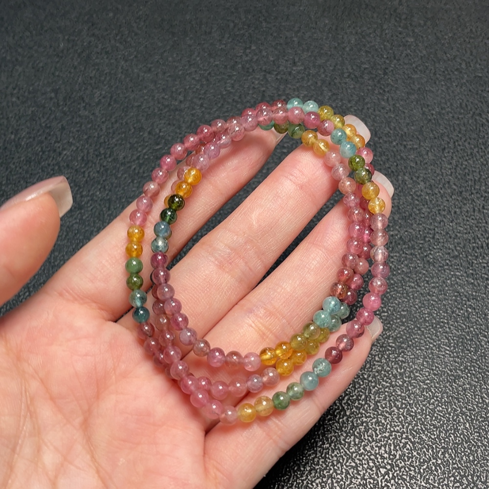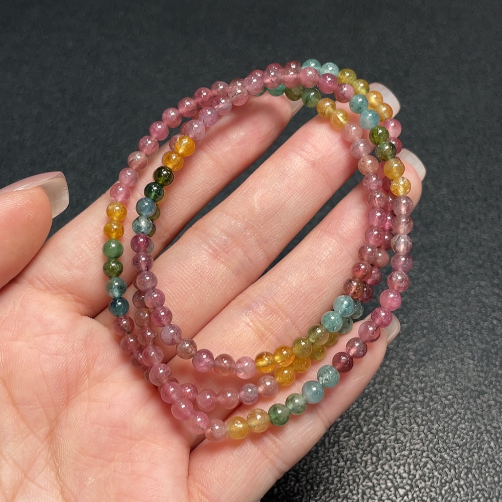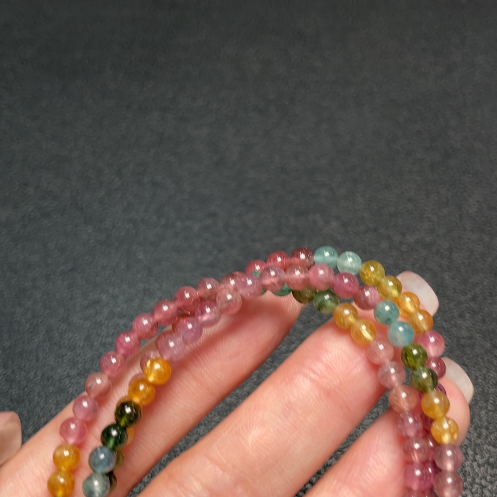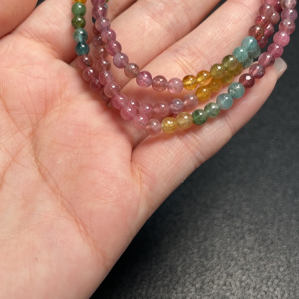 Tourmaline Bead Necklace with Visible Organic Inclusions, Total Weight Approx. 14.11g, Bead Size 4.1mm