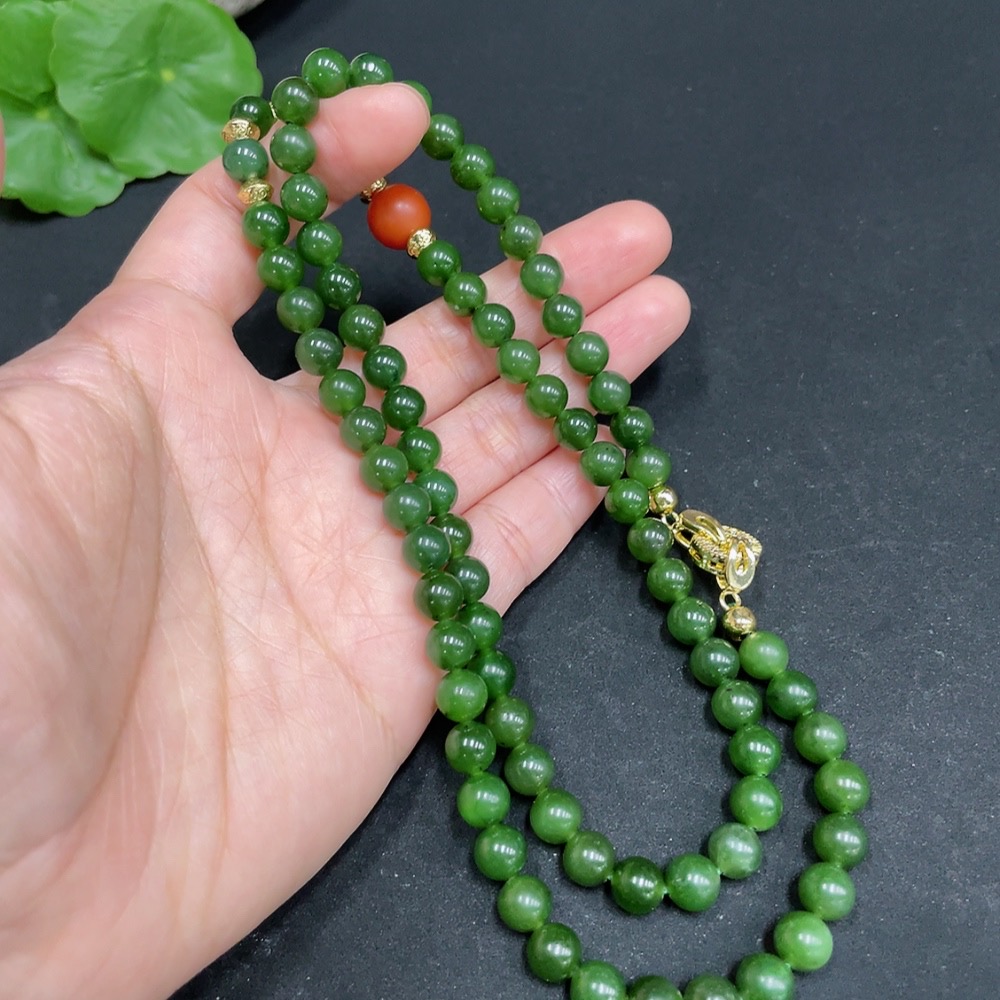 Hetian Jade Bead Necklace, Non-Gold, Matching Beads Not Hetian Jade, Approx. 6.5mm, Total Weight Approx. 44.4g