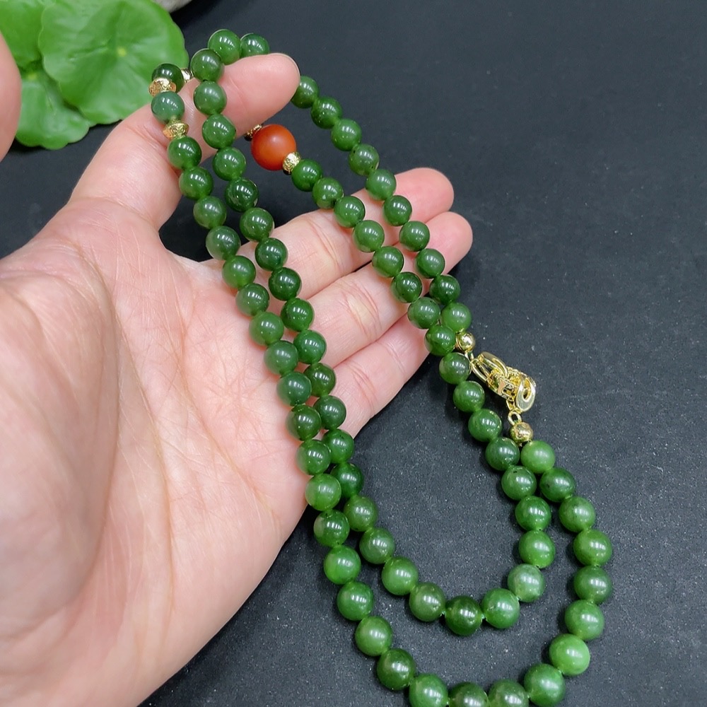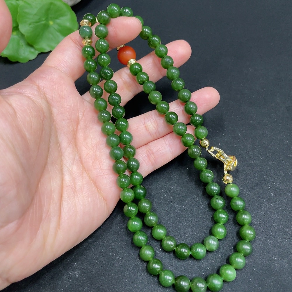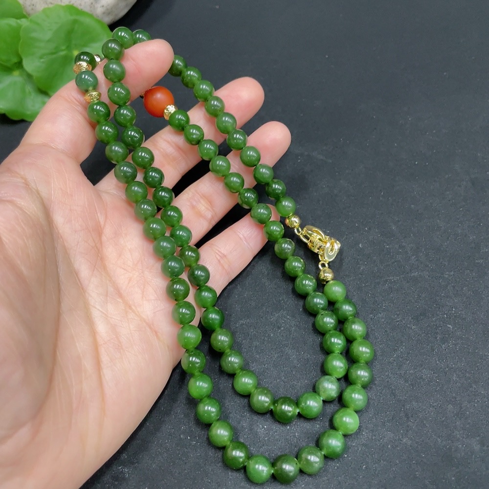 Hetian Jade Bead Necklace, Non-Gold, Matching Beads Not Hetian Jade, Approx. 6.5mm, Total Weight Approx. 44.4g