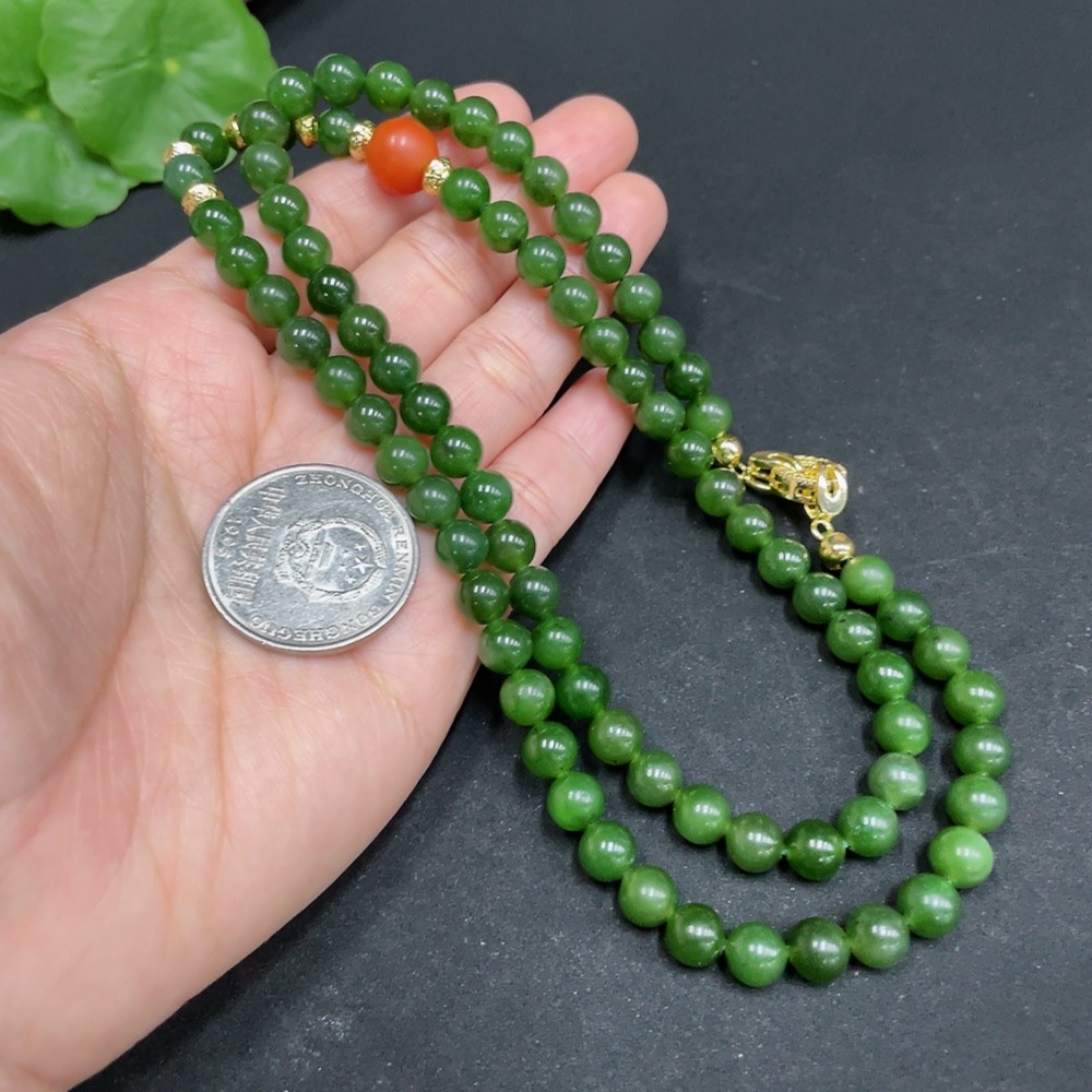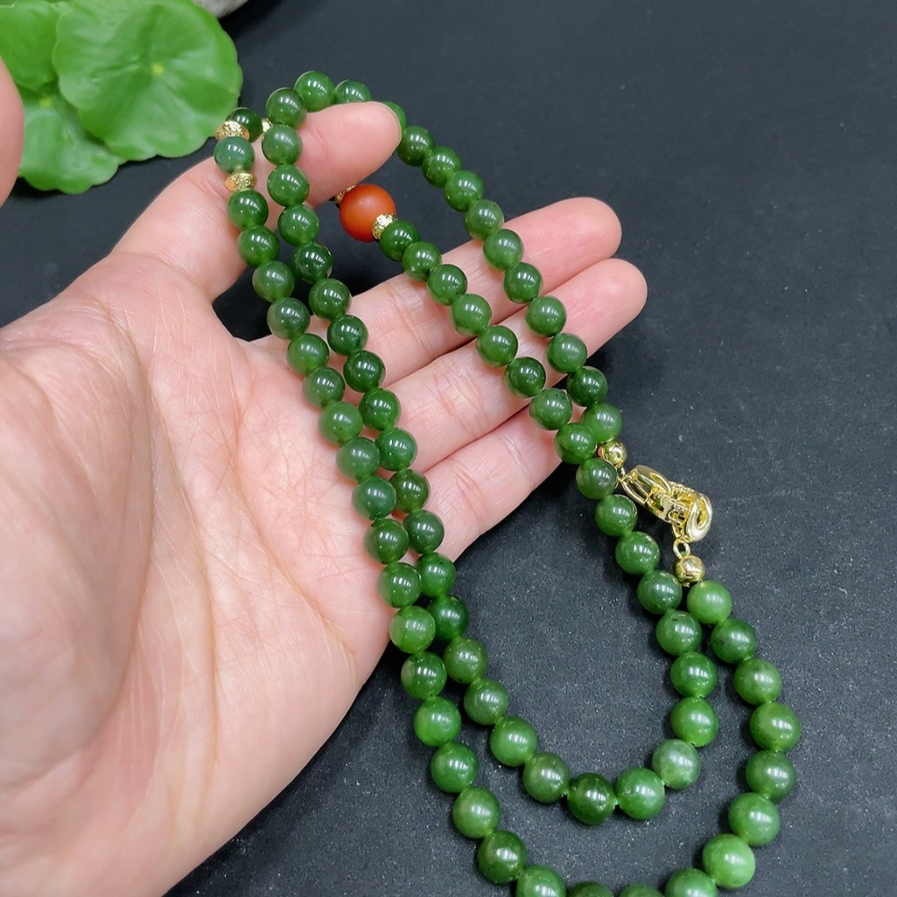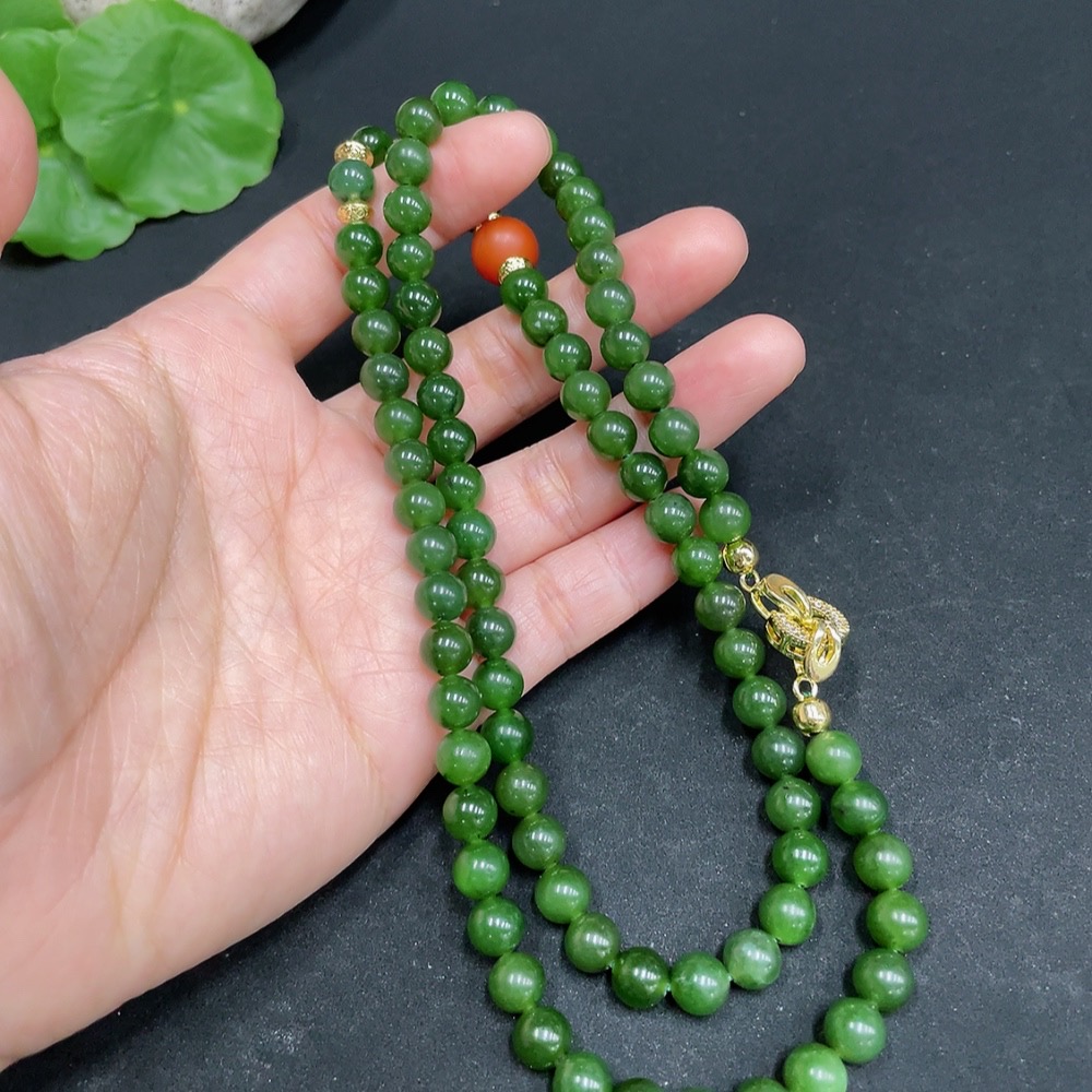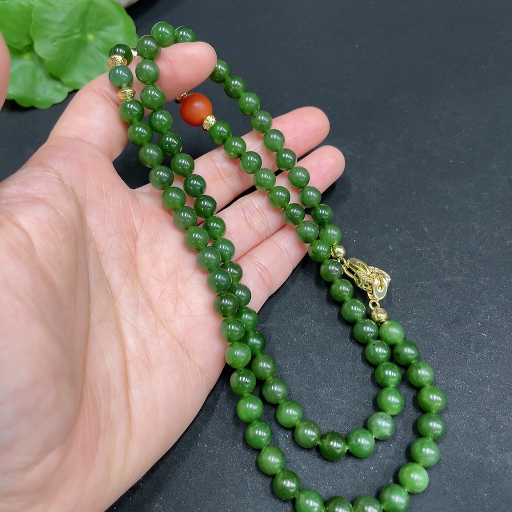 Hetian Jade Bead Necklace, Non-Gold, Matching Beads Not Hetian Jade, Approx. 6.5mm, Total Weight Approx. 44.4g