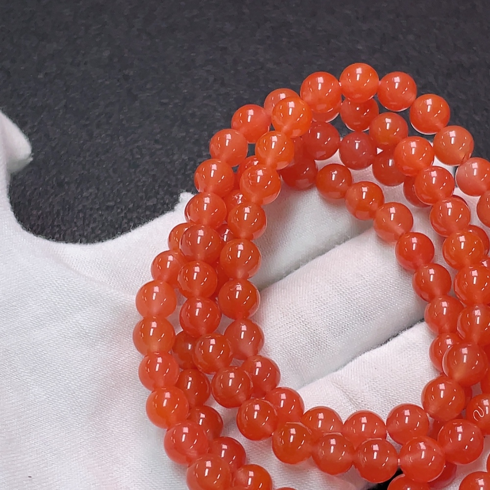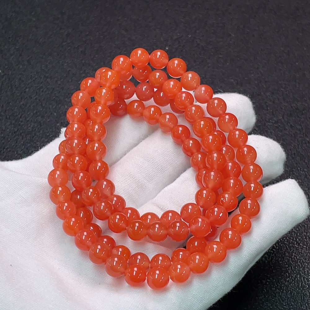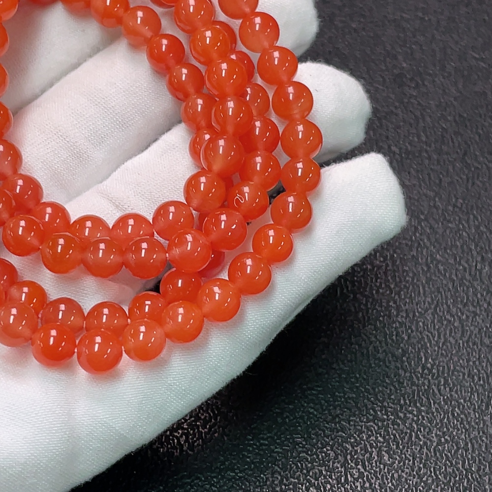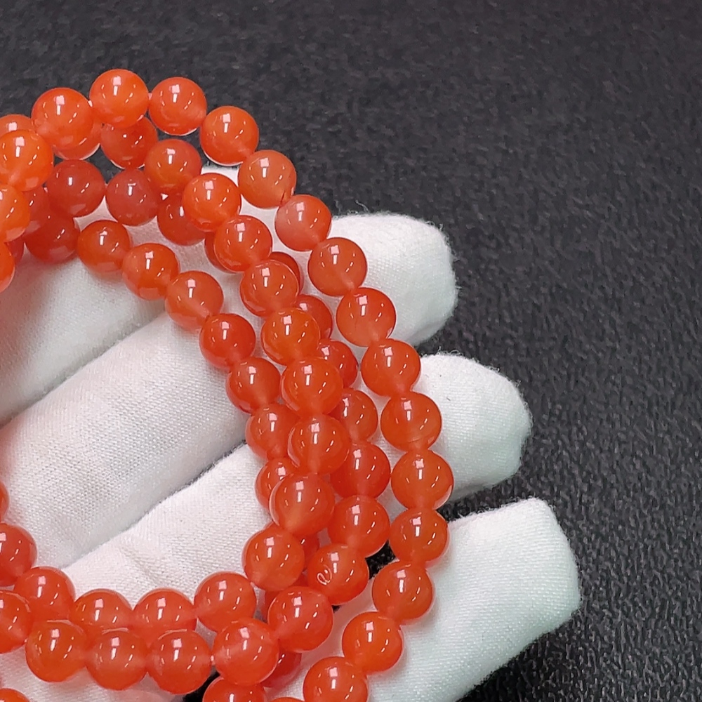 South Red Agate Bead Strand with Visible Organic Matter, Total Weight Approximately 44.22g, Bead Size About 6.7mm