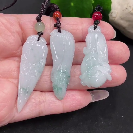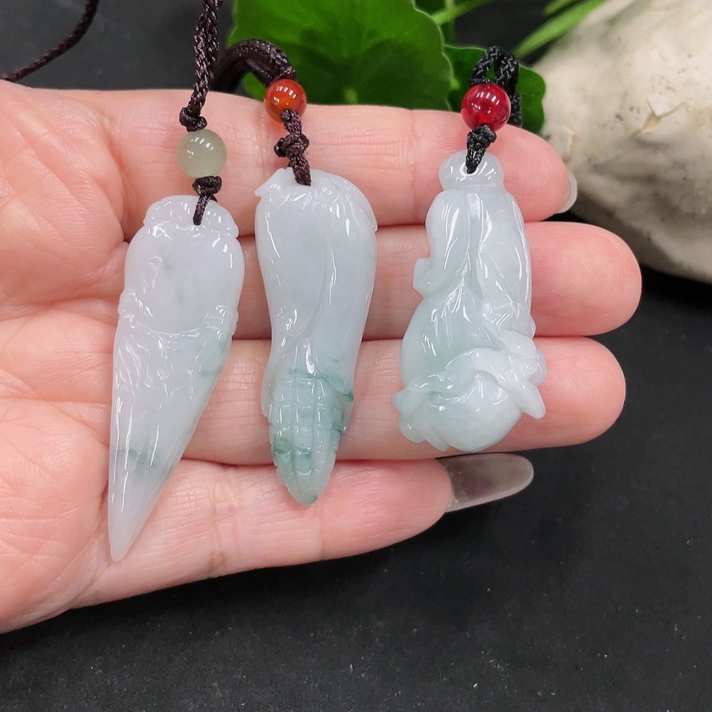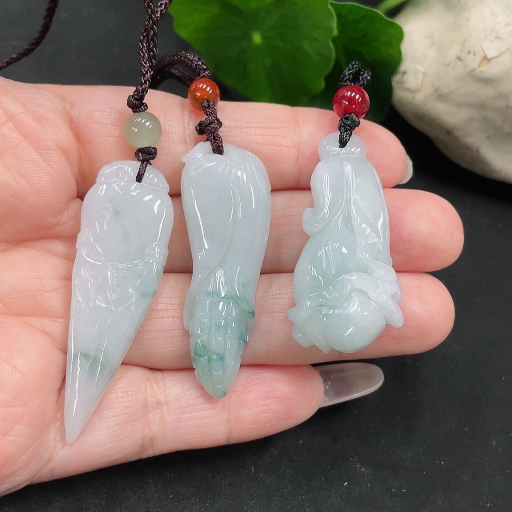 Jadeite Magnolia/Corn Pendant with Non-Grade A Beads