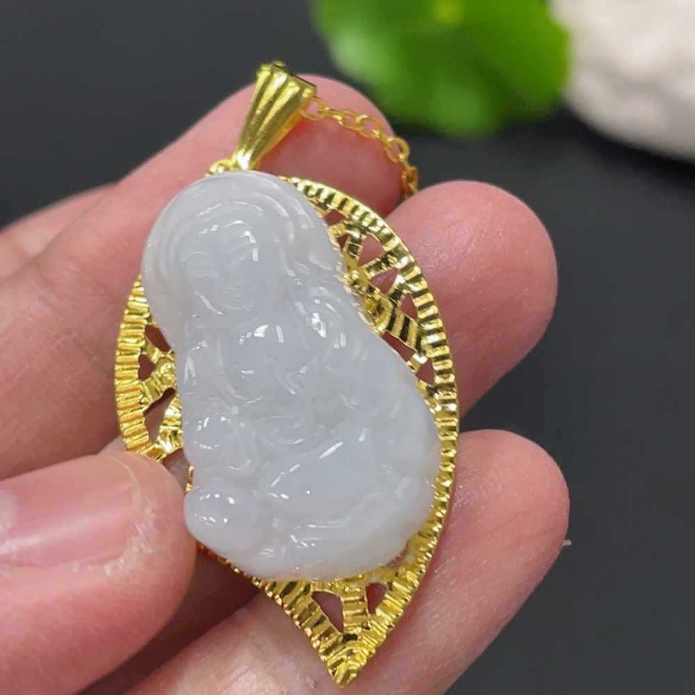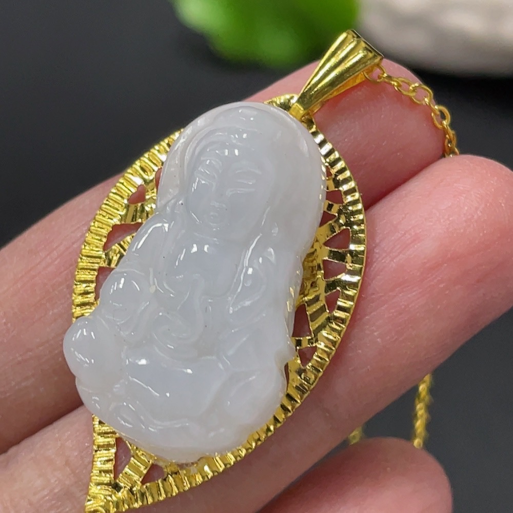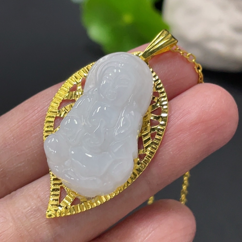 Jadeite Guanyin Inlaid Pendant Non-Gold Inlaid Total Weight Approx. 8.87g