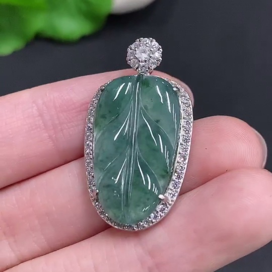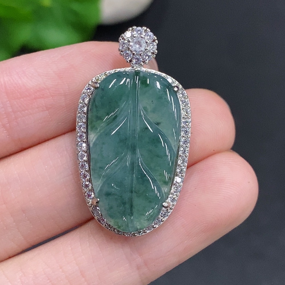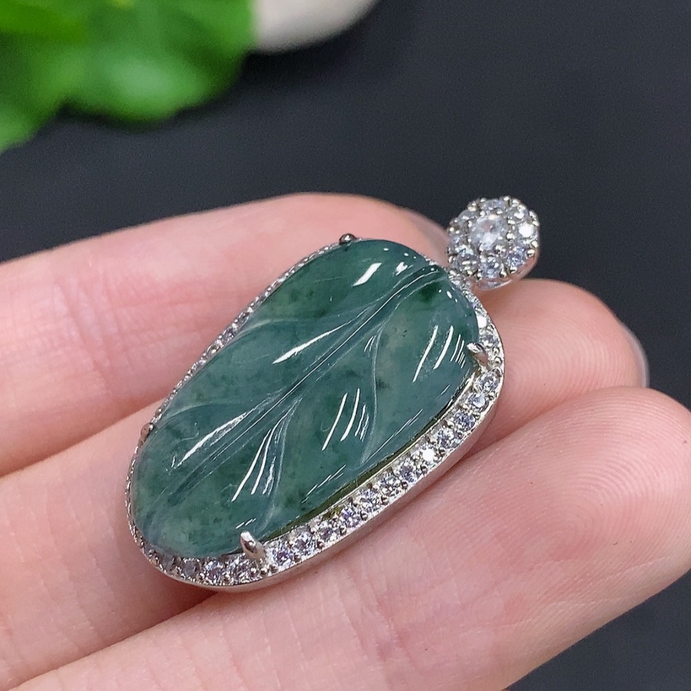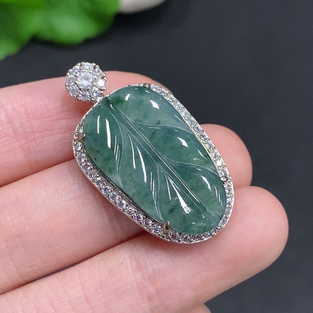 Jadeite Leaf Pendant Non-Gold Inlaid Total Weight Approx. 5.1g