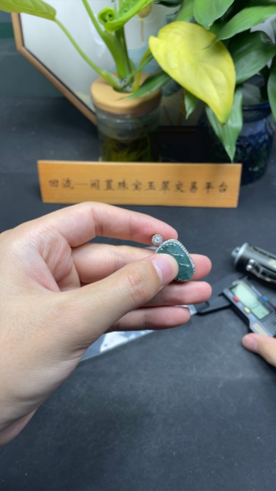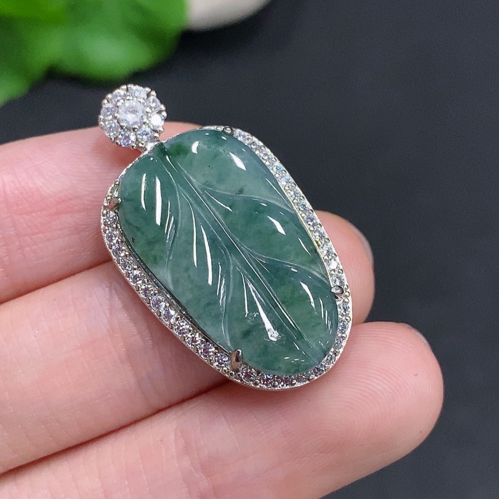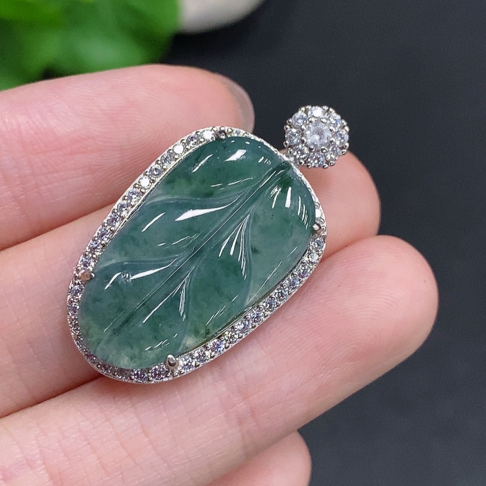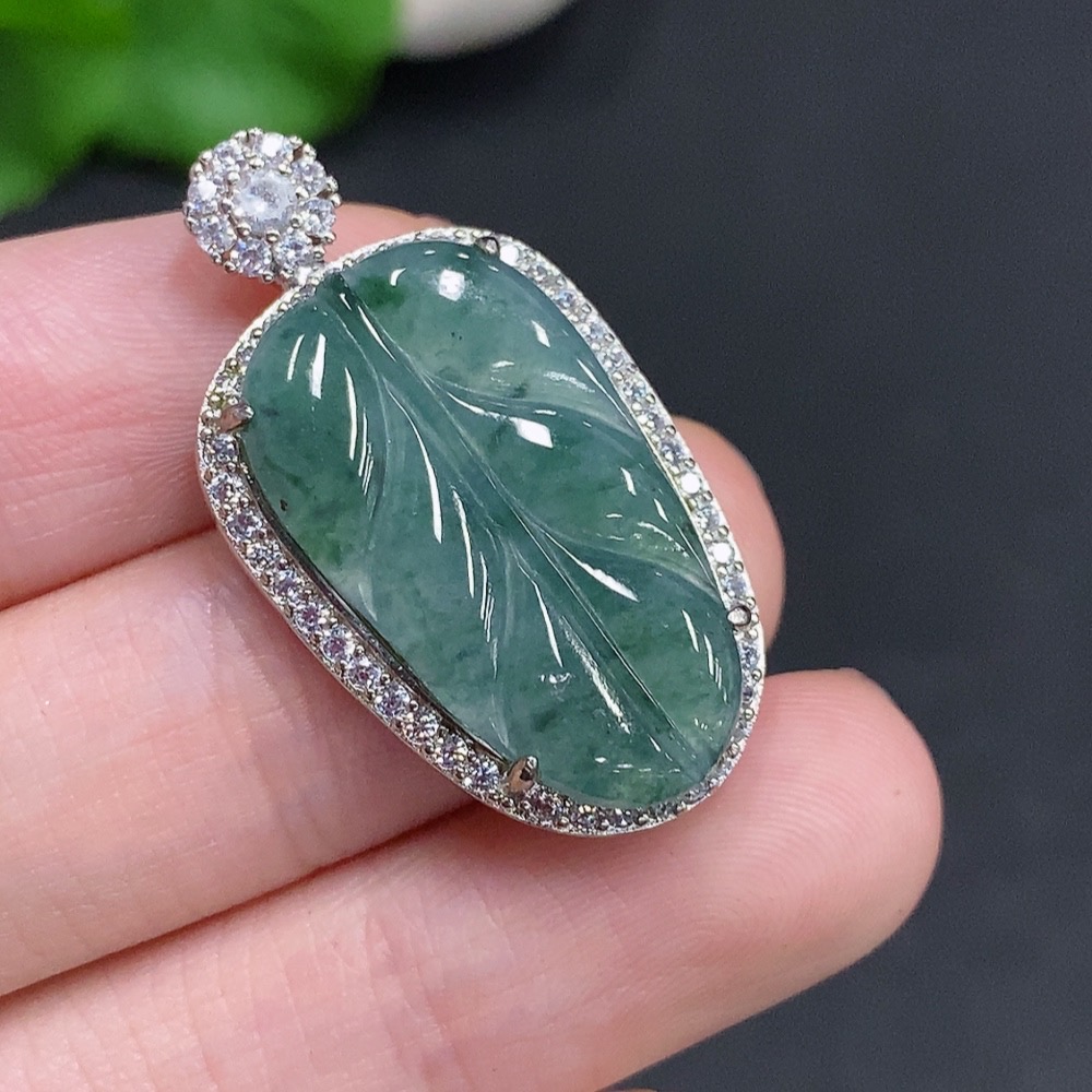 Jadeite Leaf Pendant Non-Gold Inlaid Total Weight Approx. 5.1g