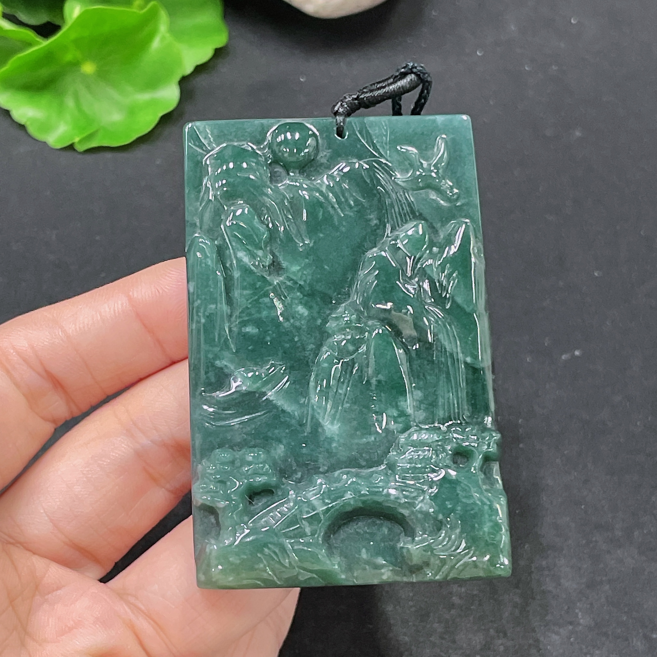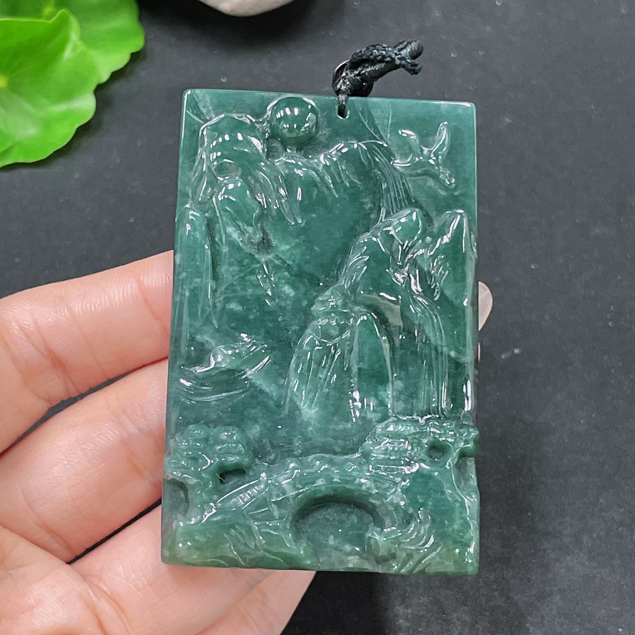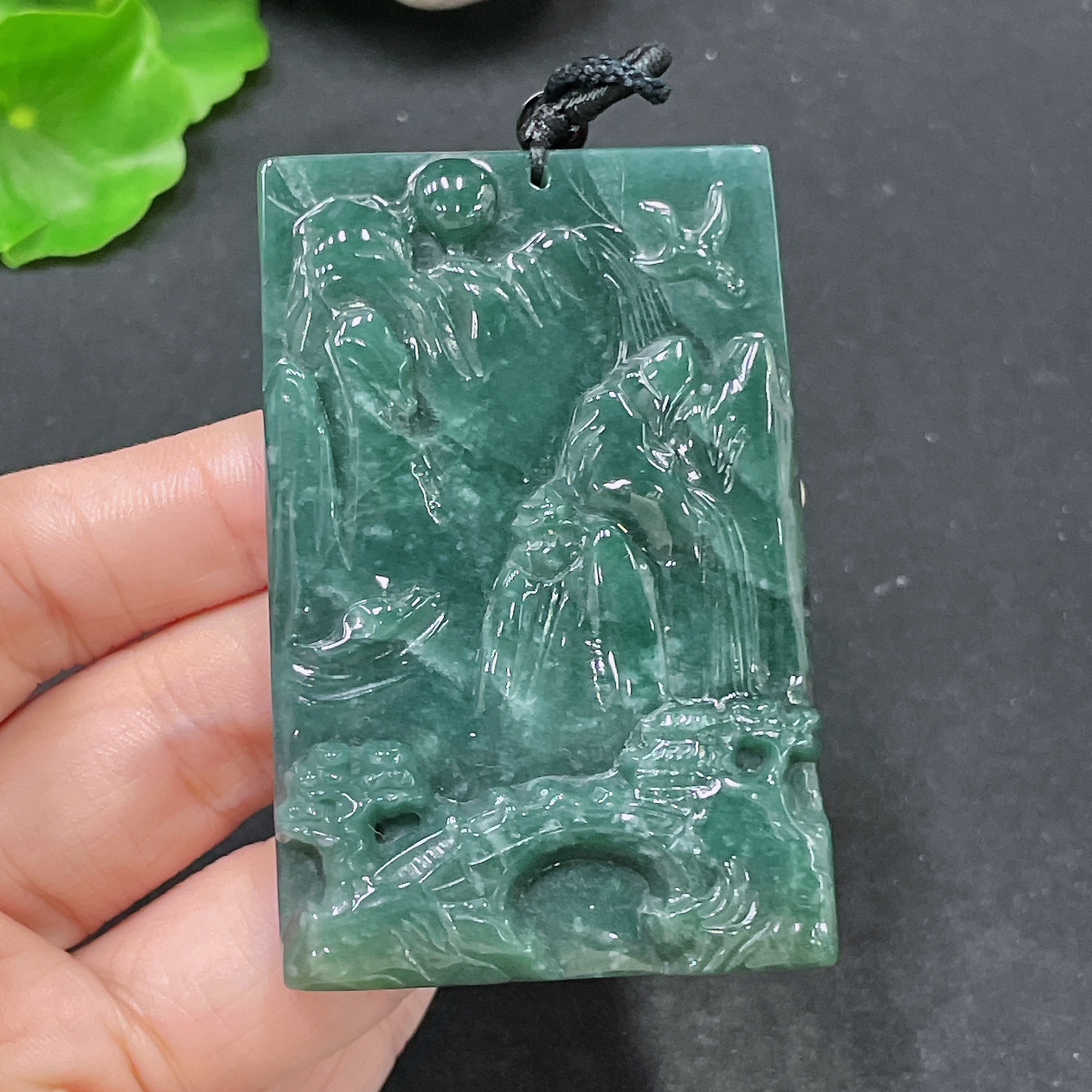 Jadeite Pendant Landscape with Rope Total Weight Approx. 61.86g