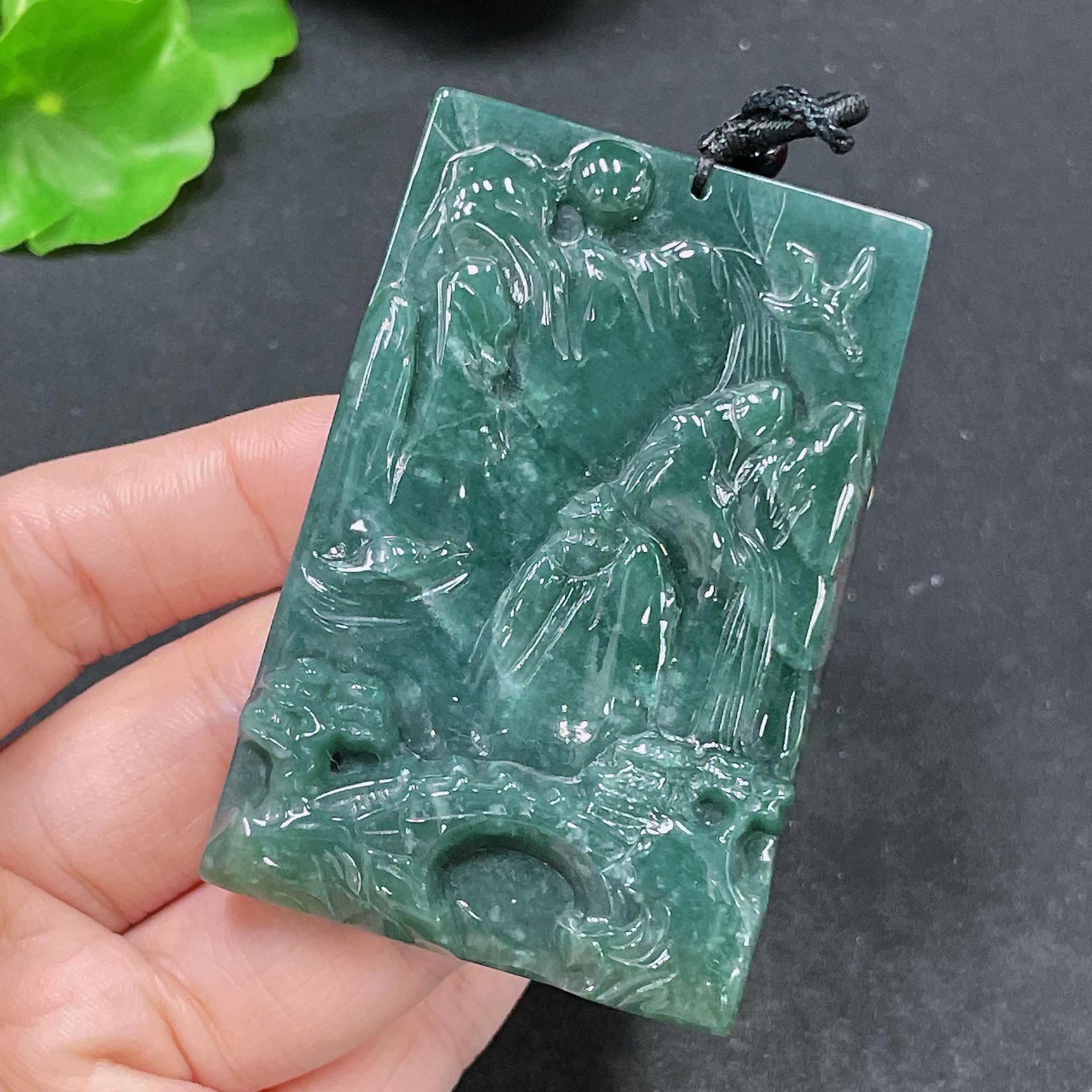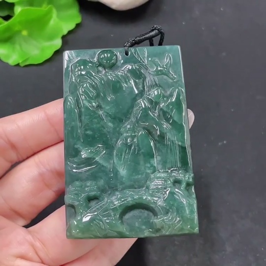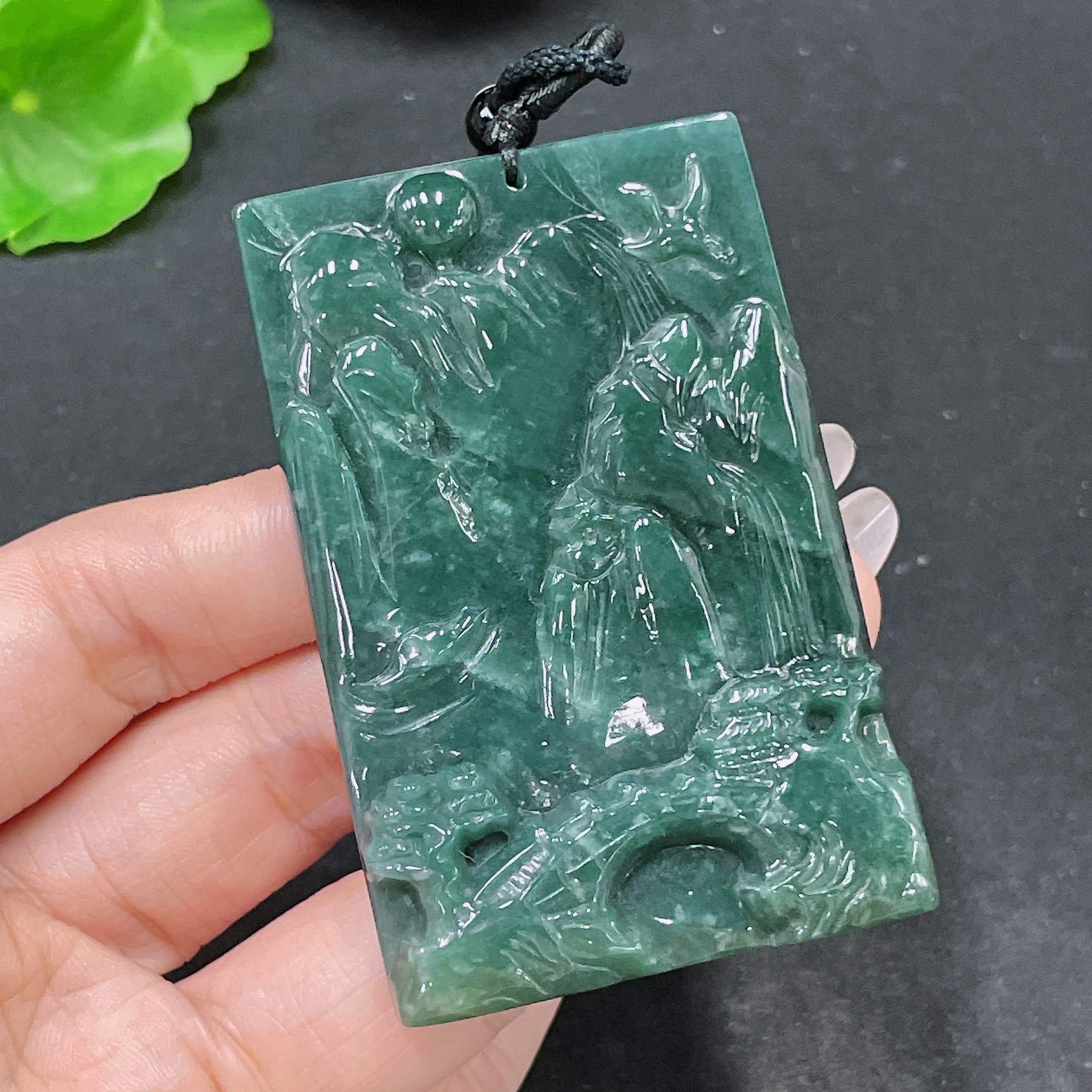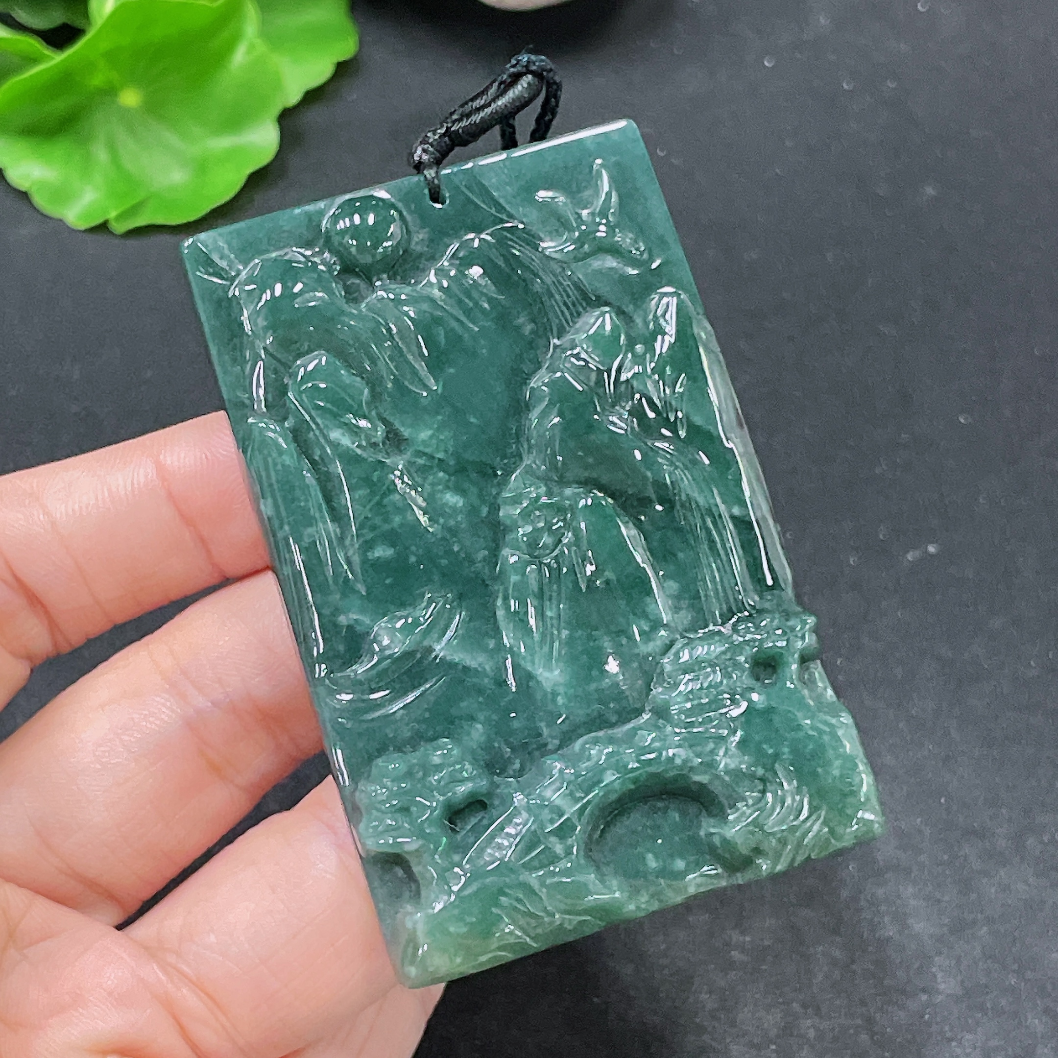 Jadeite Pendant Landscape with Rope Total Weight Approx. 61.86g