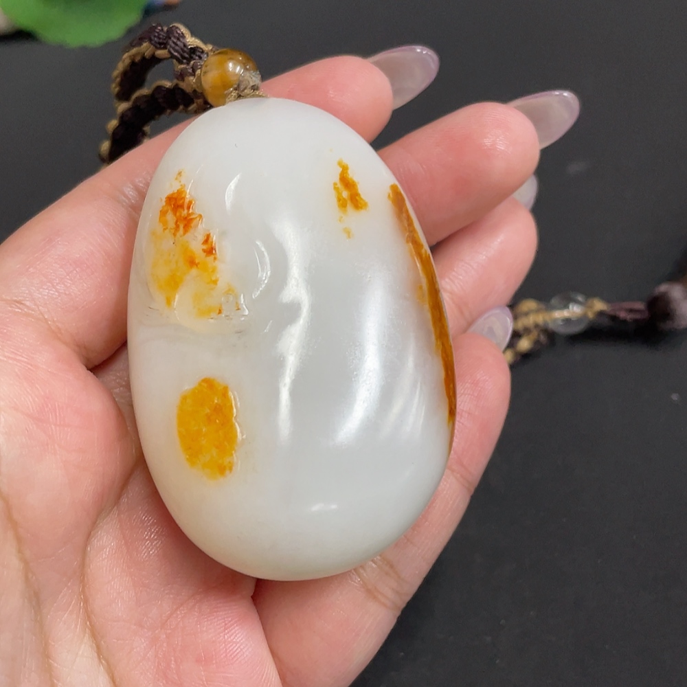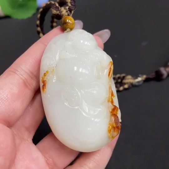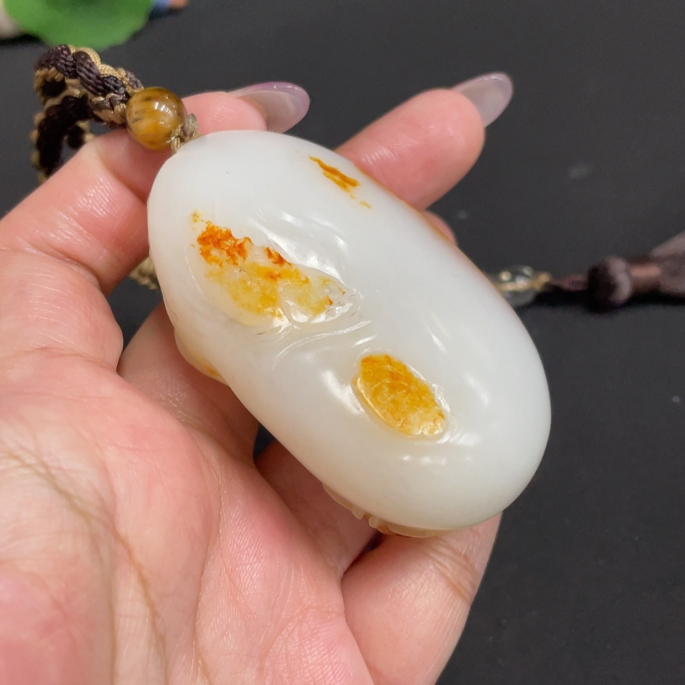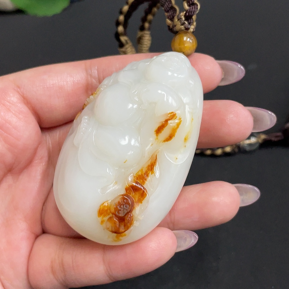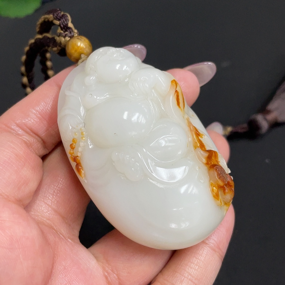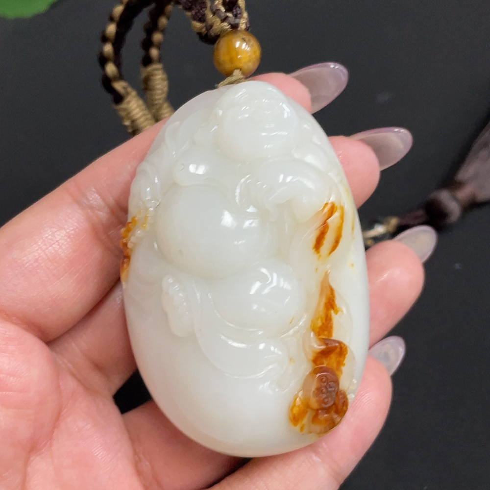 Hetian Jade Pendant, Buddha, Total Weight (including rope): 115.8g, Undetermined skin color origin