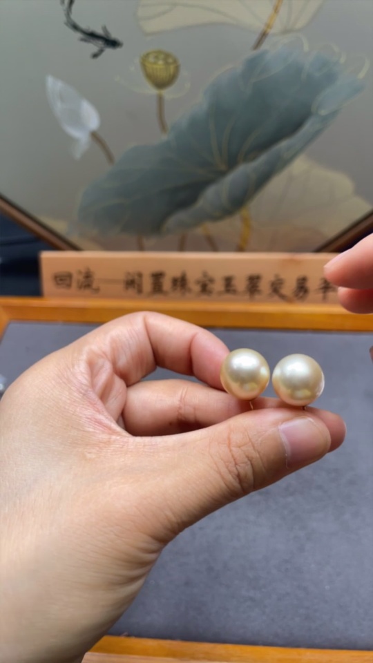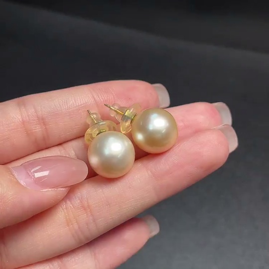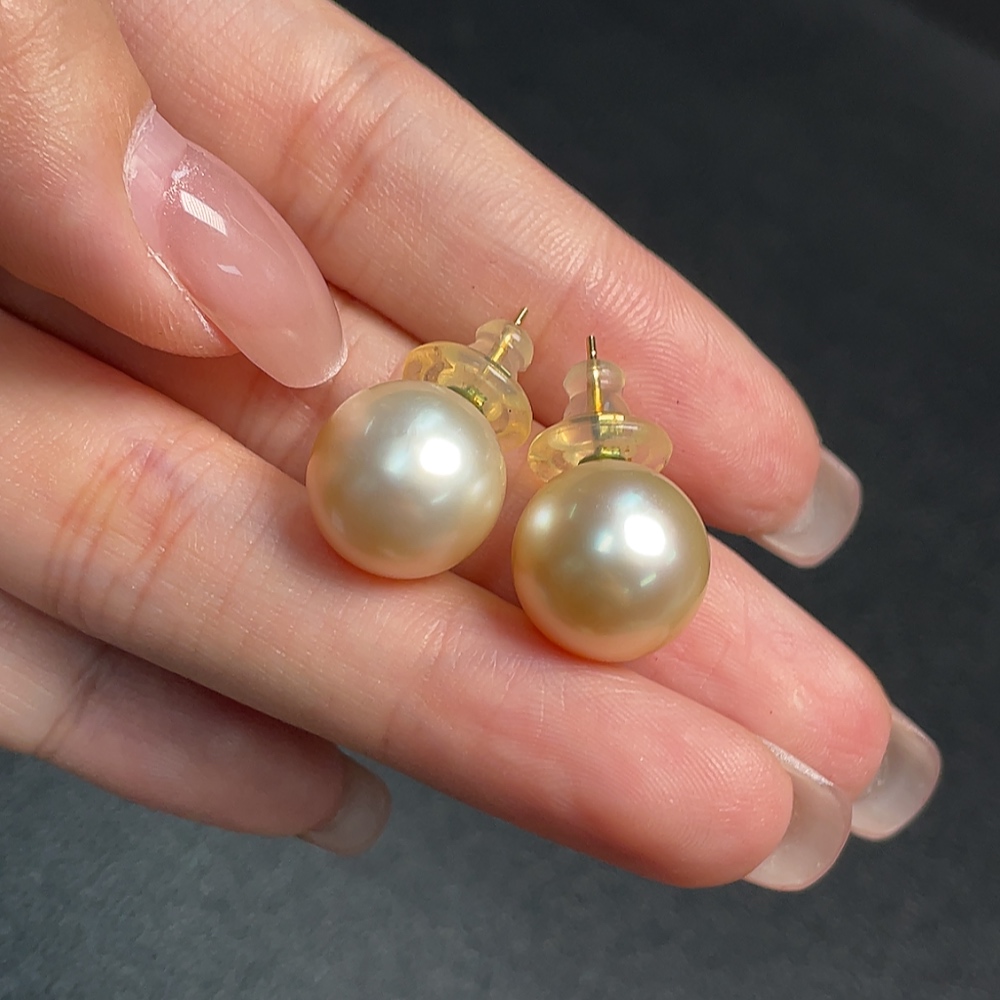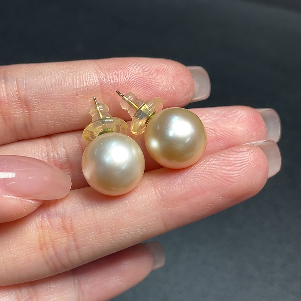 Seawater pearl earrings, color origin undetermined, 18K gold, total weight approximately 6.47g, size about 12.8mm