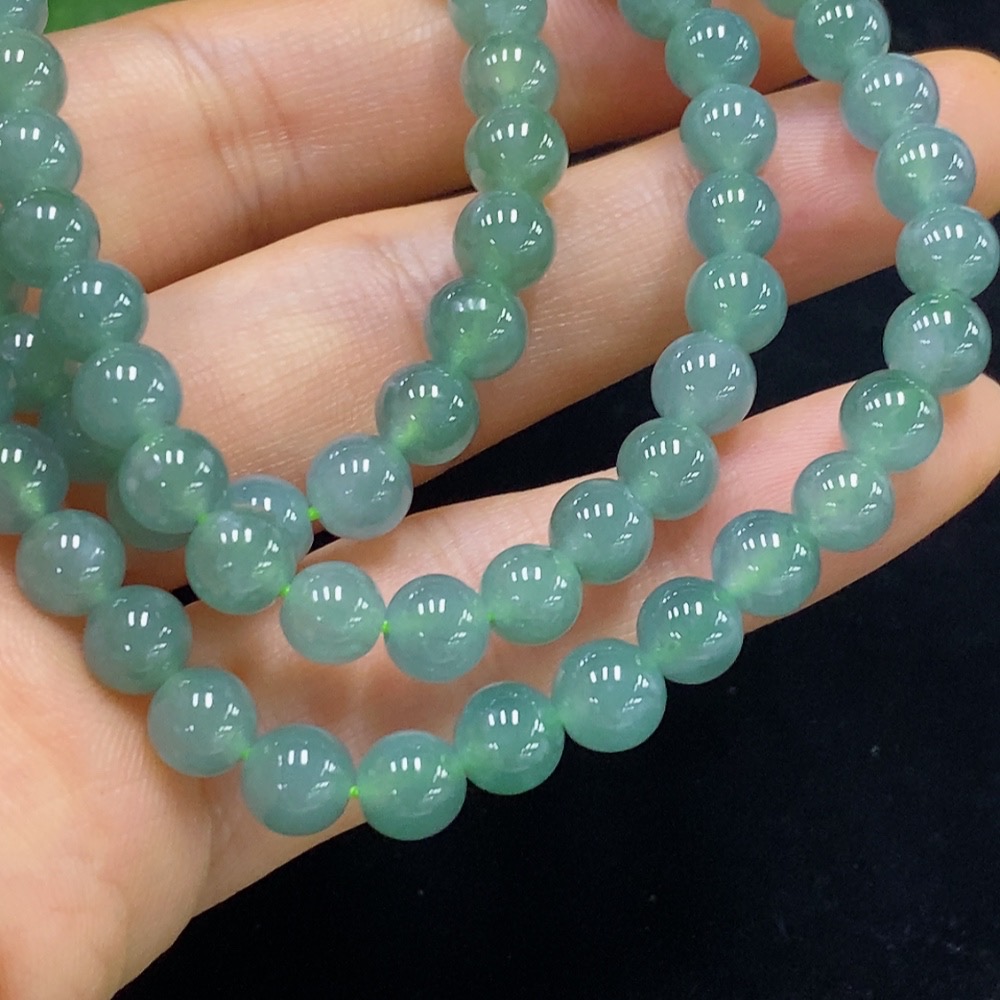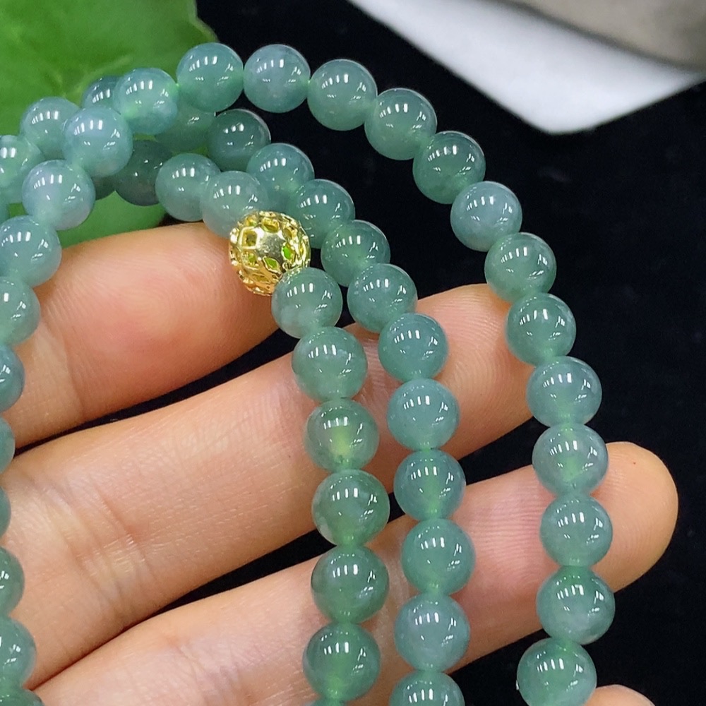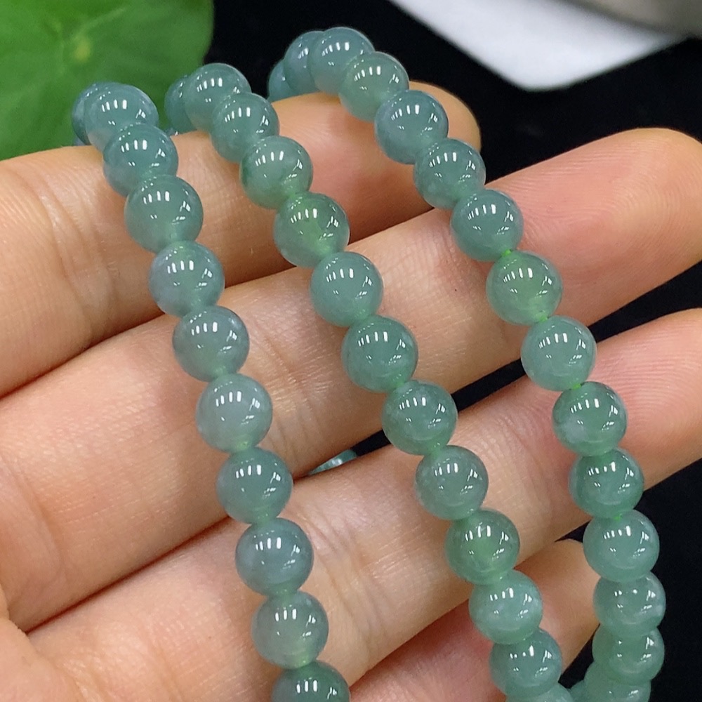 Jadeite Bead Necklace Approx. 6.3mm Non-Gold Total Weight Approx. 41.36g