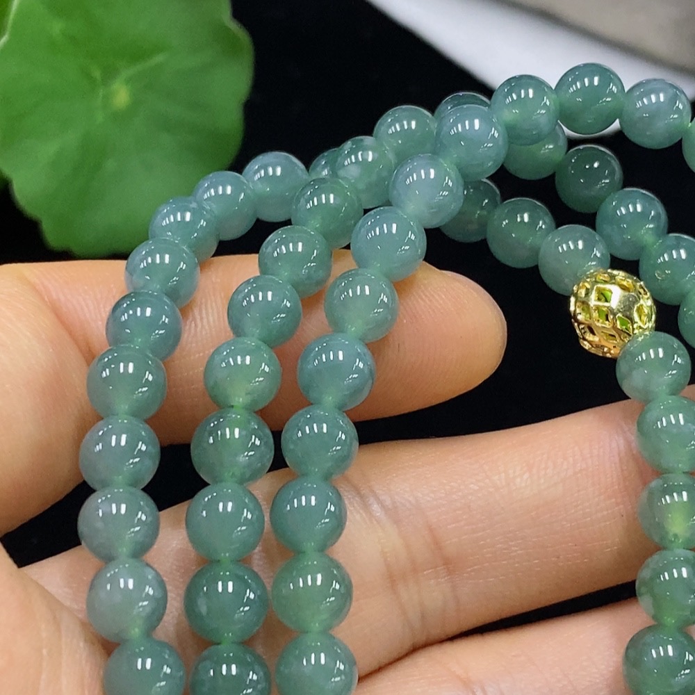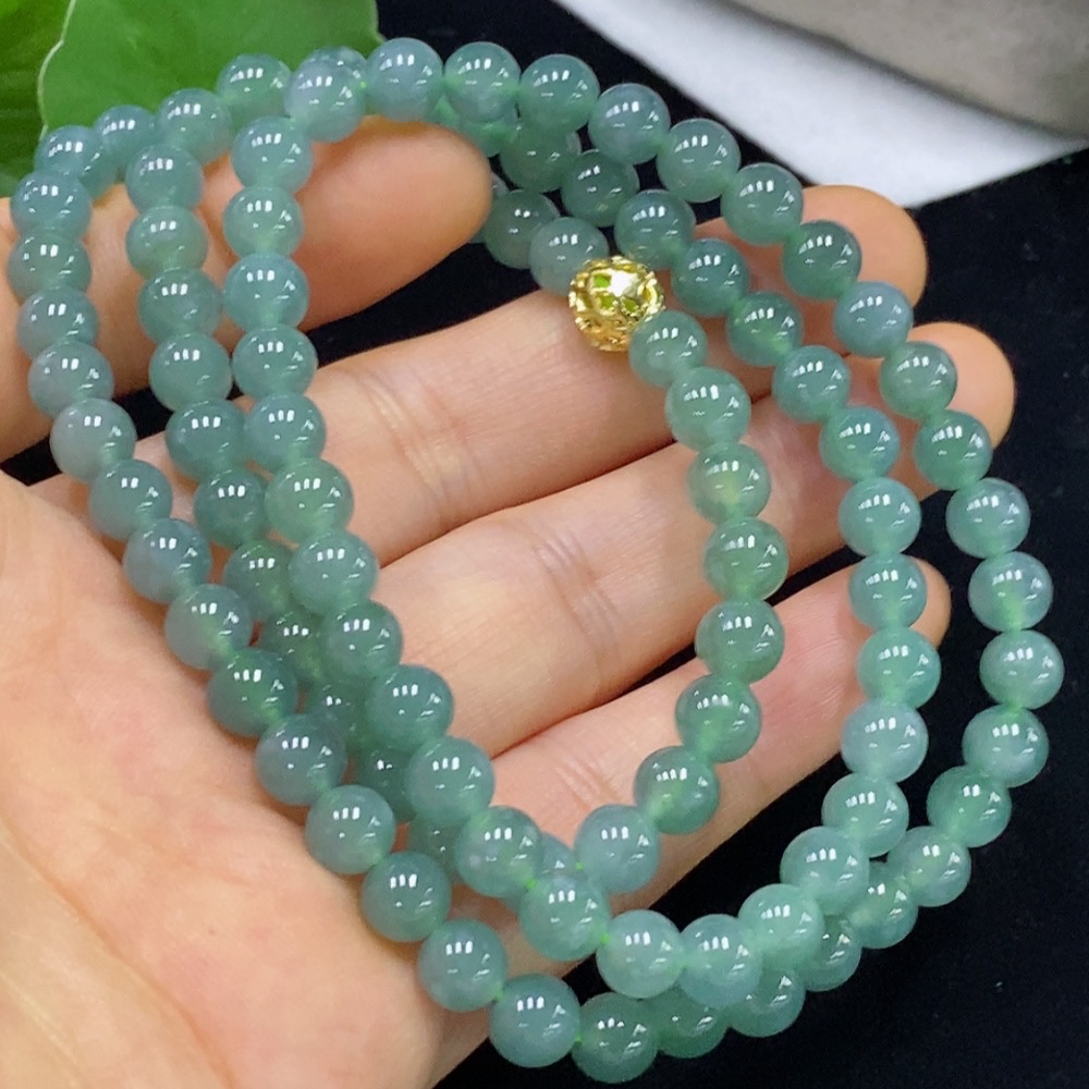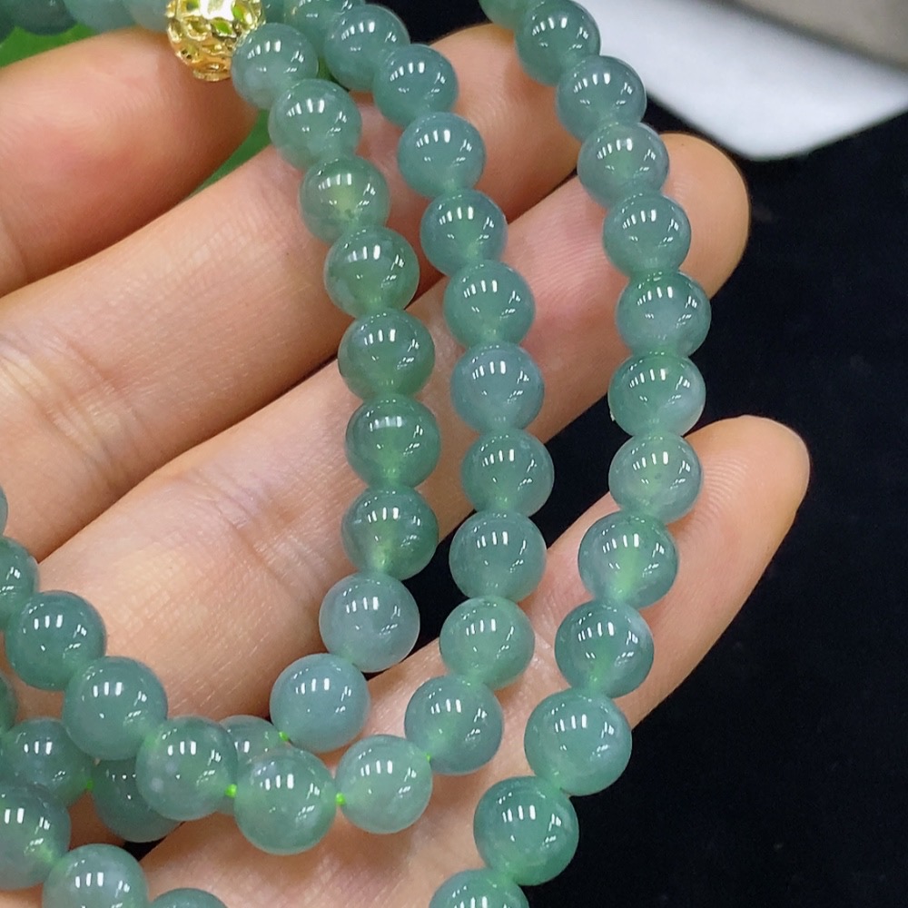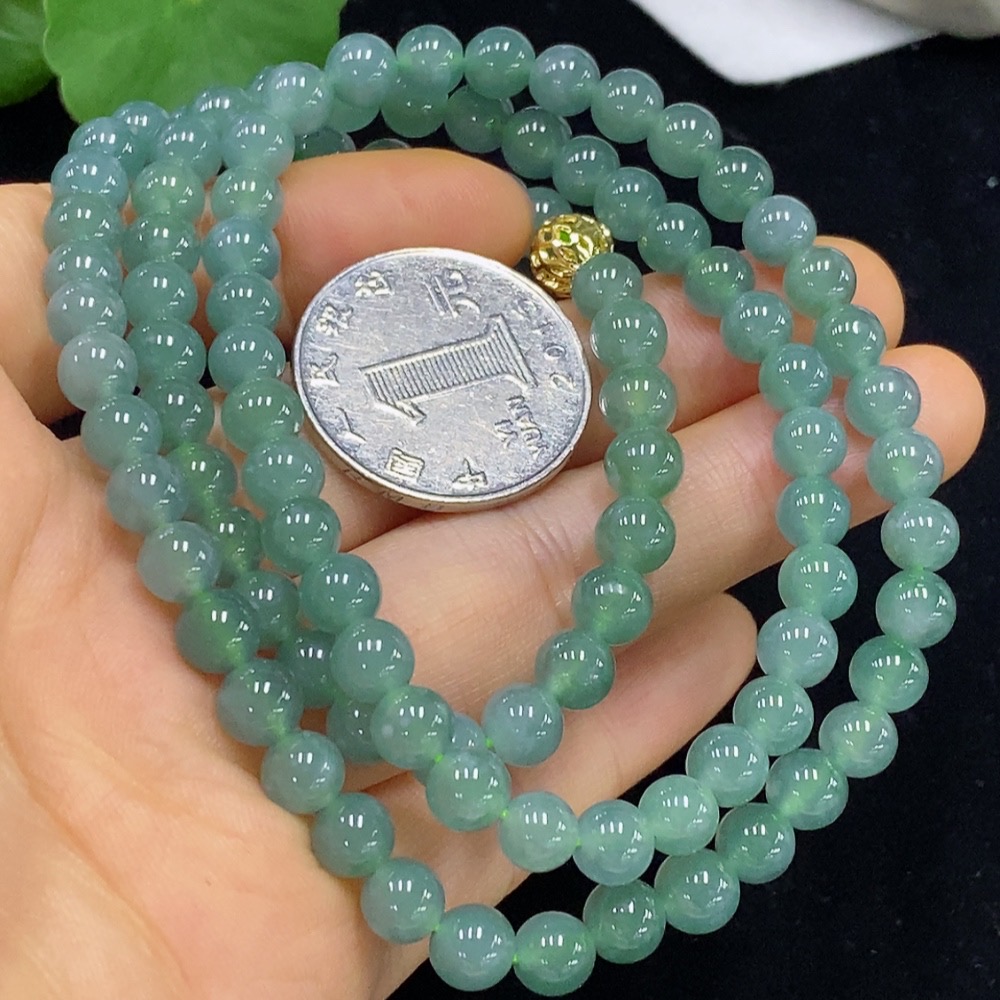 Jadeite Bead Necklace Approx. 6.3mm Non-Gold Total Weight Approx. 41.36g