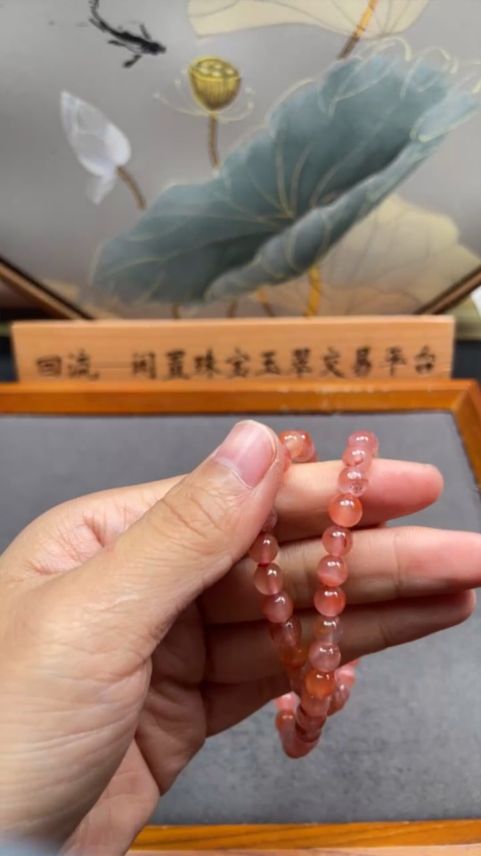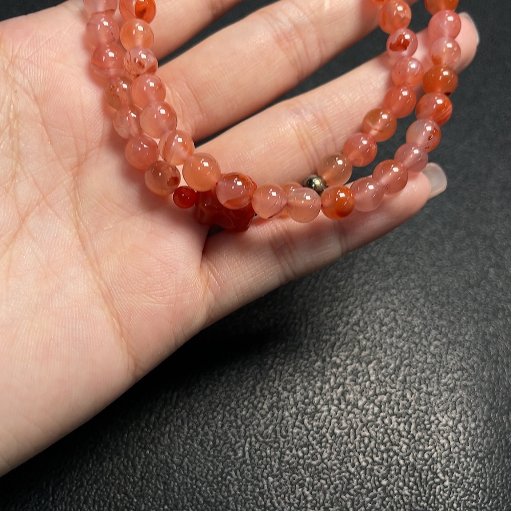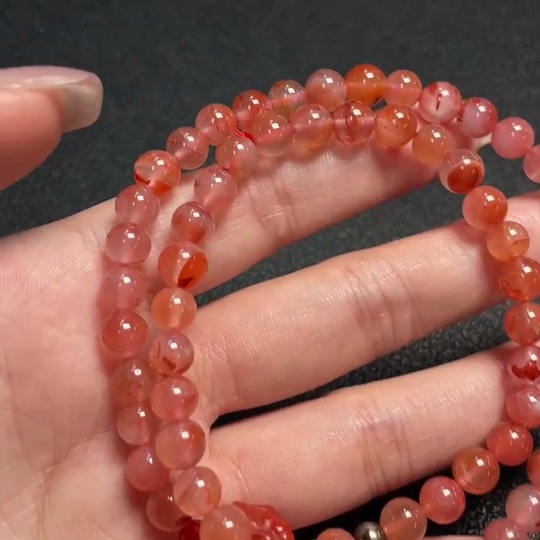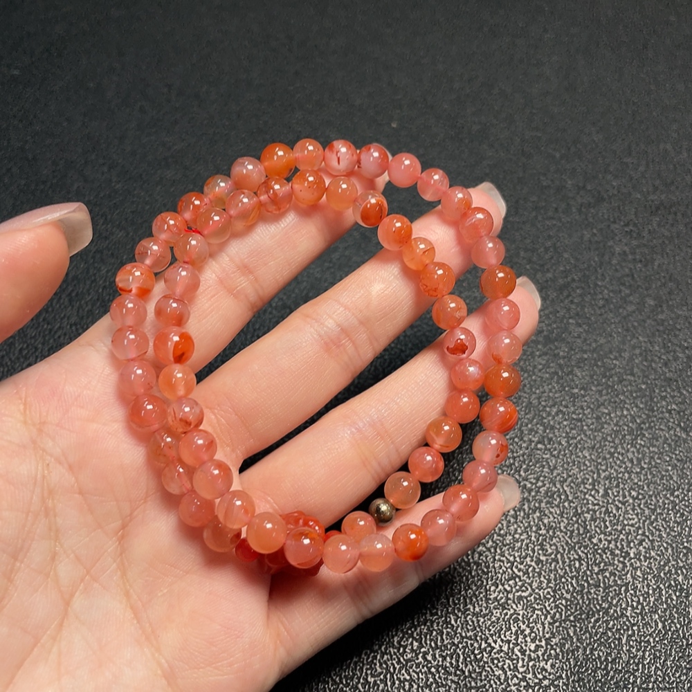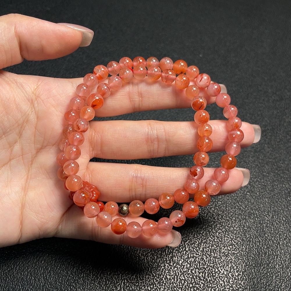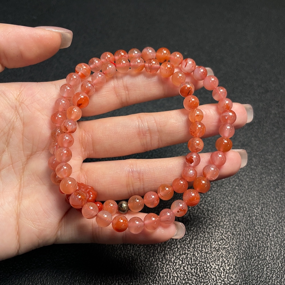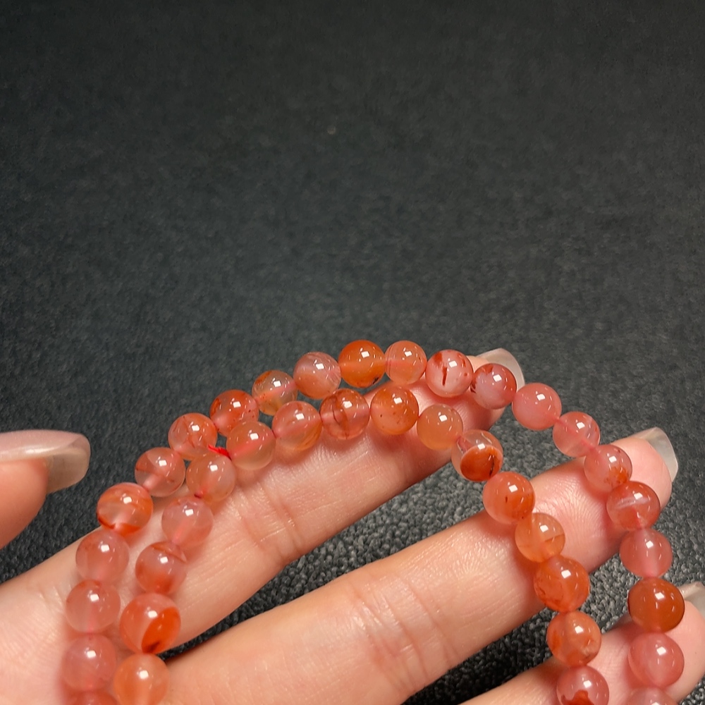 South Red Agate Bead Strand with Visible Organic Matter, Total Weight Approx. 25.93g, Size About 6.5mm, Non-Natural Accent Stones Considered