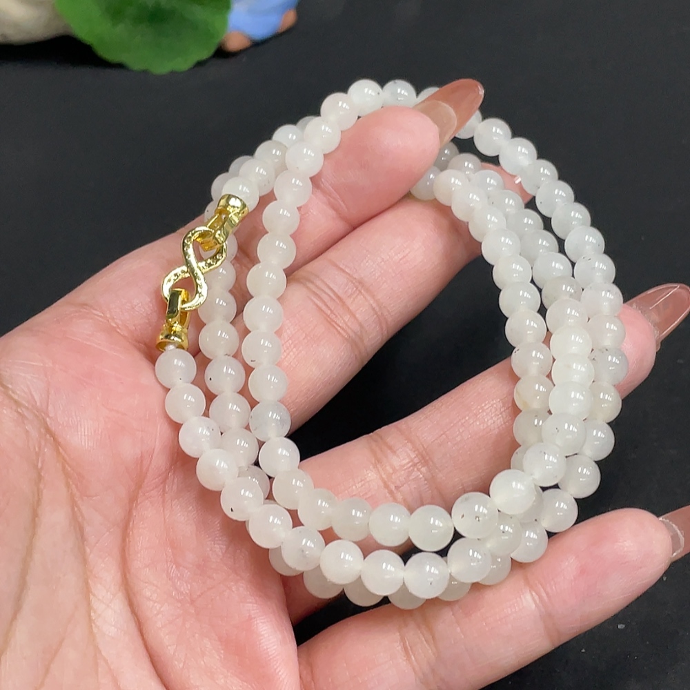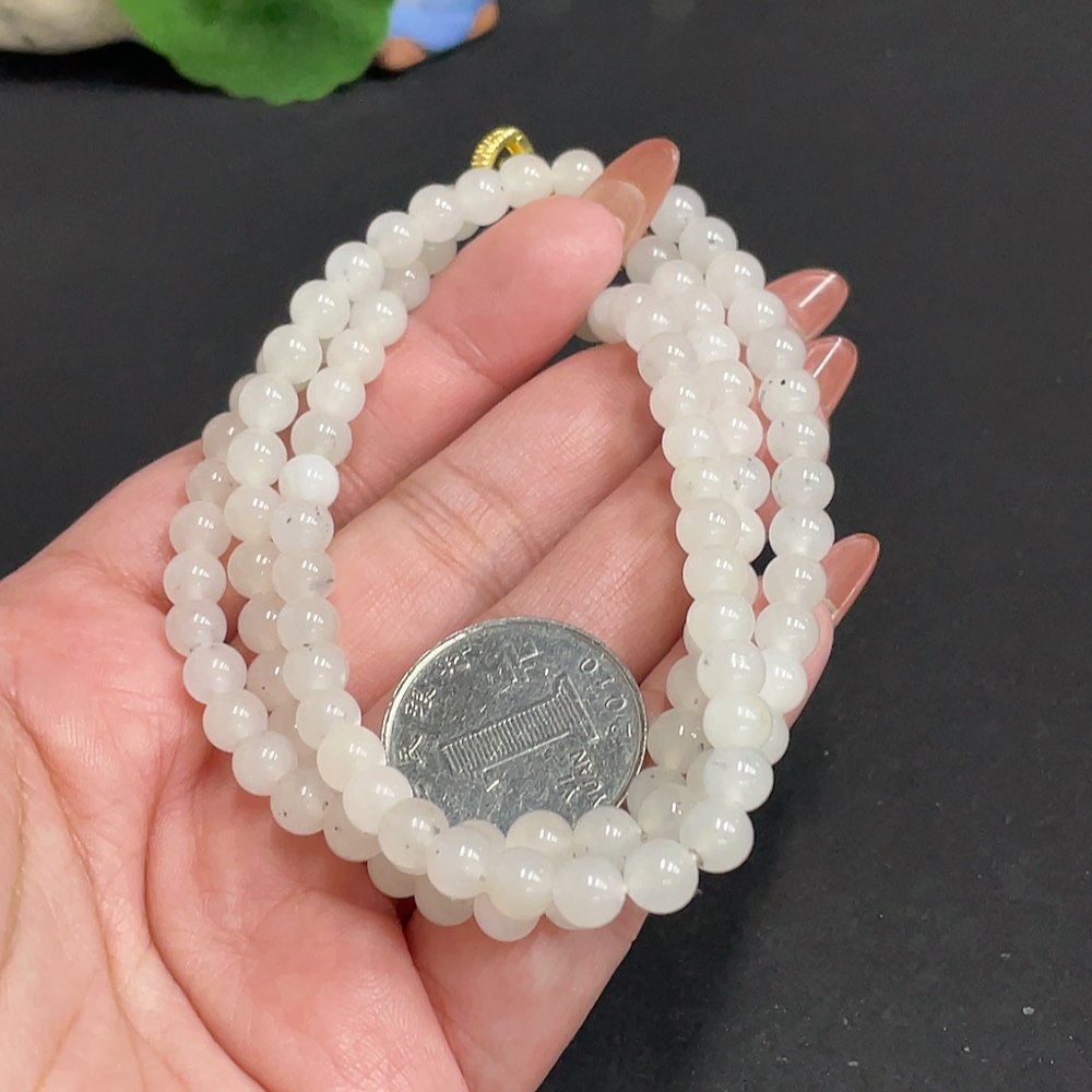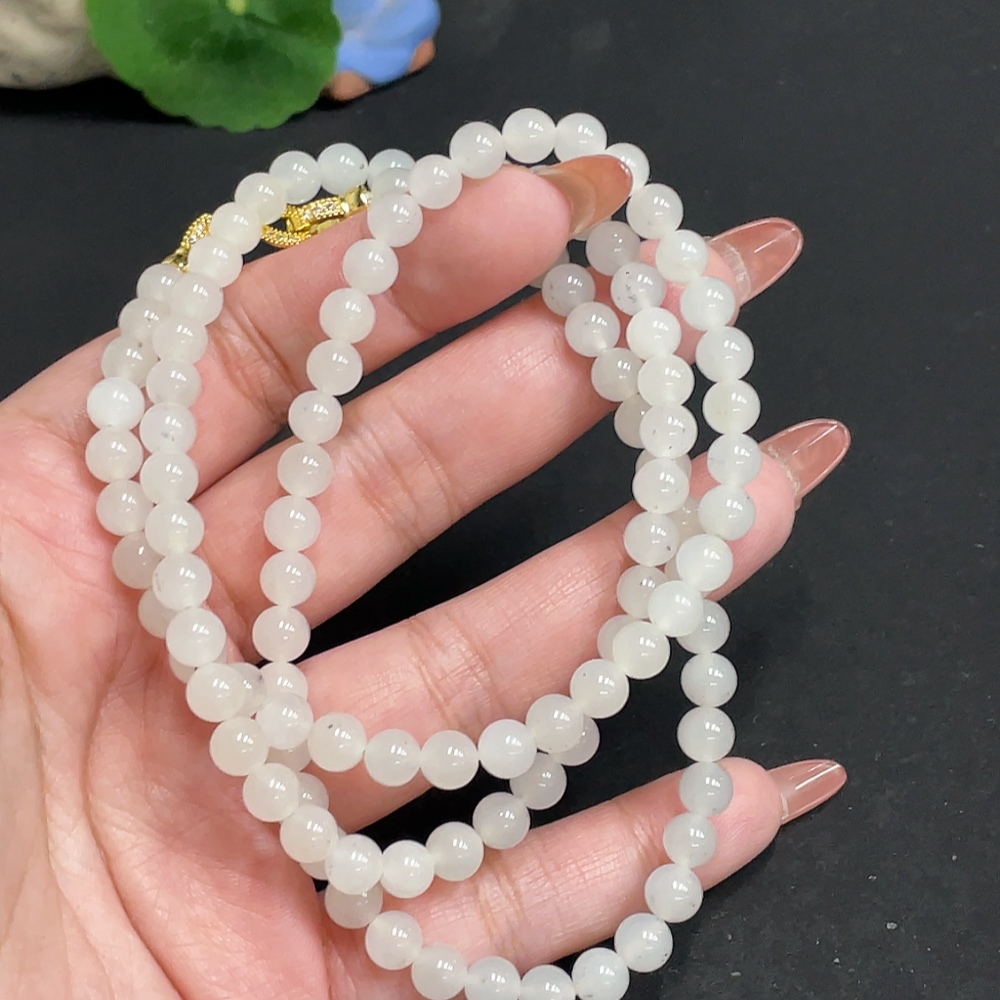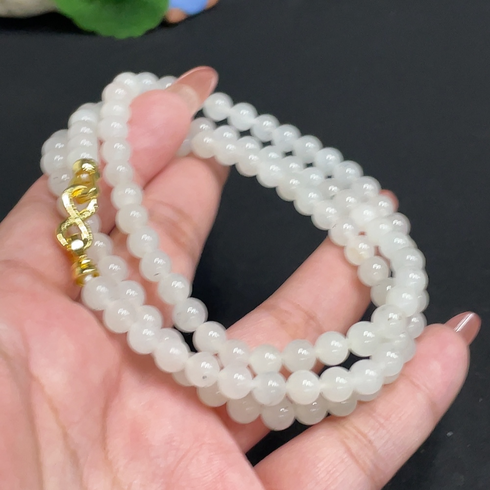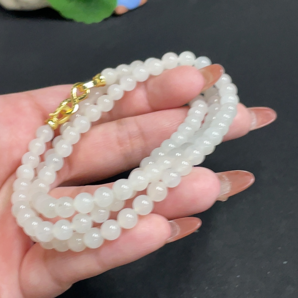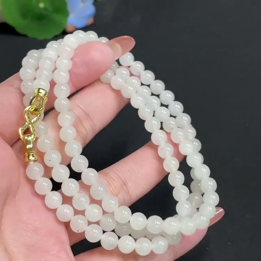 Hetian Jade Bead Necklace, Approx. 5.8 mm, Total Weight Approx. 37.6g, Non-Gold