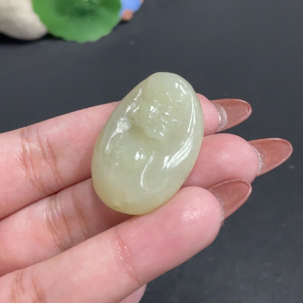 Hetian Jade Pendant Arhat Total weight about 14.6g Color origin undetermined