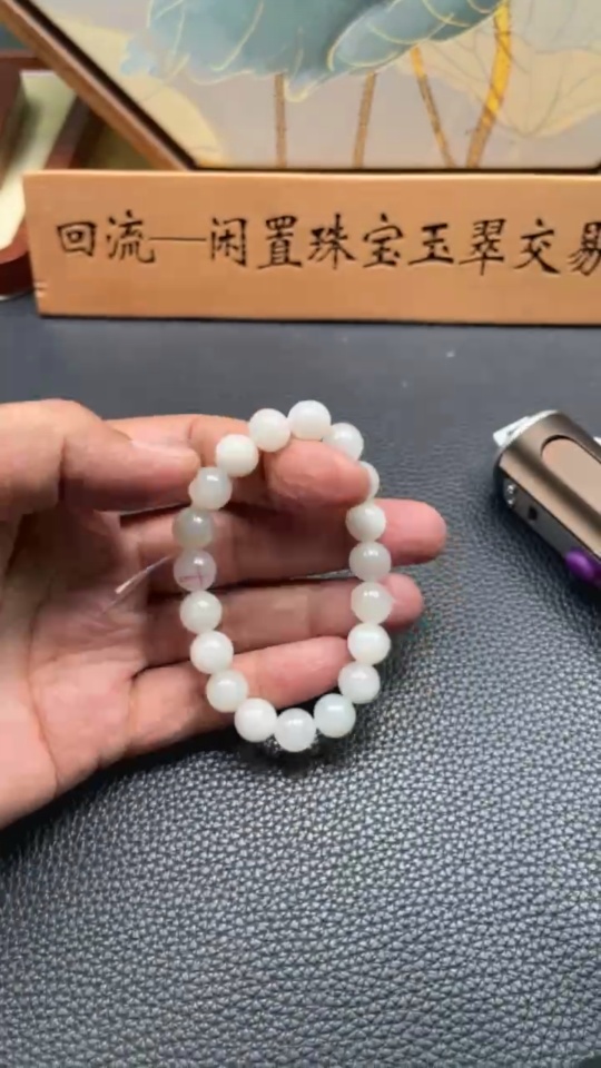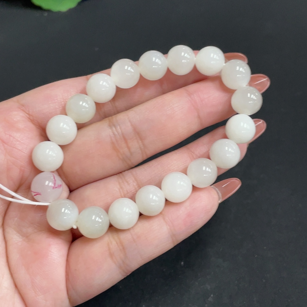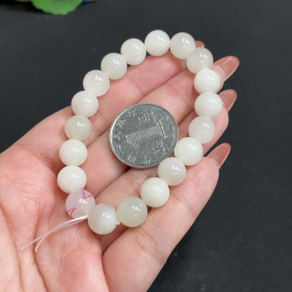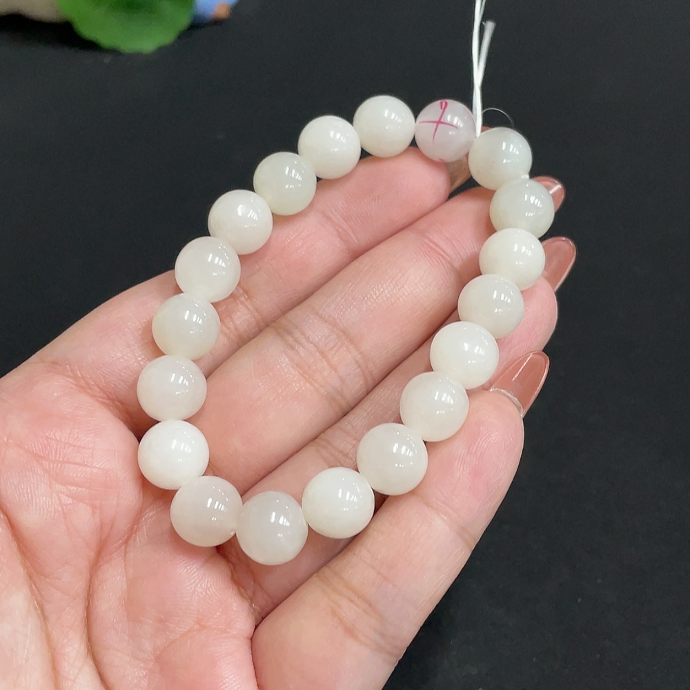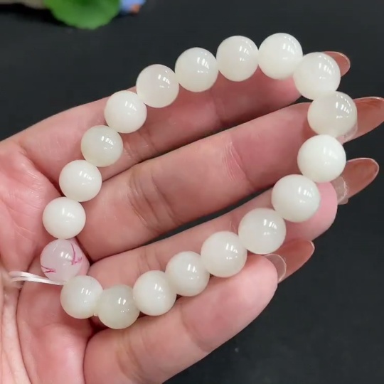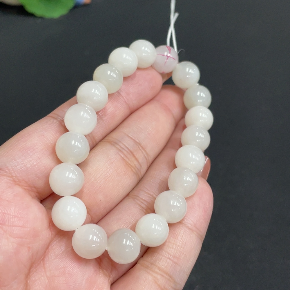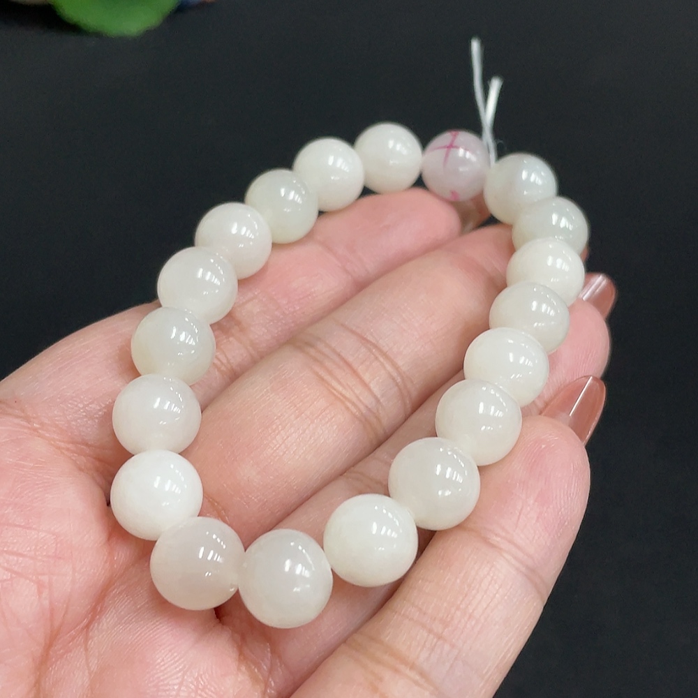 Hetian Jade Bracelet, approximately 9.7mm, total weight about 28.1g, containing other mineral components, non-Hetian Jade accessory beads, with impurities