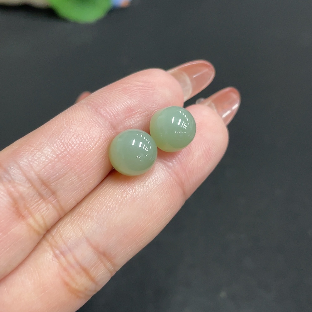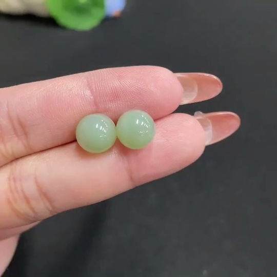 Hetian Jade Inlaid Earrings Card 9.5mm Approx. Total Weight About 2.3g Non-Gold
