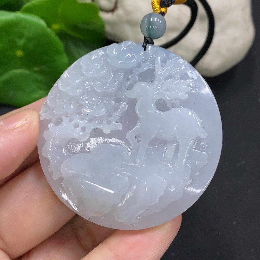 Jadeite Companion on the Journey Pendant, Total Weight Including Rope Approx. 51.8g