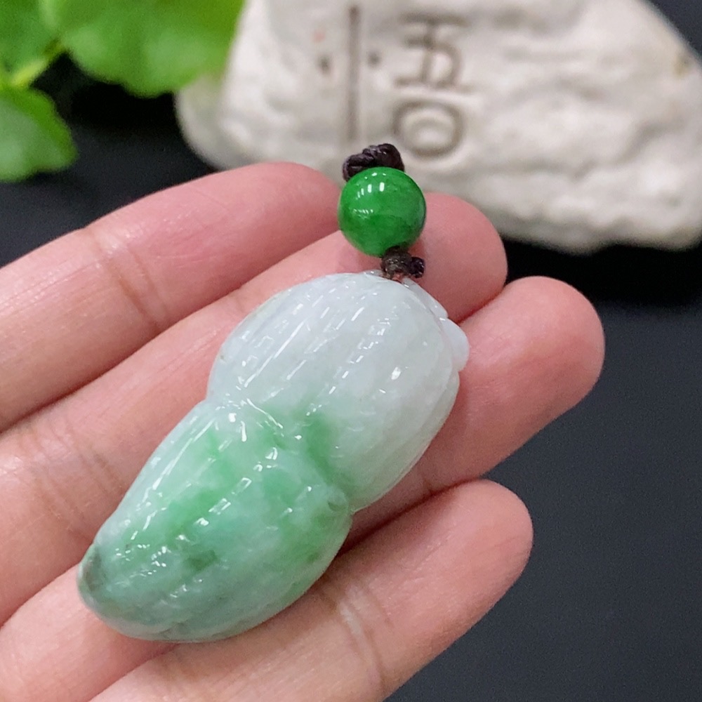 Jadeite Peanut Pendant Total Weight Approx. 24.89g With Non-A Grade Beads