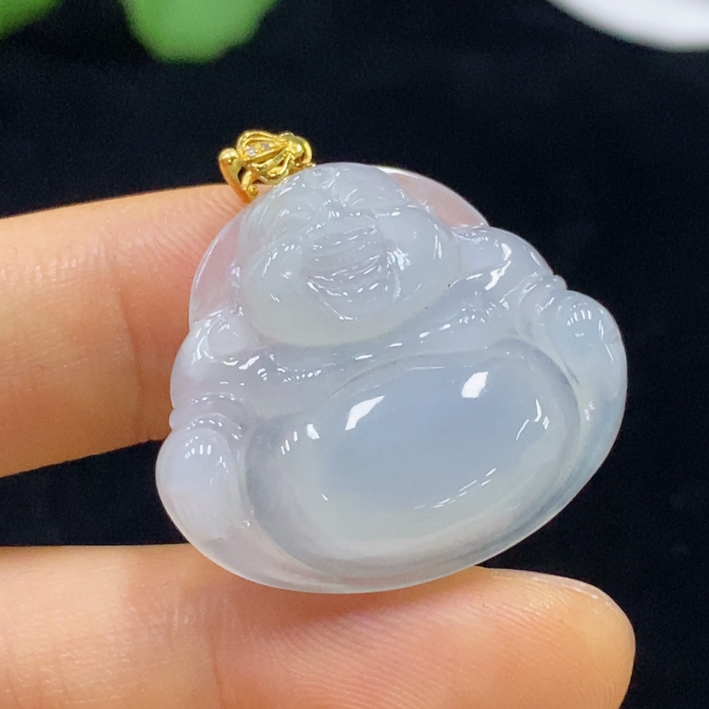 Jadeite Pendant Buddha with 18k Clasp and Diamond Accents, Total Weight Approximately 6.57g