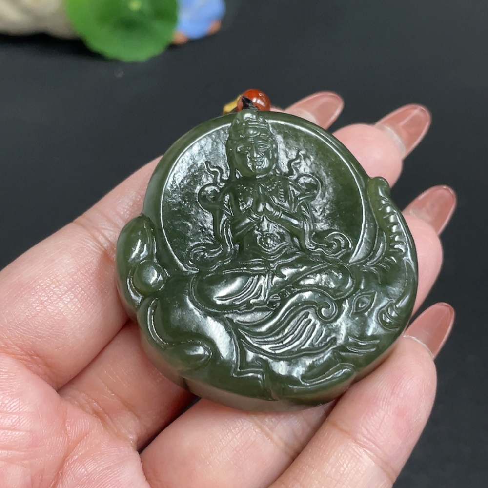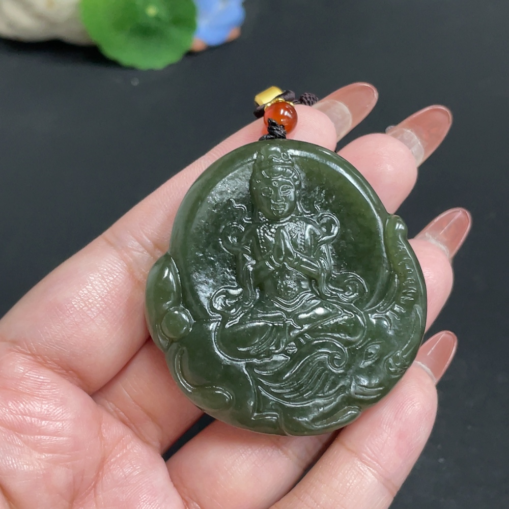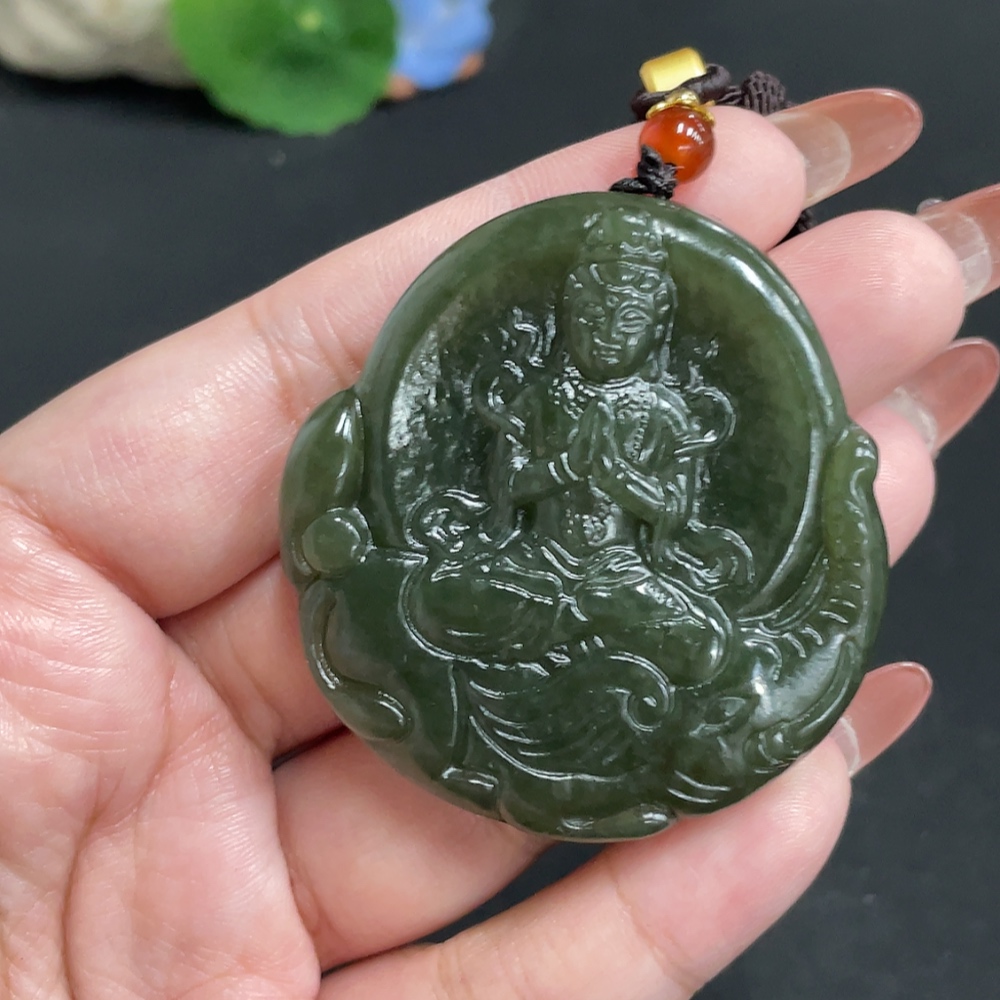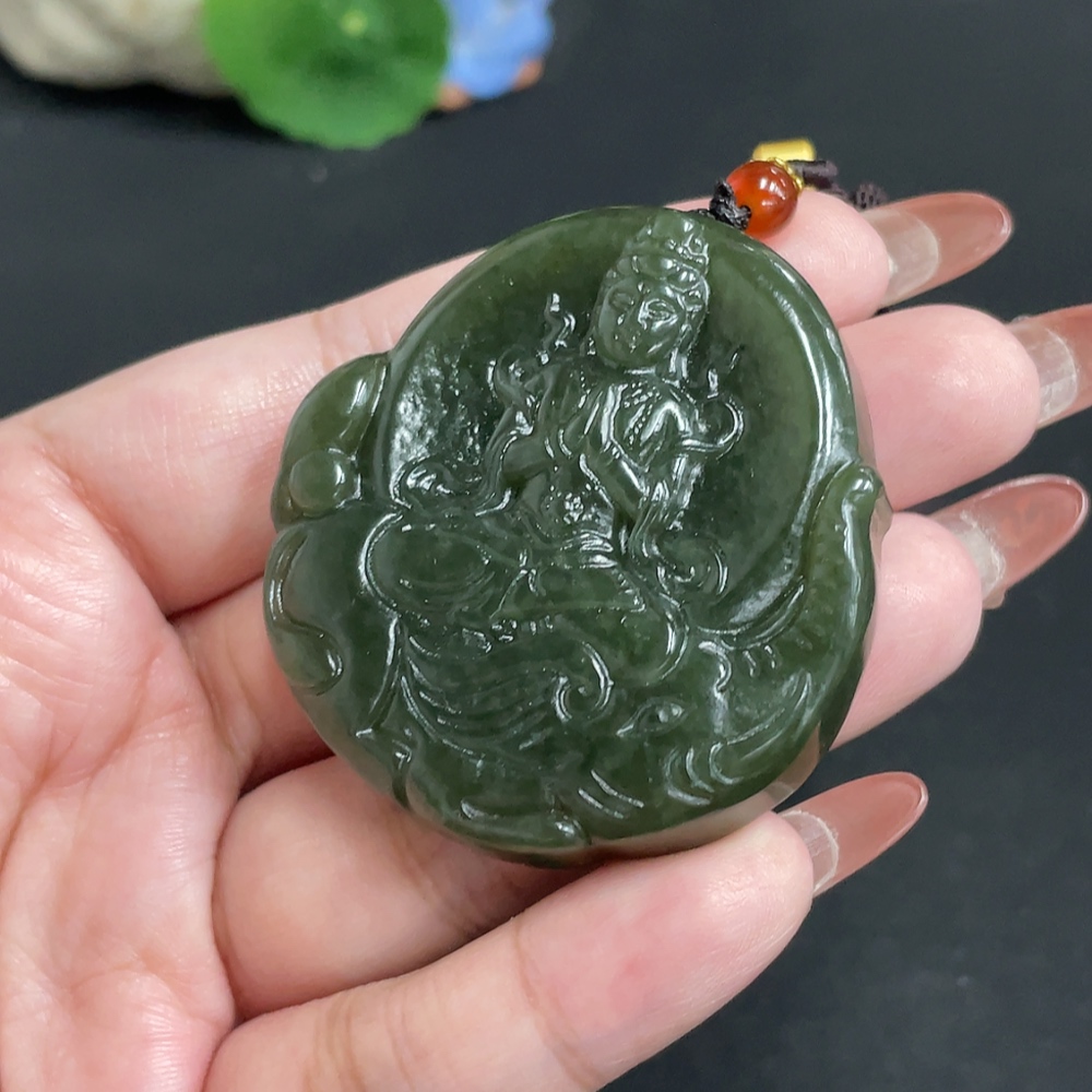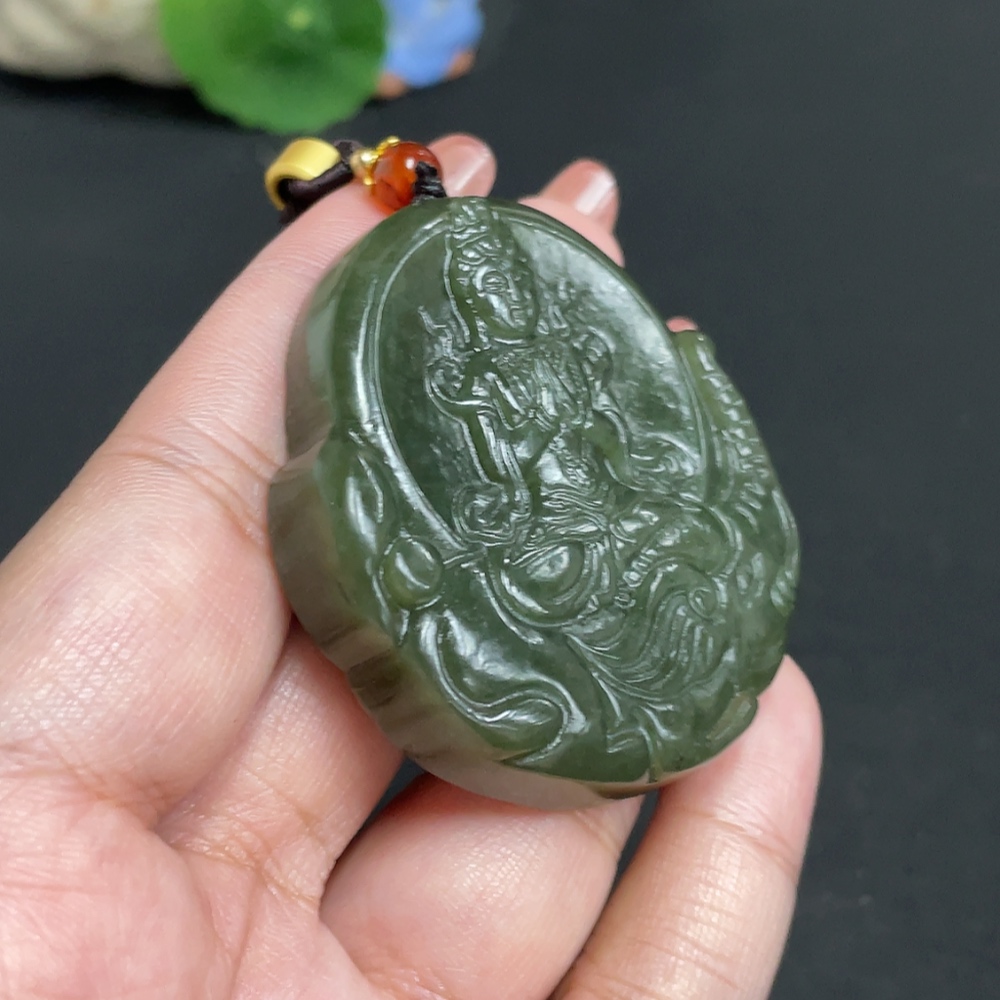 Hetian Jade Pendant Avalokiteshvara Total Weight Approx. [with rope] 57.5g