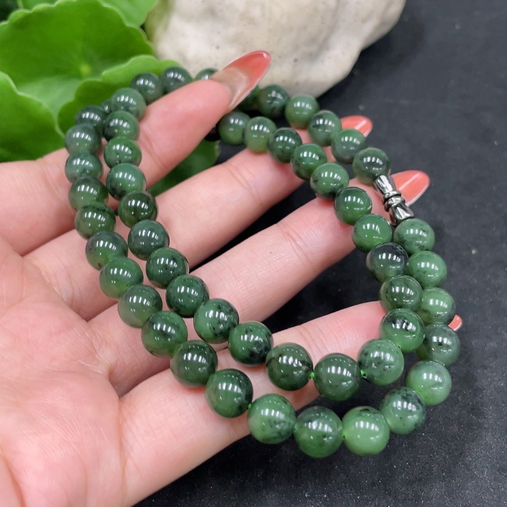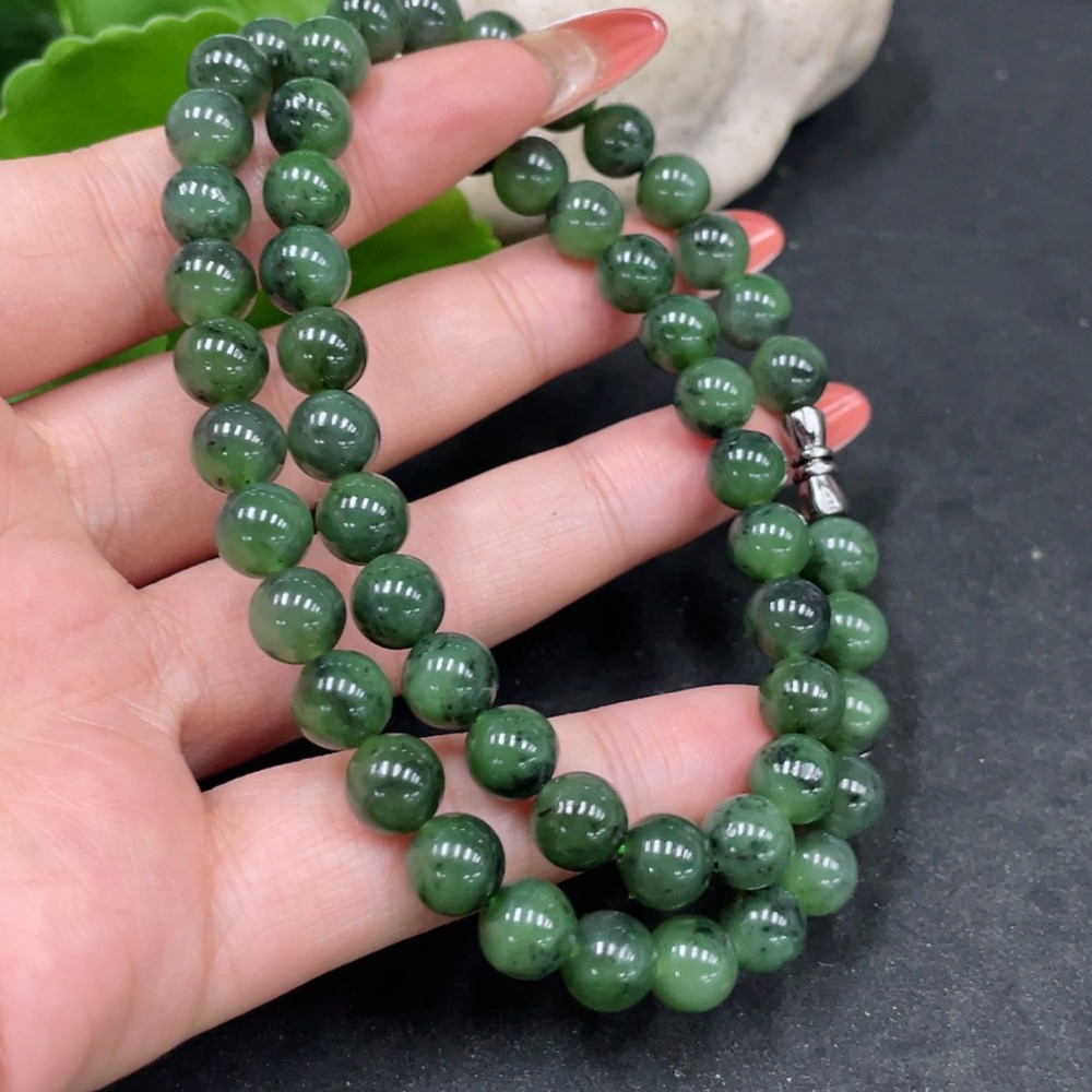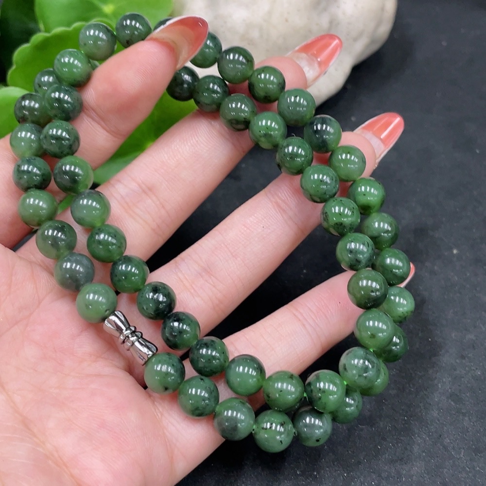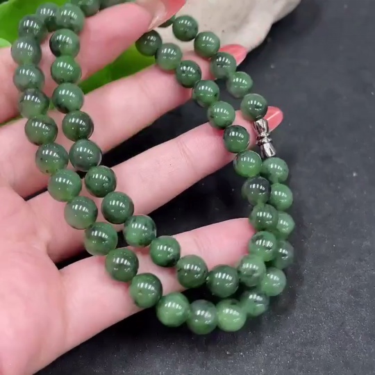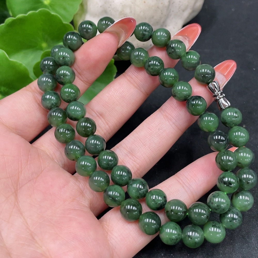 Hetian Jade Jasper Bead Necklace Non-Gold Approx. 7.8mm Total Weight About 43.9g