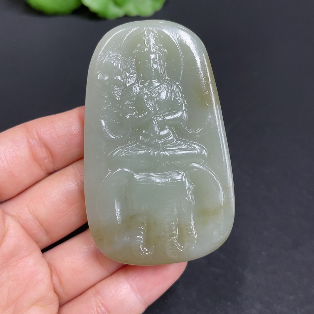 Hetian Jade Pendant, Samantabhadra Bodhisattva, total weight about 64.2g
