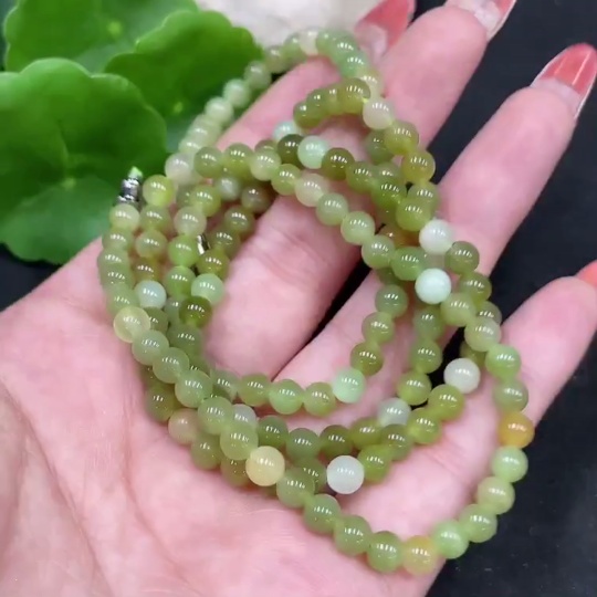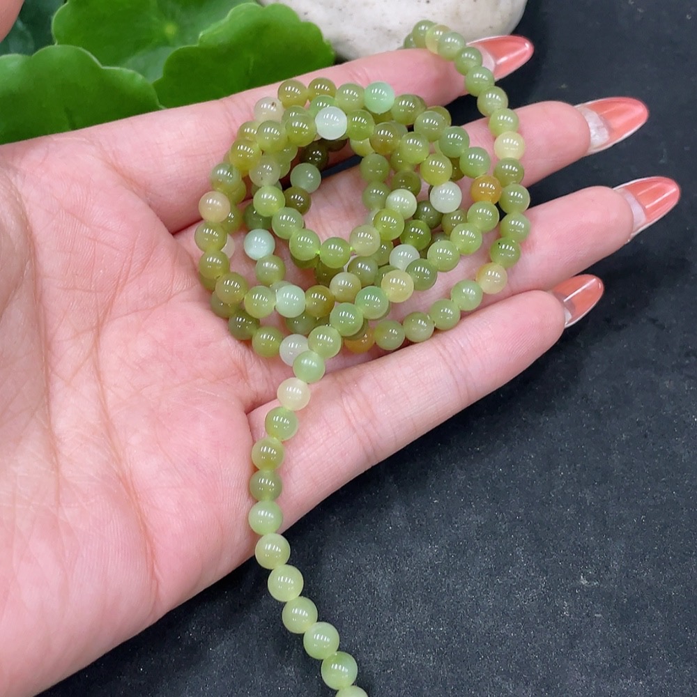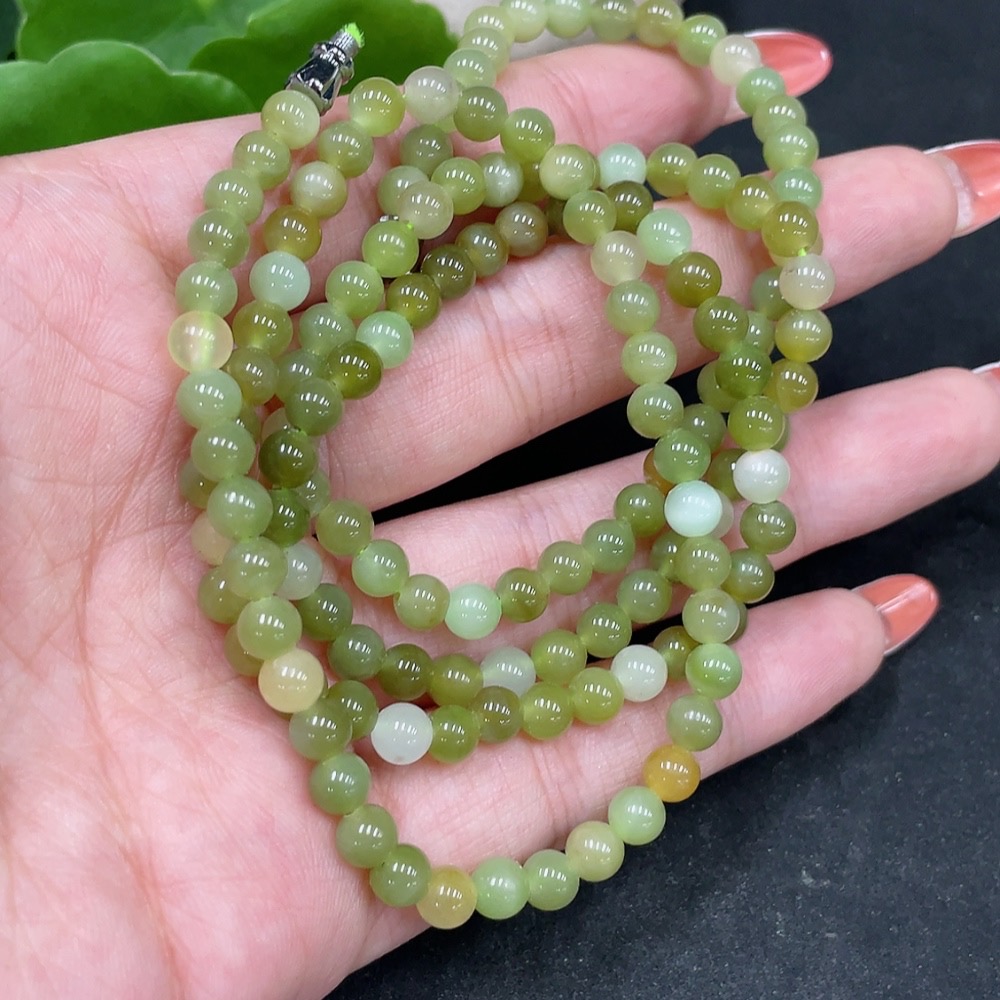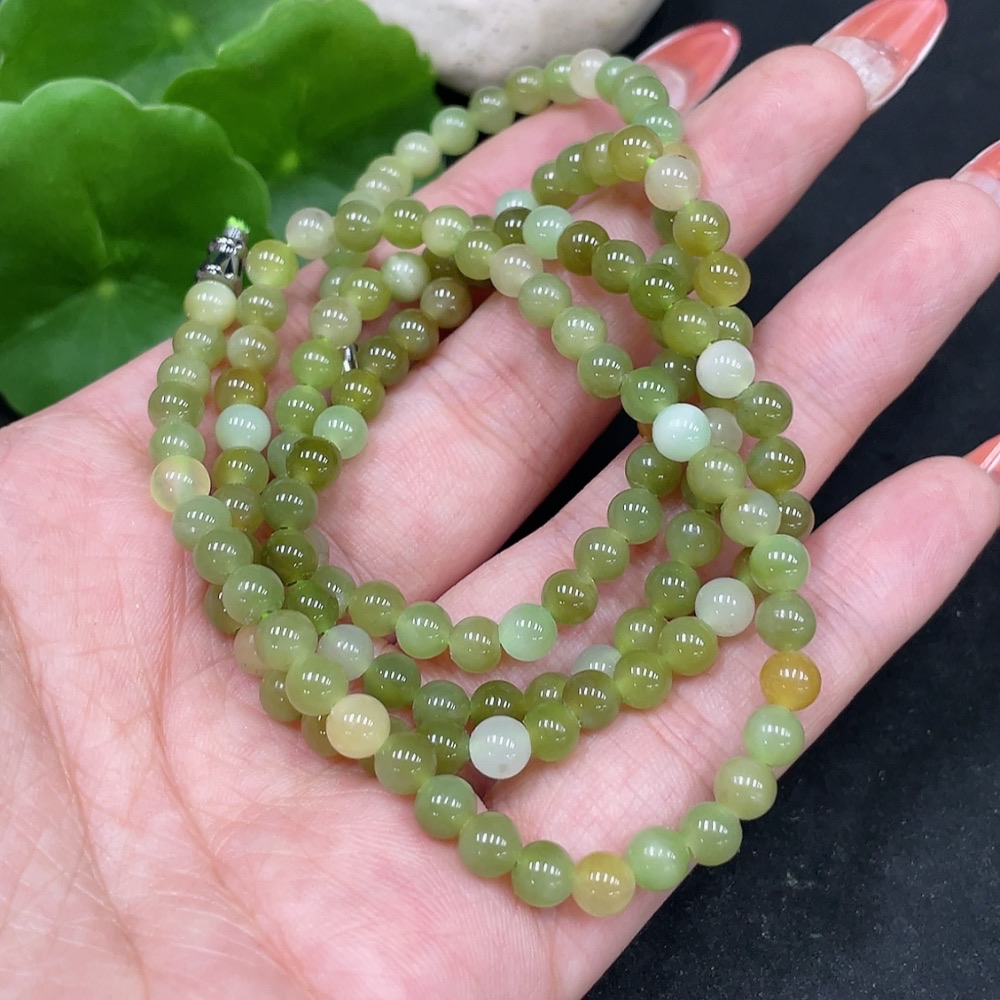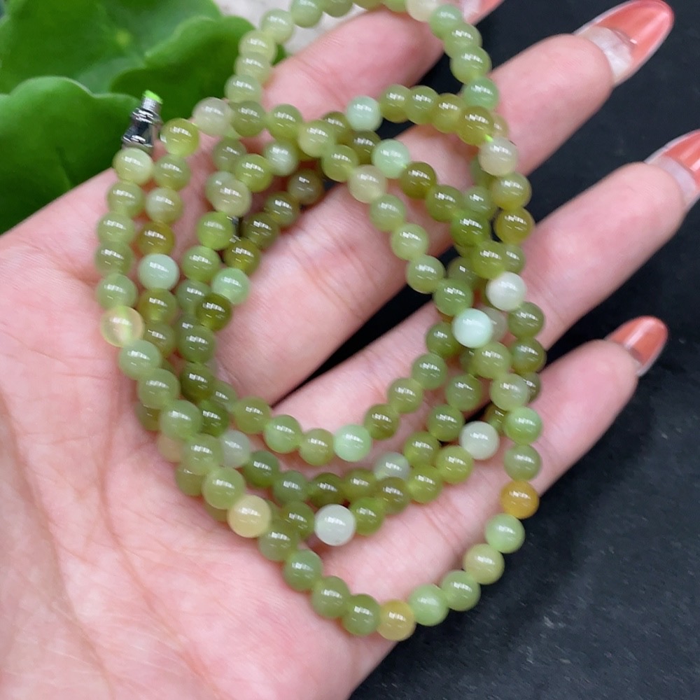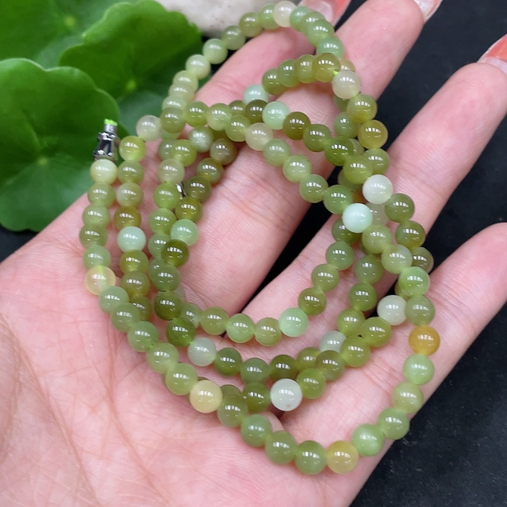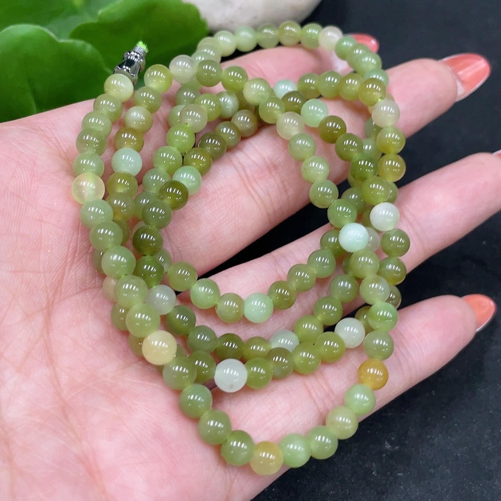 Hetian Jade Bead Chain Non-Gold Approx. 4.8mm Total Weight About 25.6g