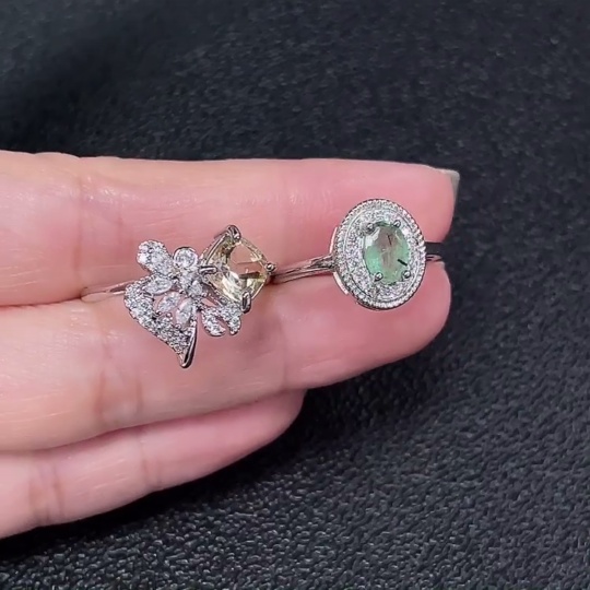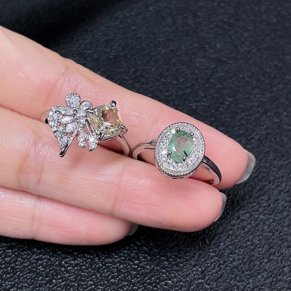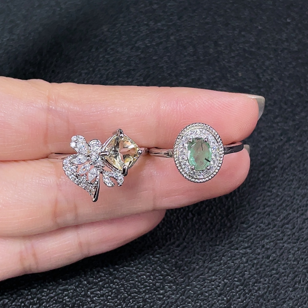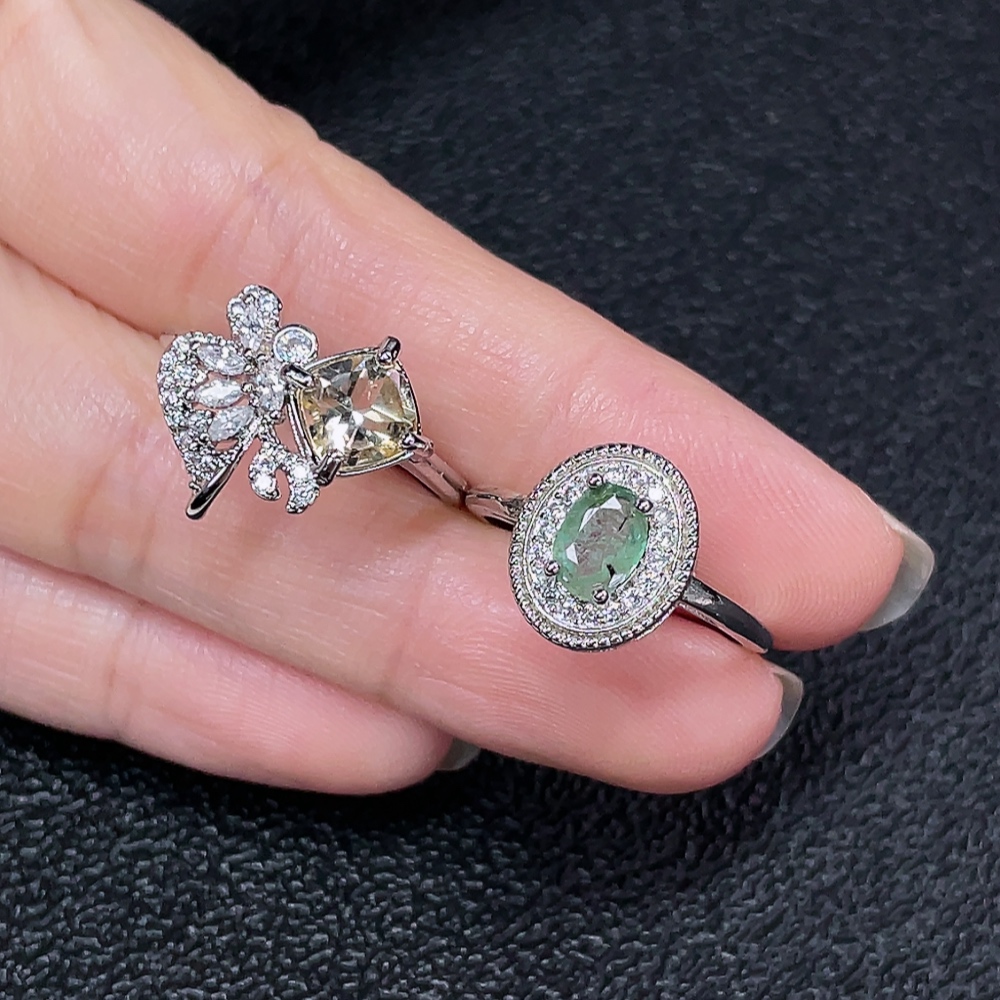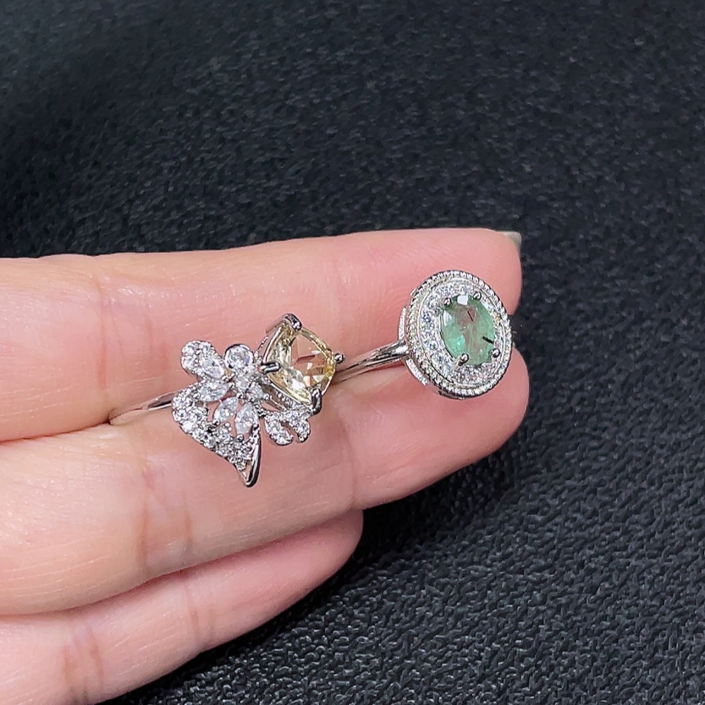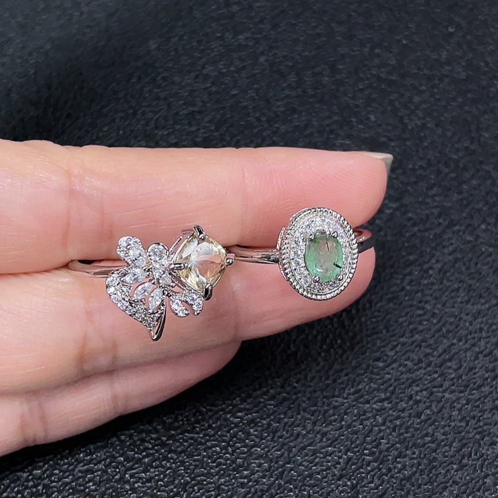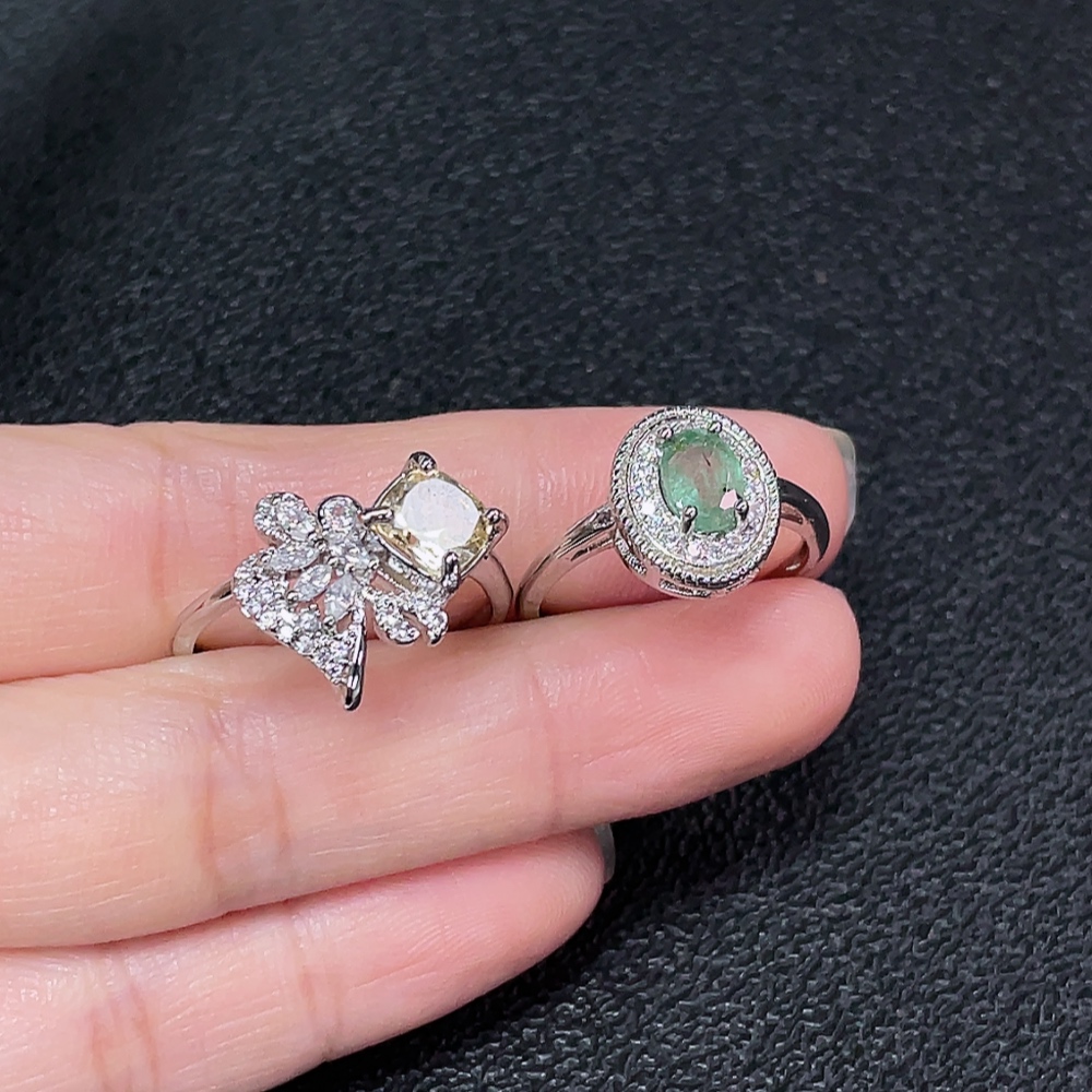 Emerald + Crystal Ring, Adjustable, Non-Gold, Total Weight Approx. 4.32g, Sell as a Lot