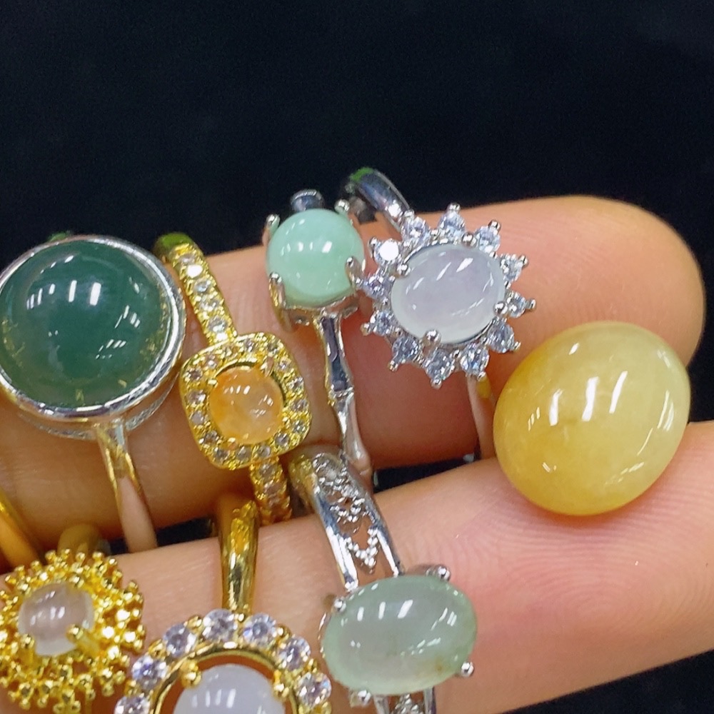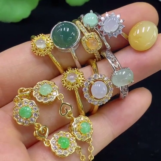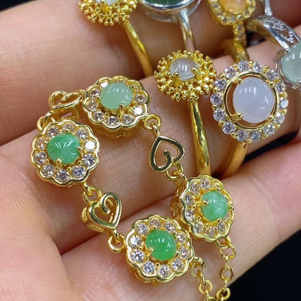 Jadeite Cabochon Set (Bracelet + Ring + Mountings) Non-Gold Adjustable