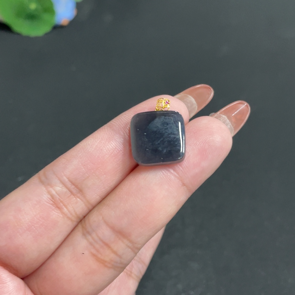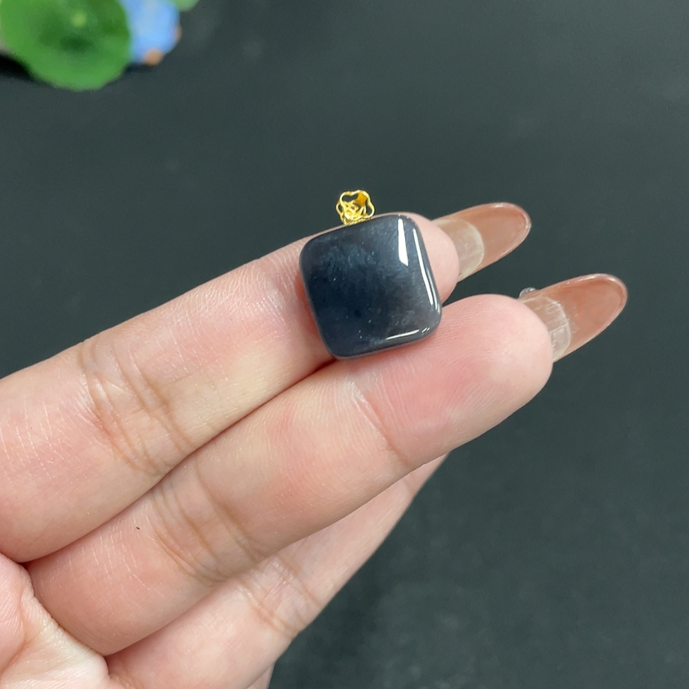 Hetian Jade Inlaid Pendant, Plain Pendant, Total Weight Approx. 2.7g, 18k