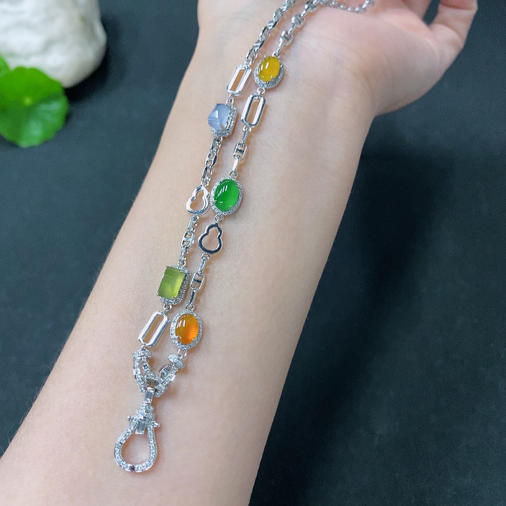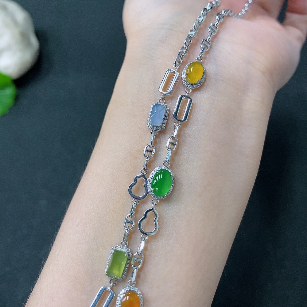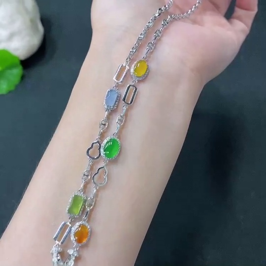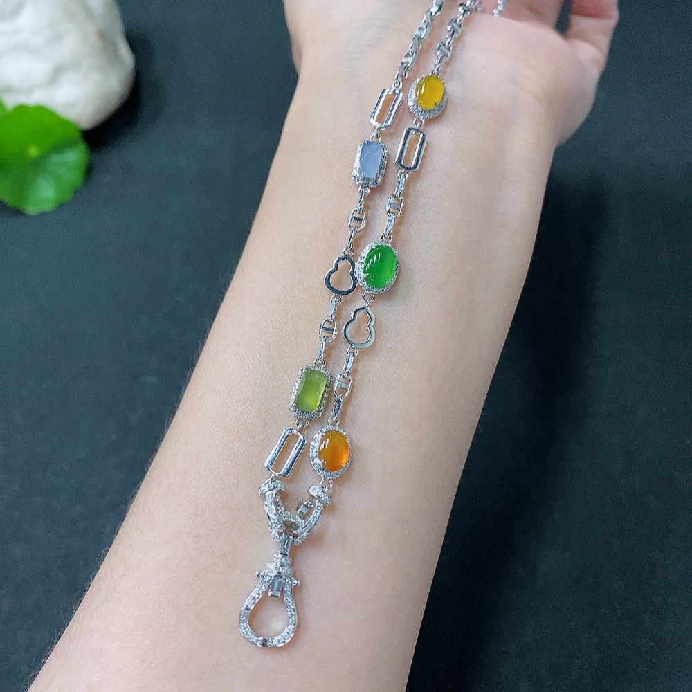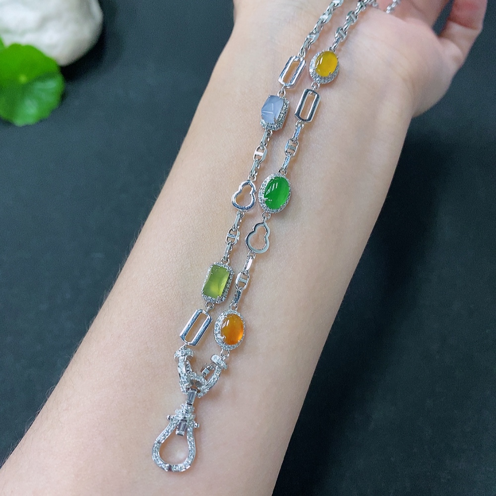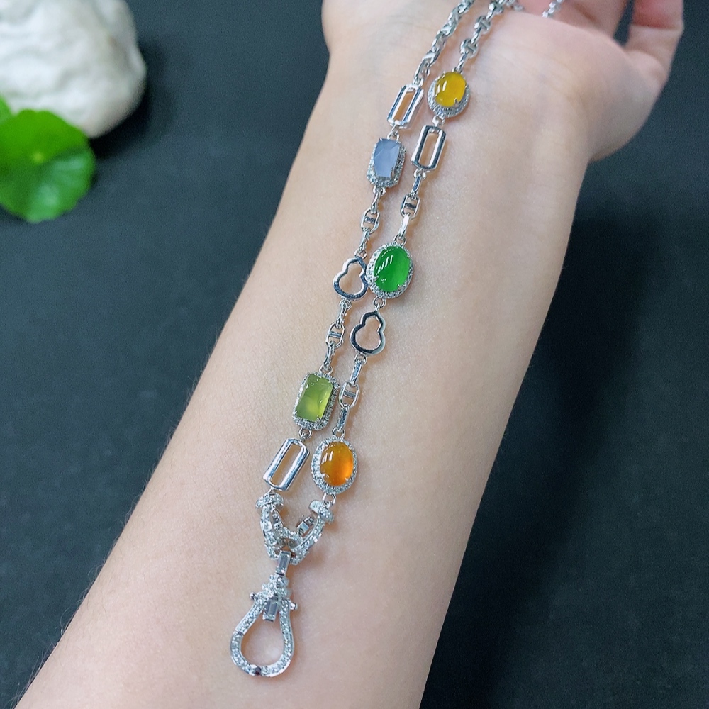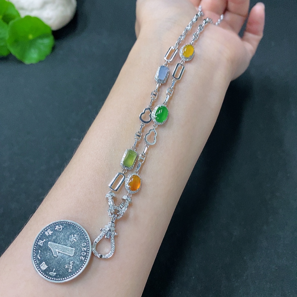 Jadeite inlaid necklace with 18k gold and diamonds, total weight approximately 9.86g