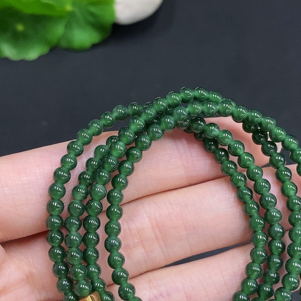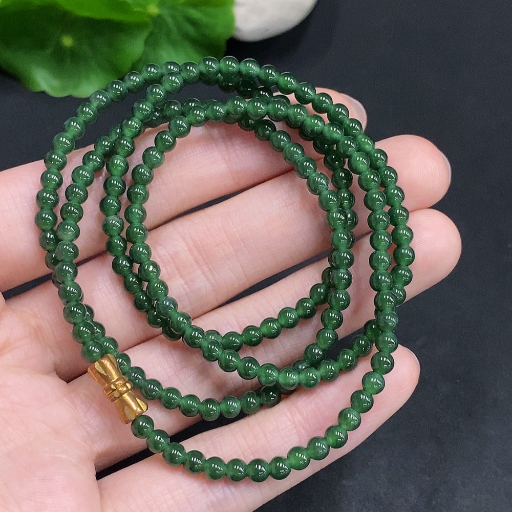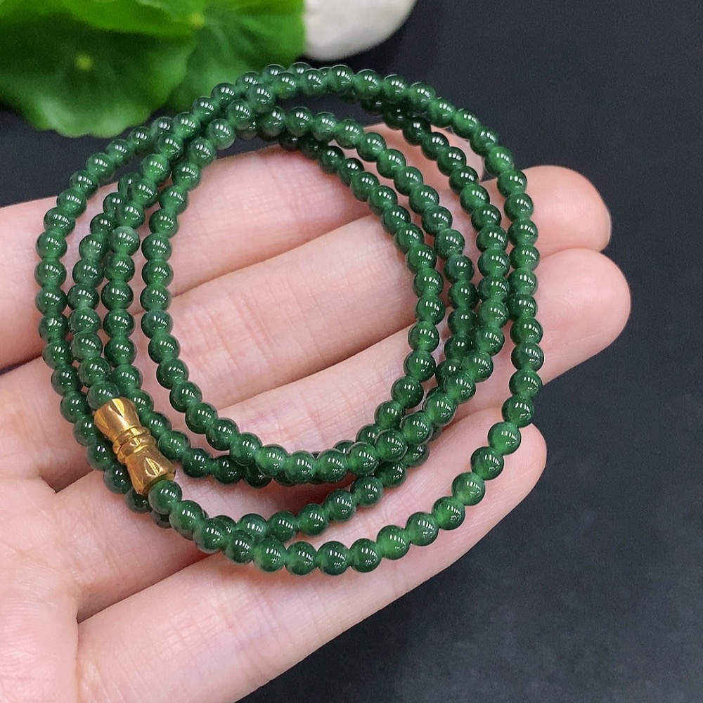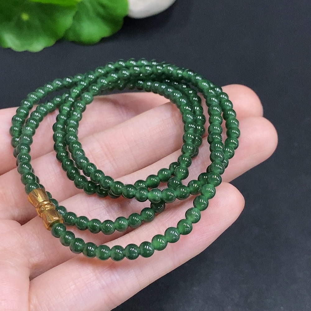 Jadeite Bead Necklace Non-Gold Inlaid Total Weight Approx. 14.7g Size 3.5mm