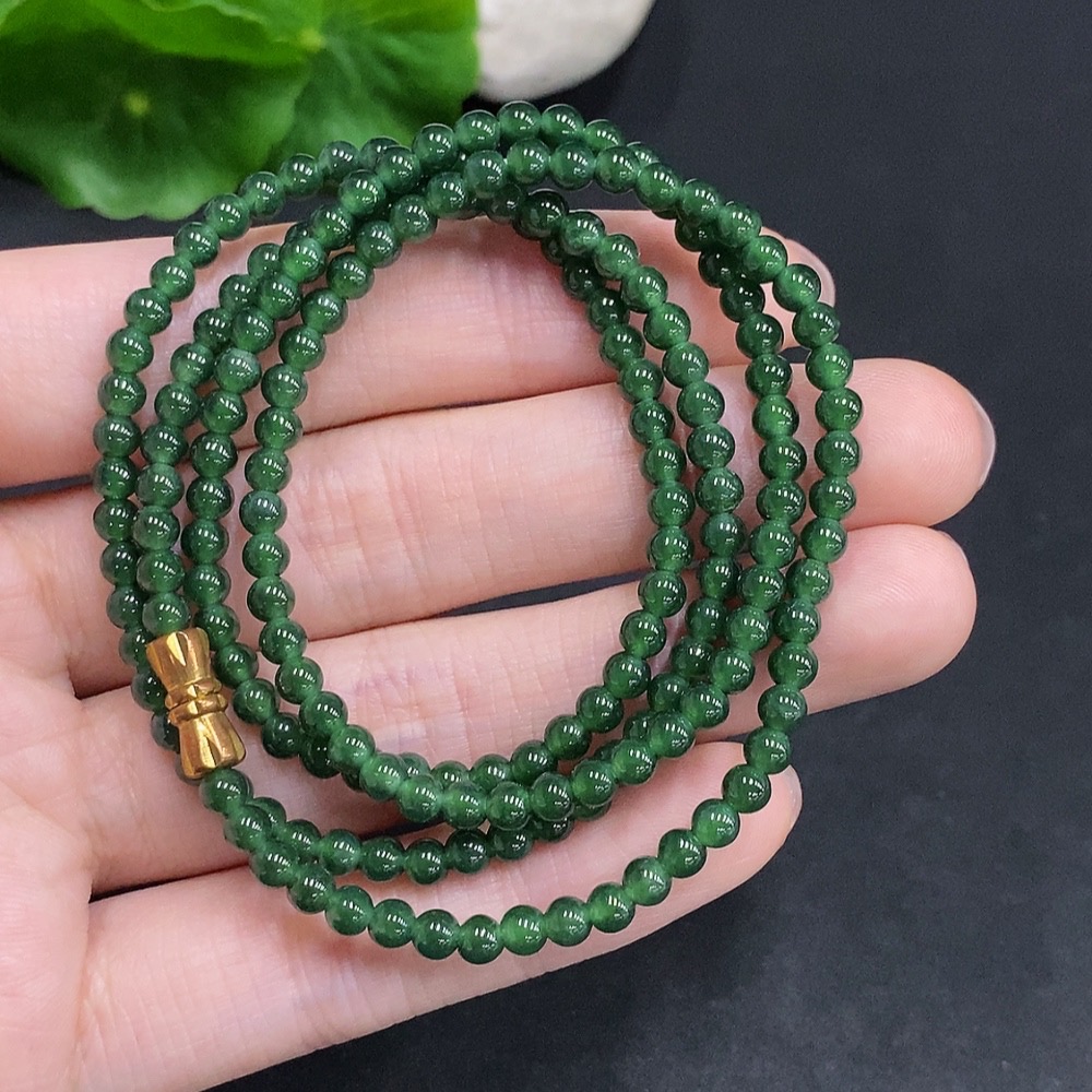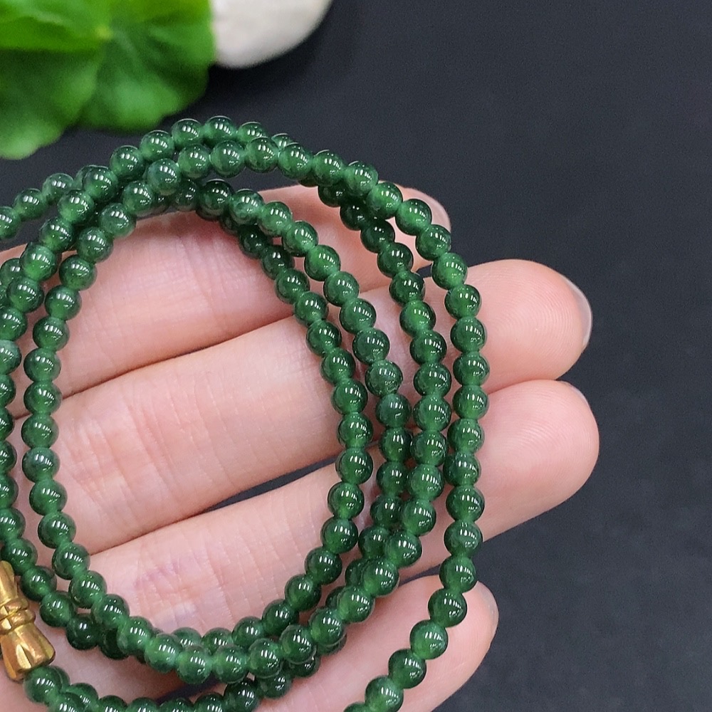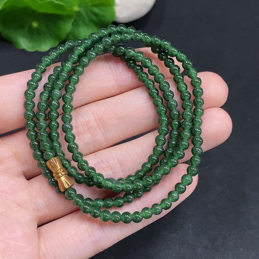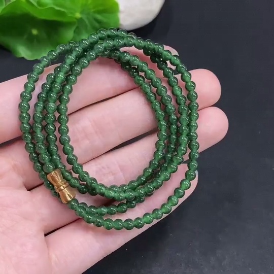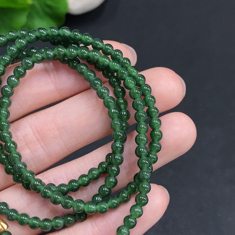 Jadeite Bead Necklace Non-Gold Inlaid Total Weight Approx. 14.7g Size 3.5mm
