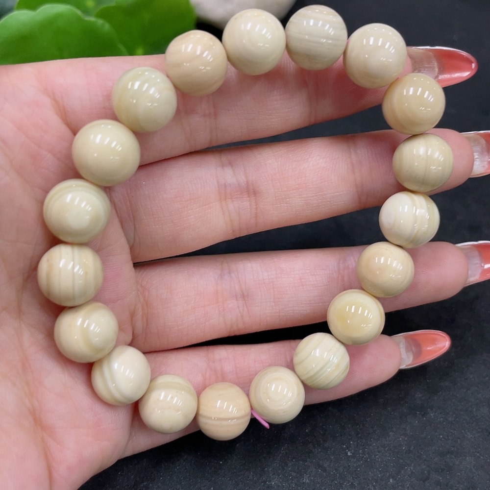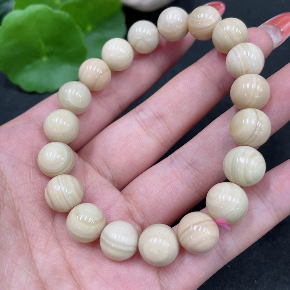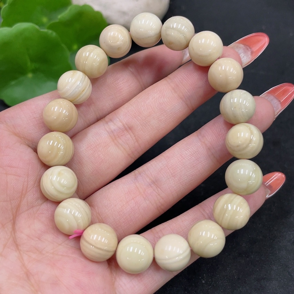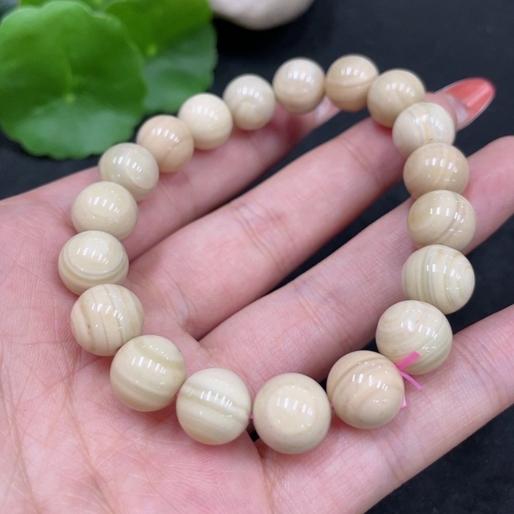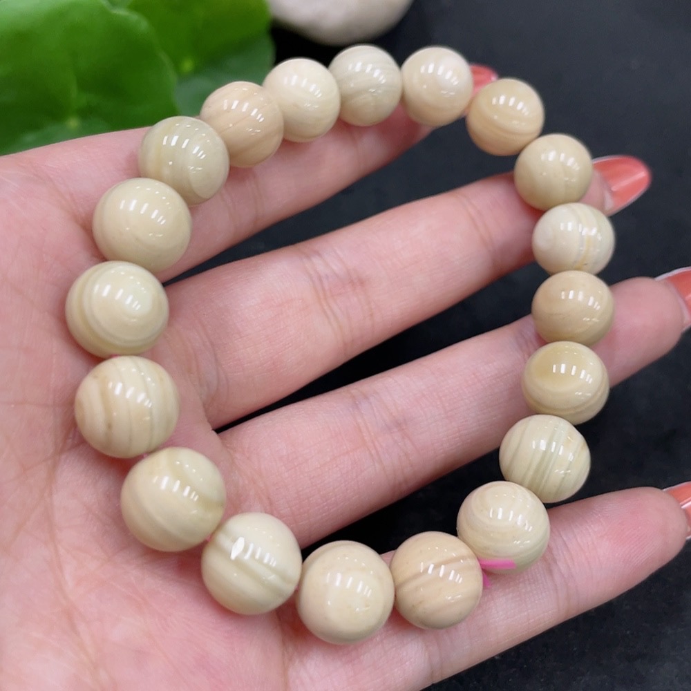 Alashan Agate Bracelet Approximately 10.4mm with Other Mineral Components Total Weight About 30.4g