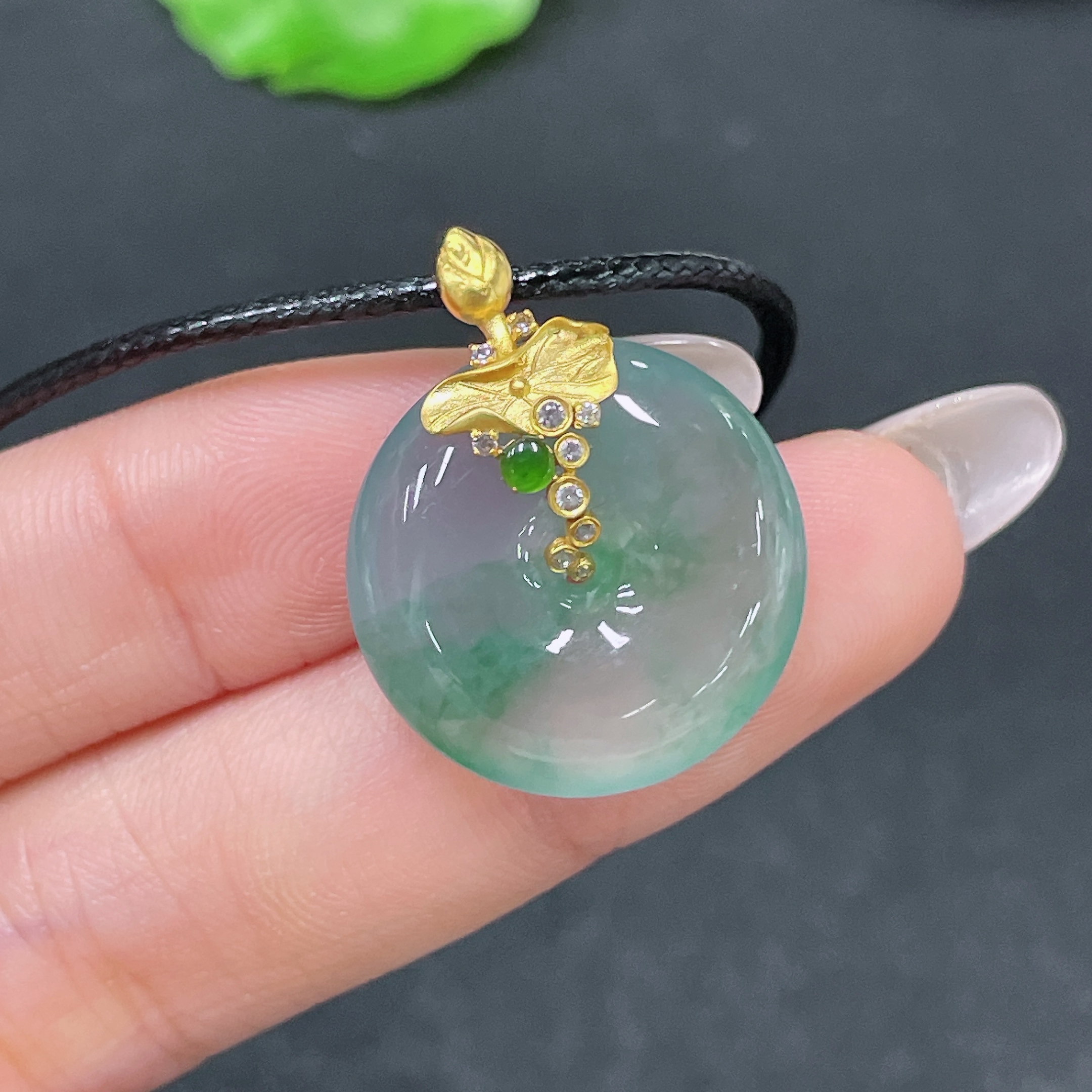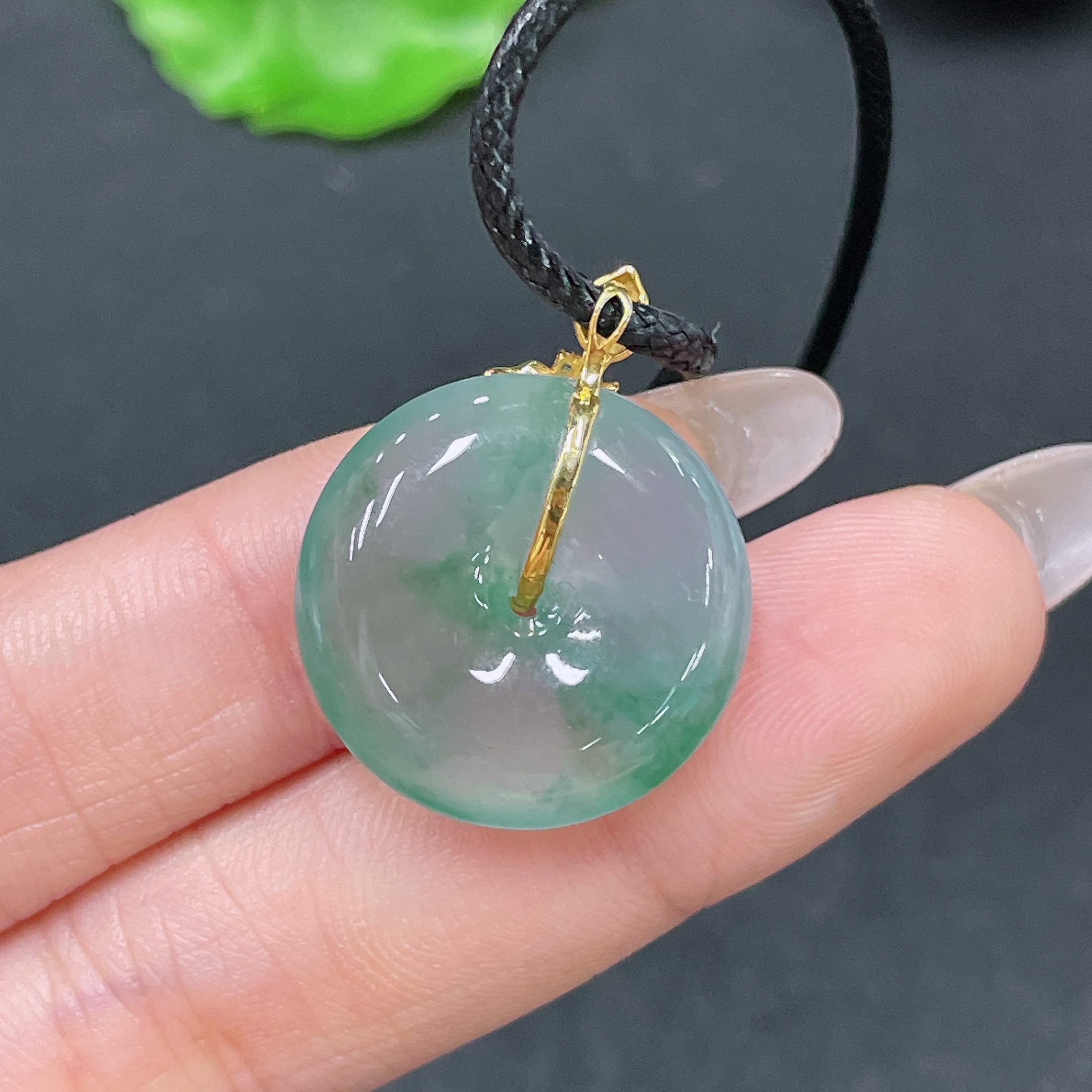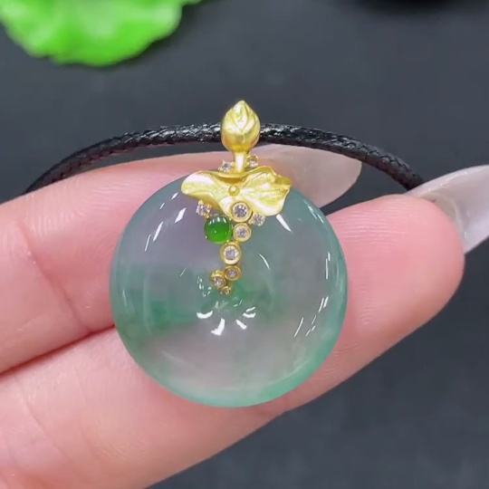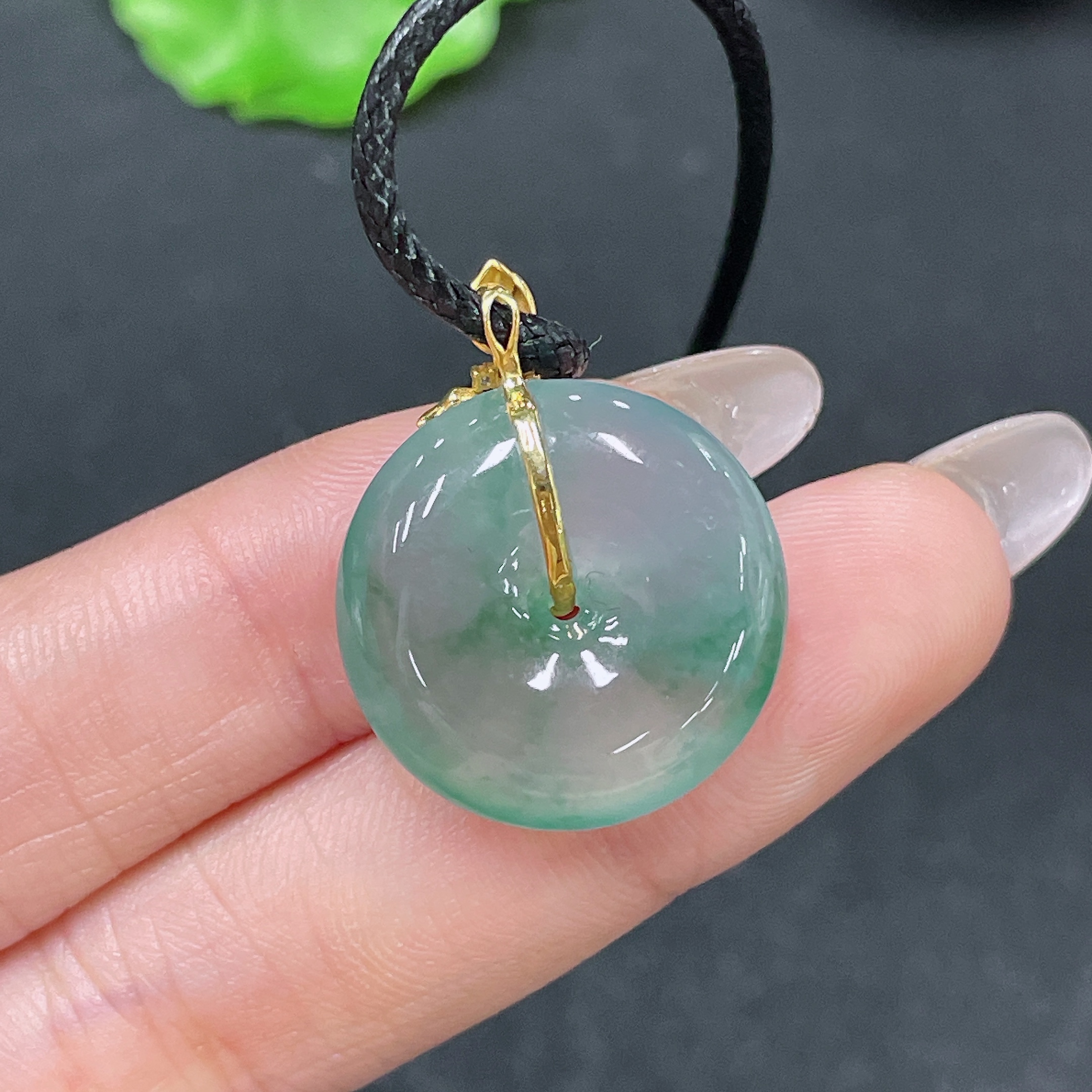 Jadeite Pendant Peace Buckle with 18k Clasp and Cord, Total Weight Approx. 7.26g