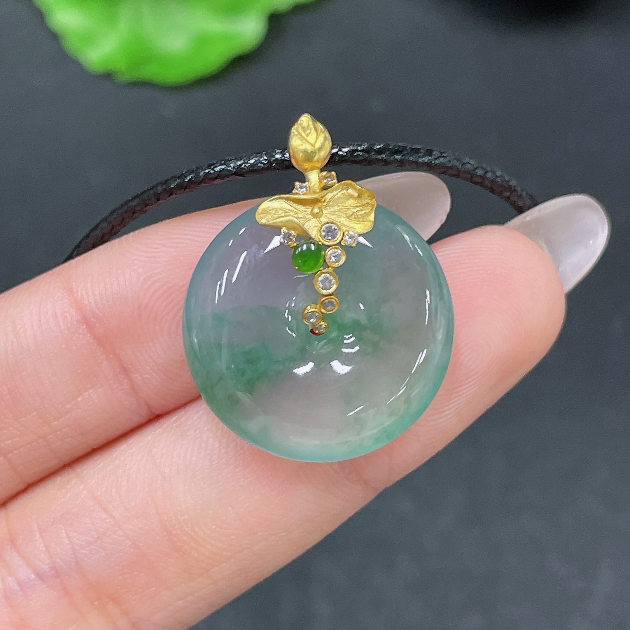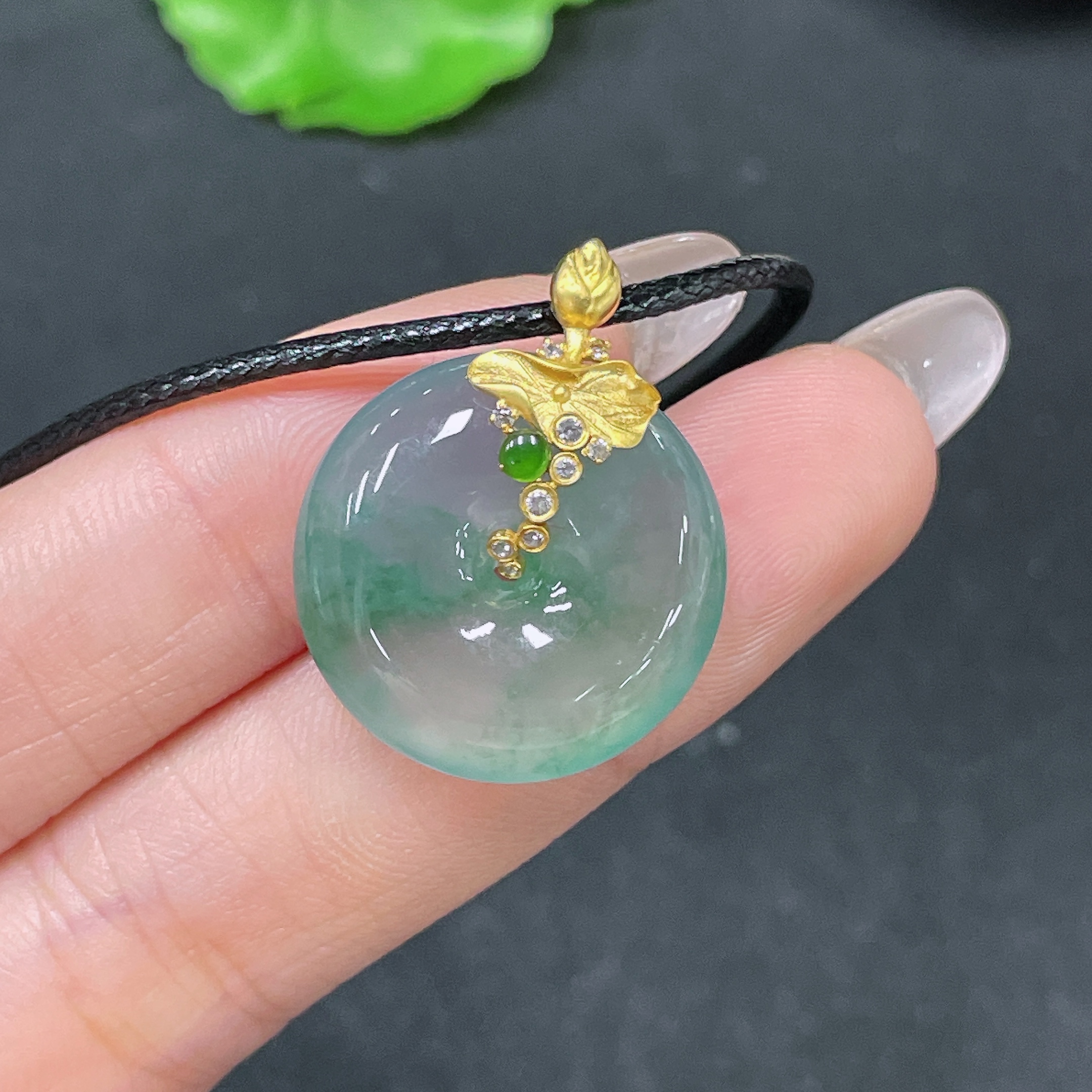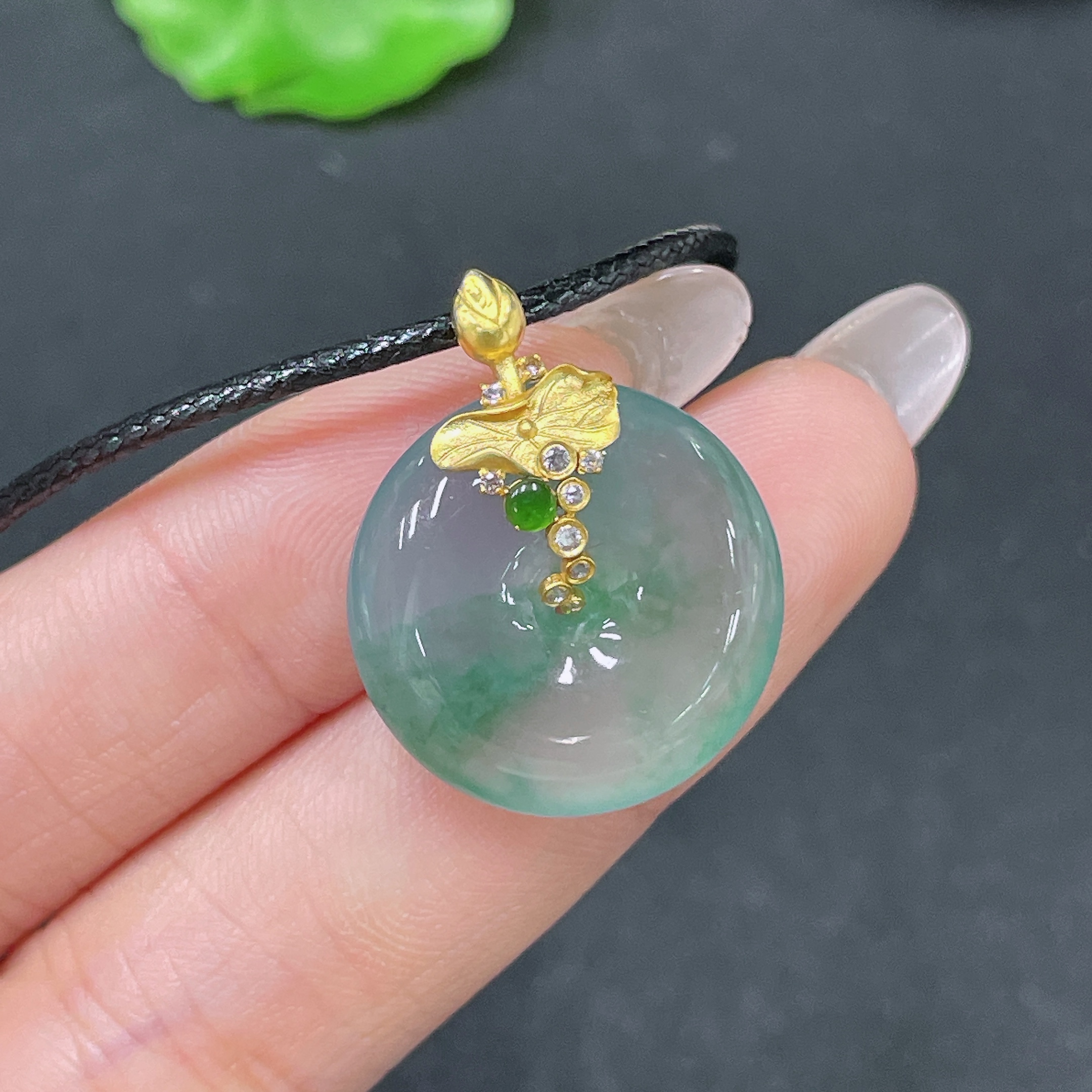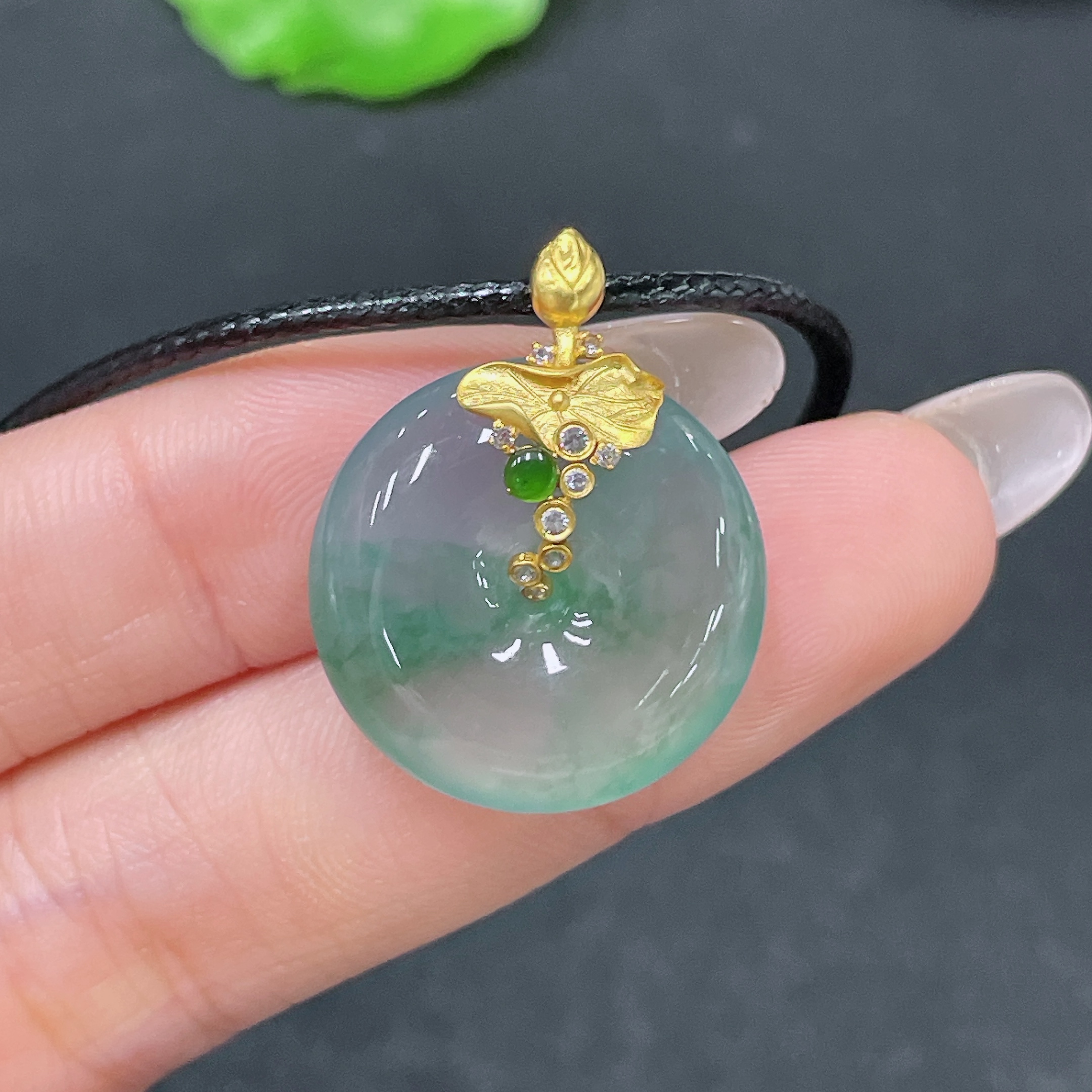 Jadeite Pendant Peace Buckle with 18k Clasp and Cord, Total Weight Approx. 7.26g
