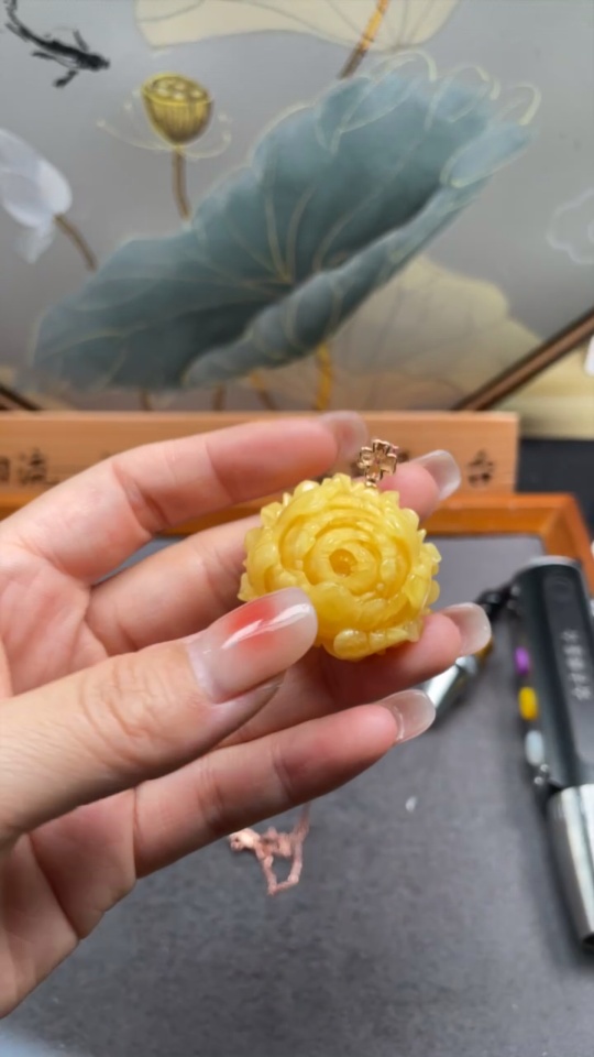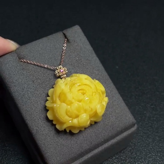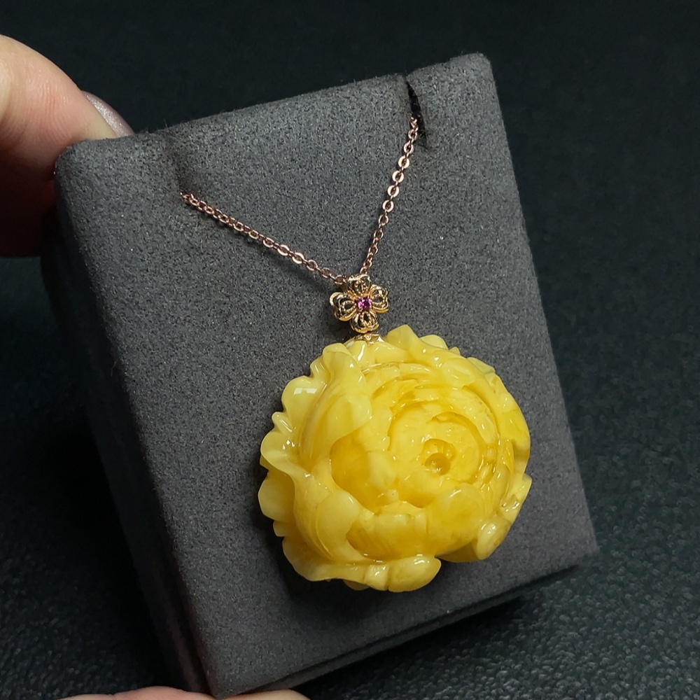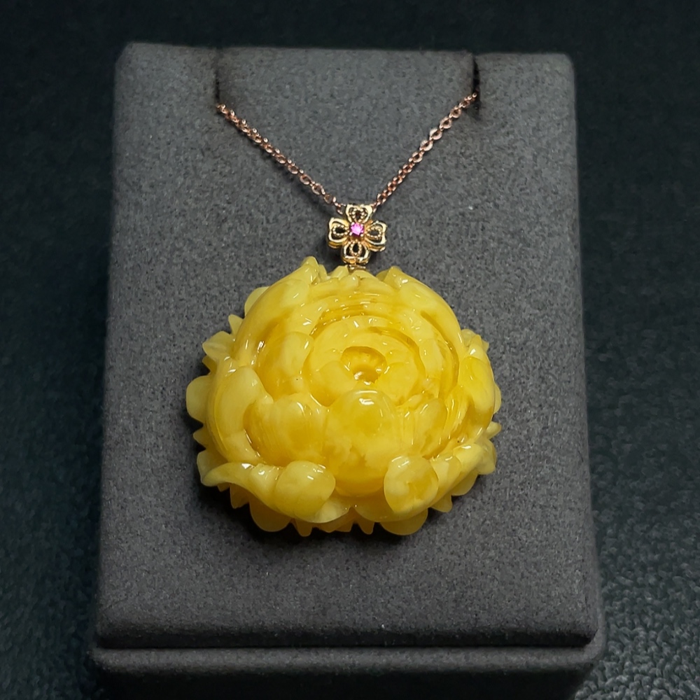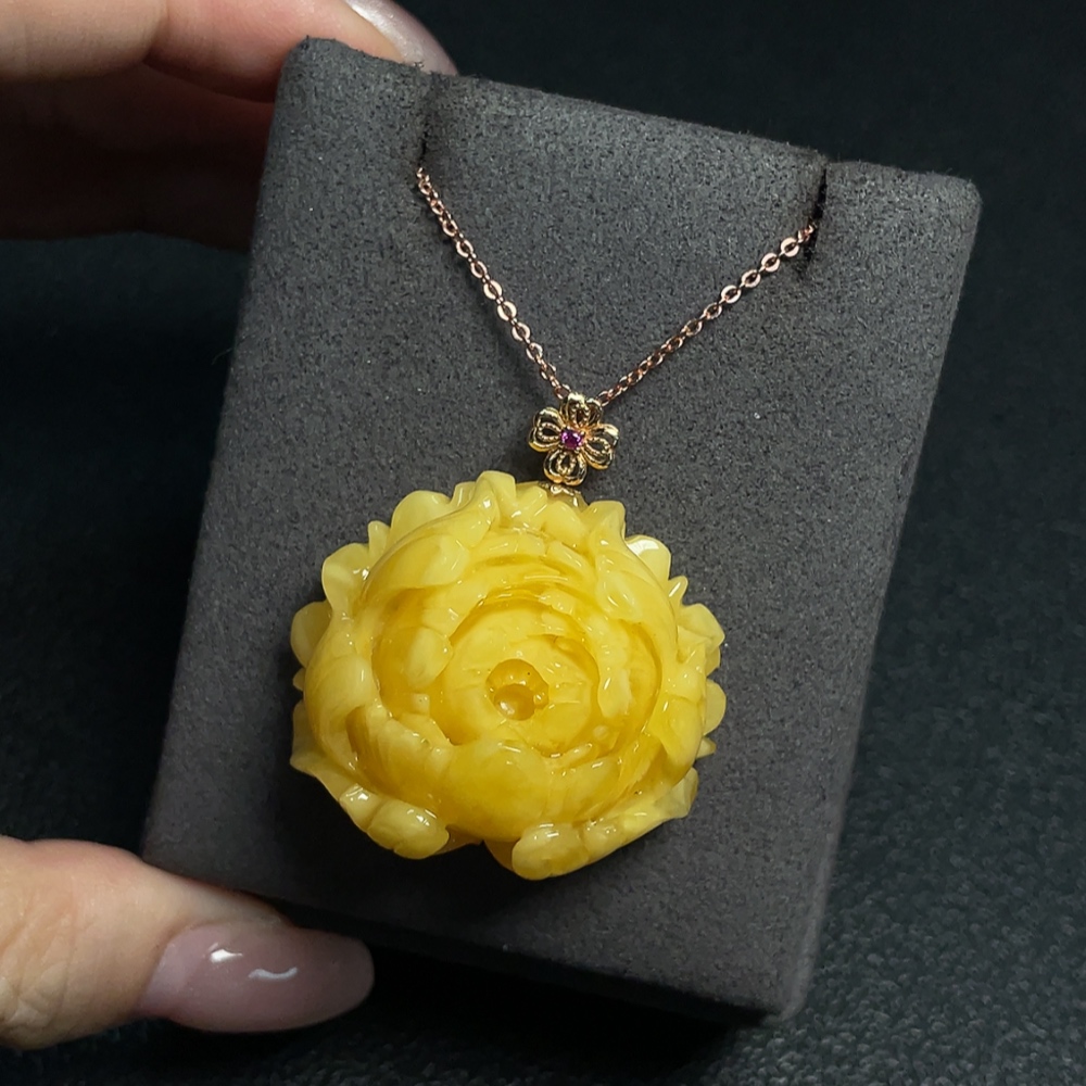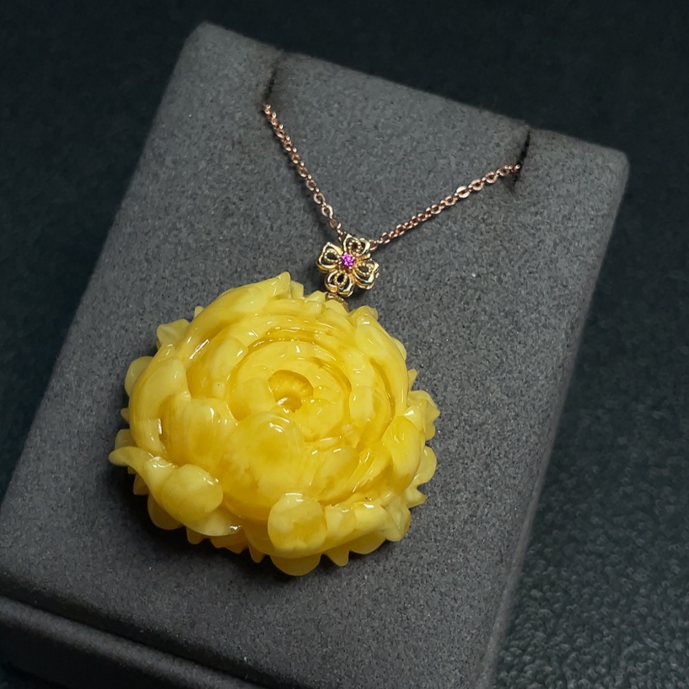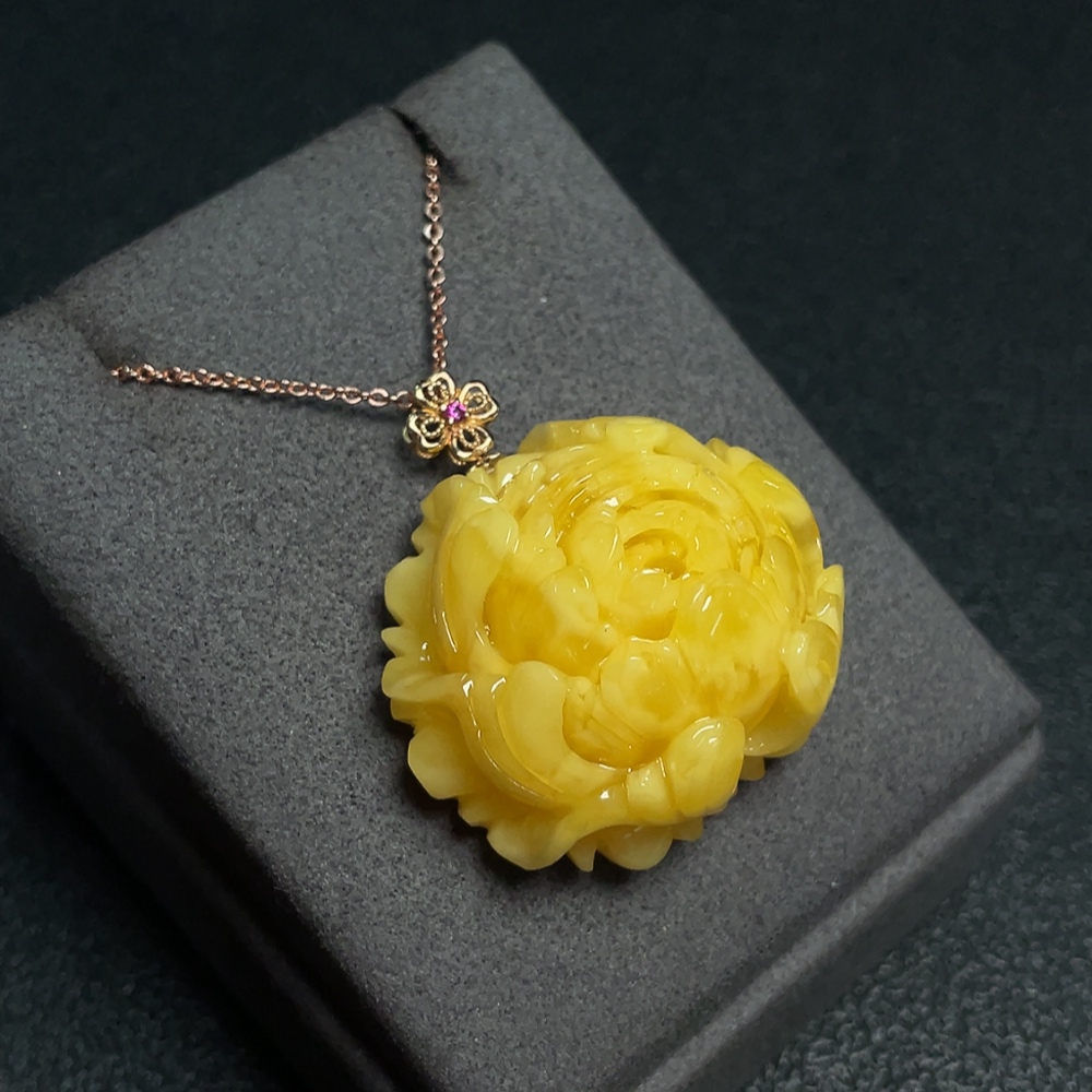 Amber Beeswax Pendant with Colorless Coating, Non-Gold Chain, 18K Gold Pendant, Total Weight Approximately 12.53g