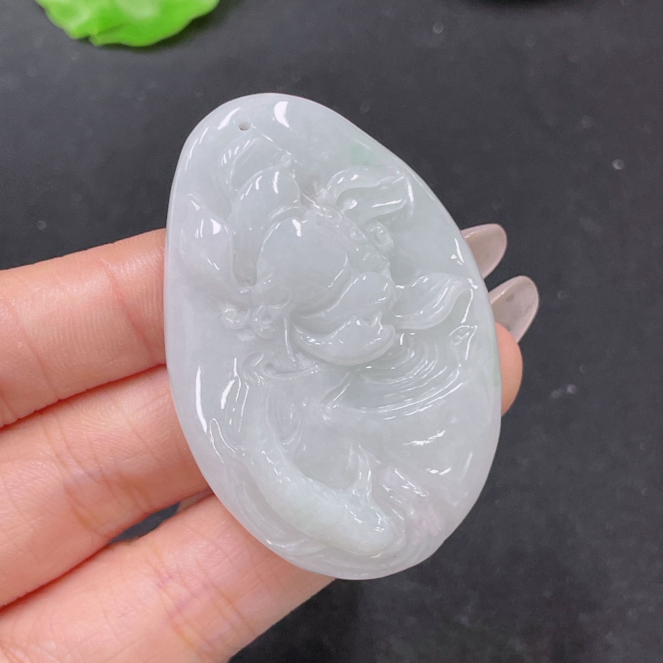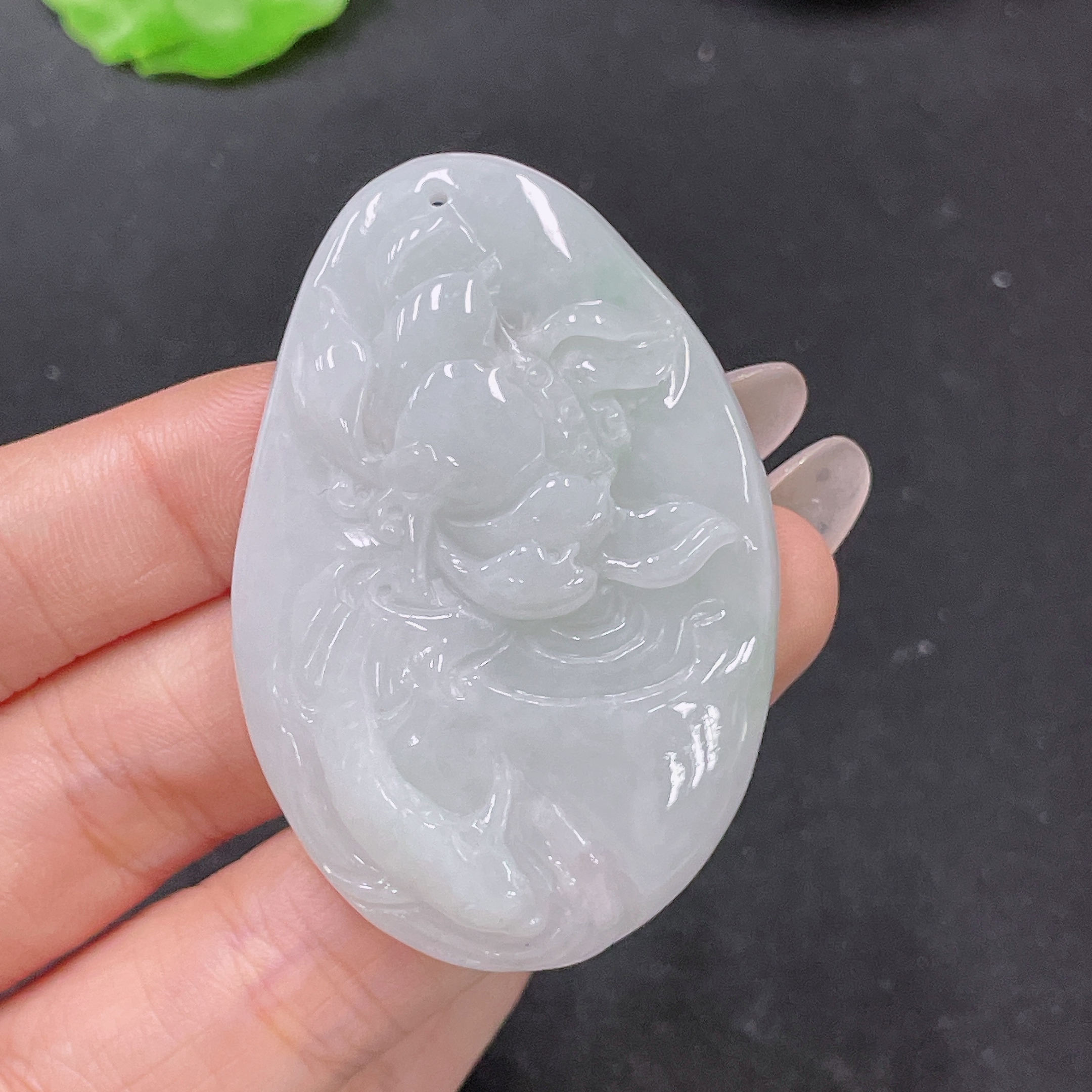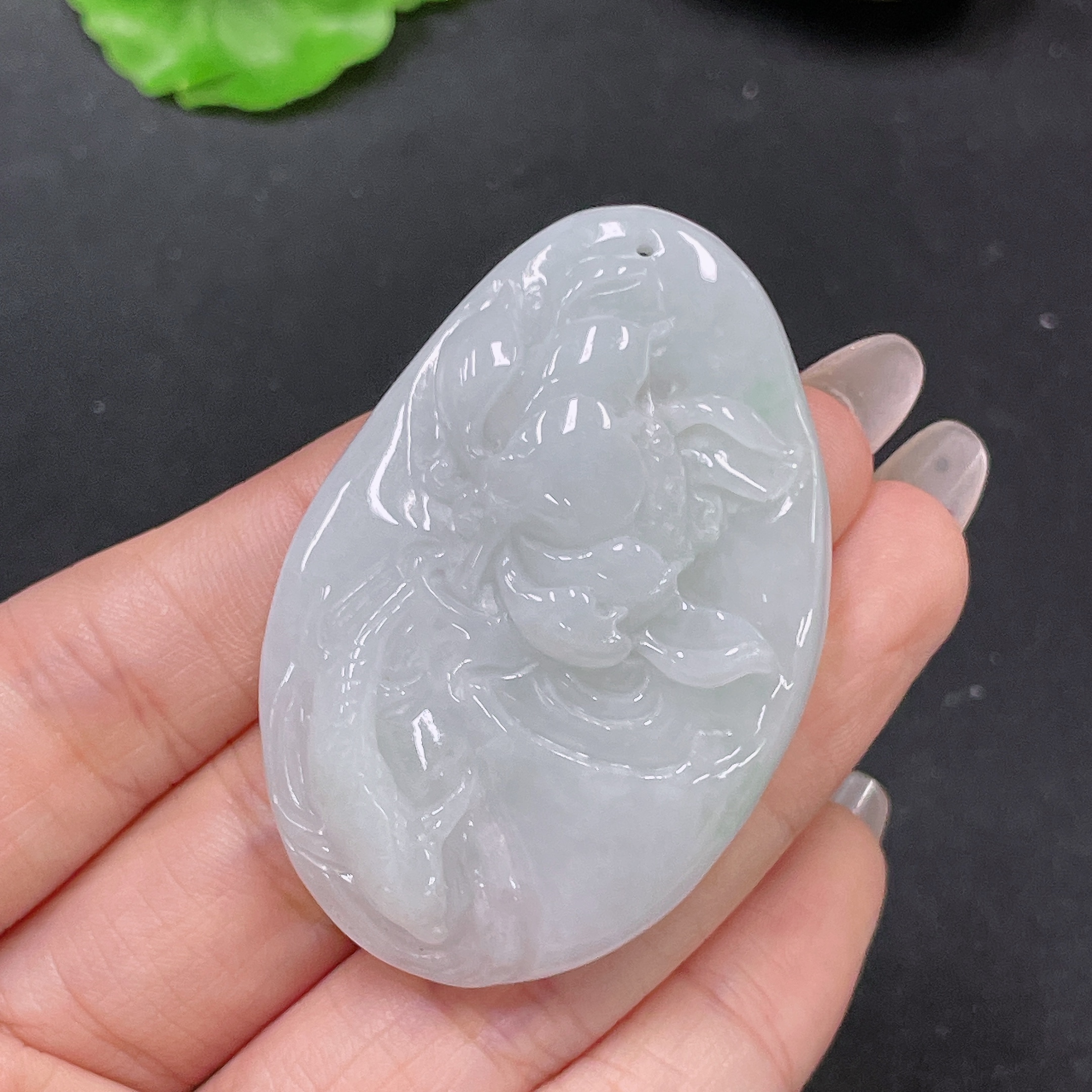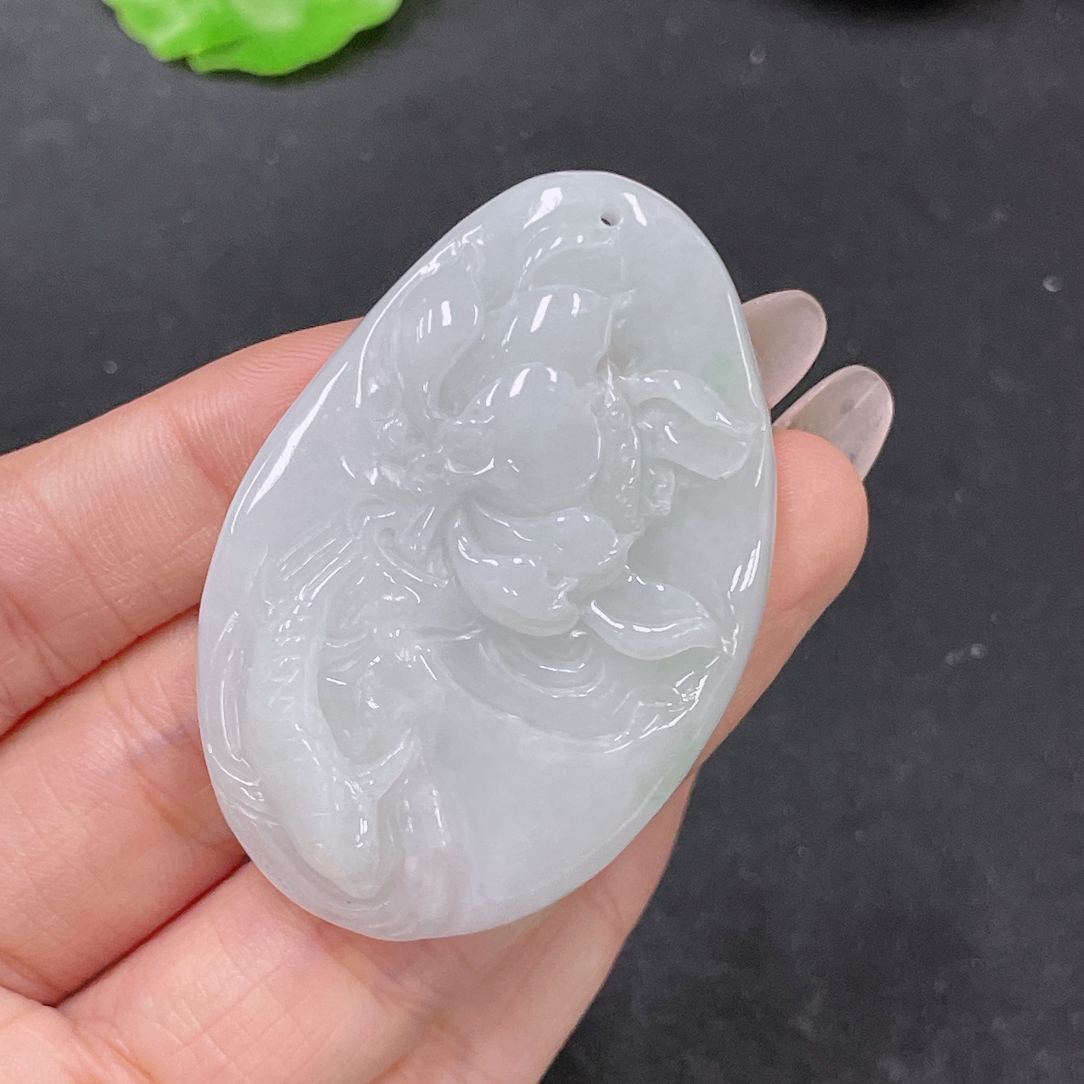 Jadeite Pendant - Flourishing Flowers and Prosperity, Total Weight Approximately 40.77g