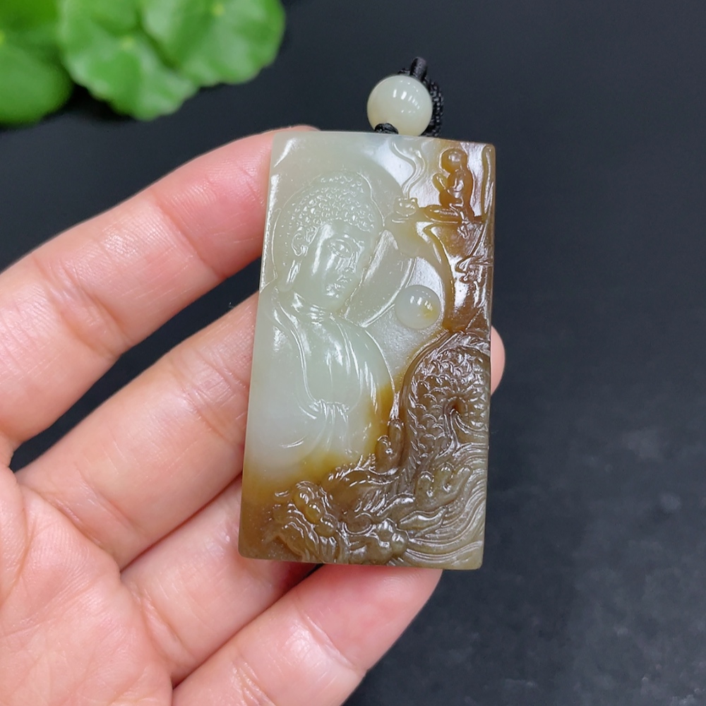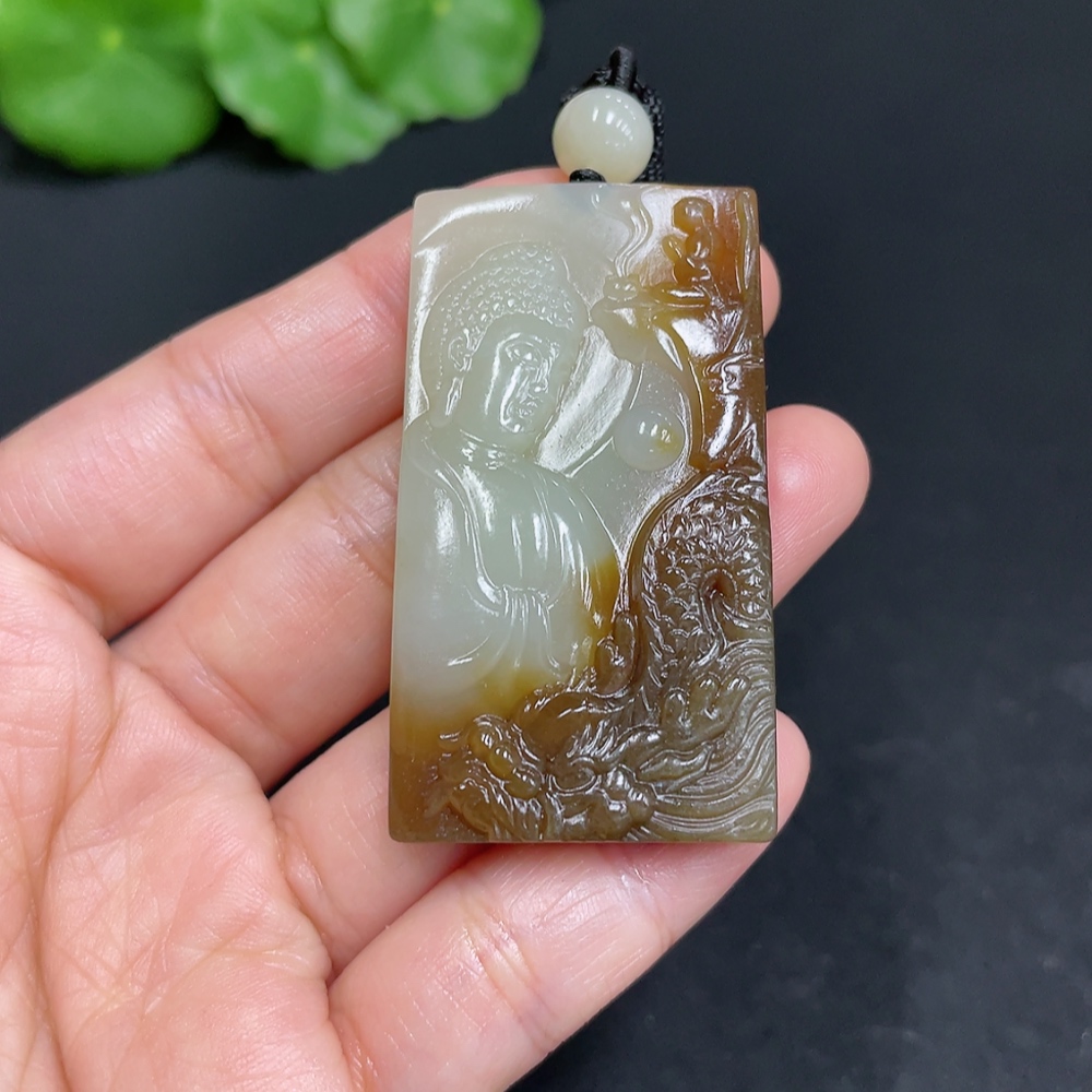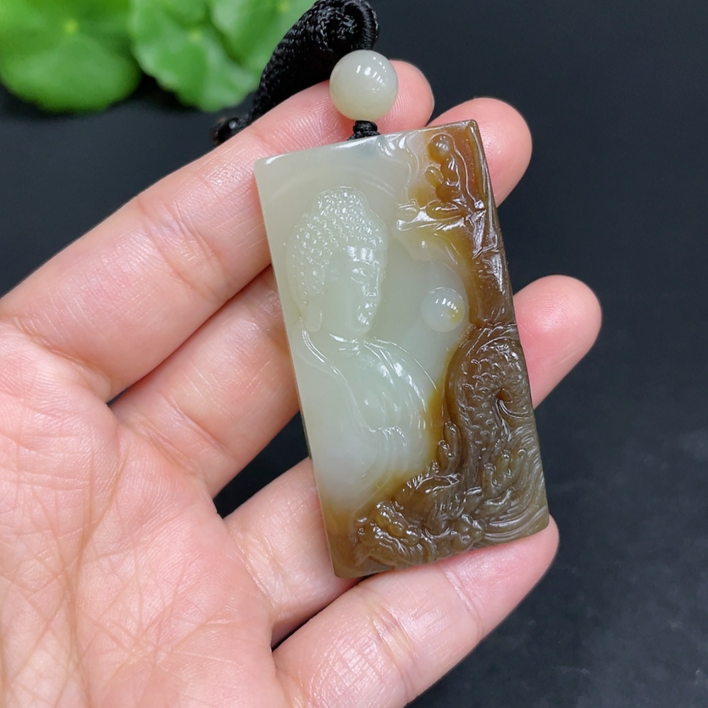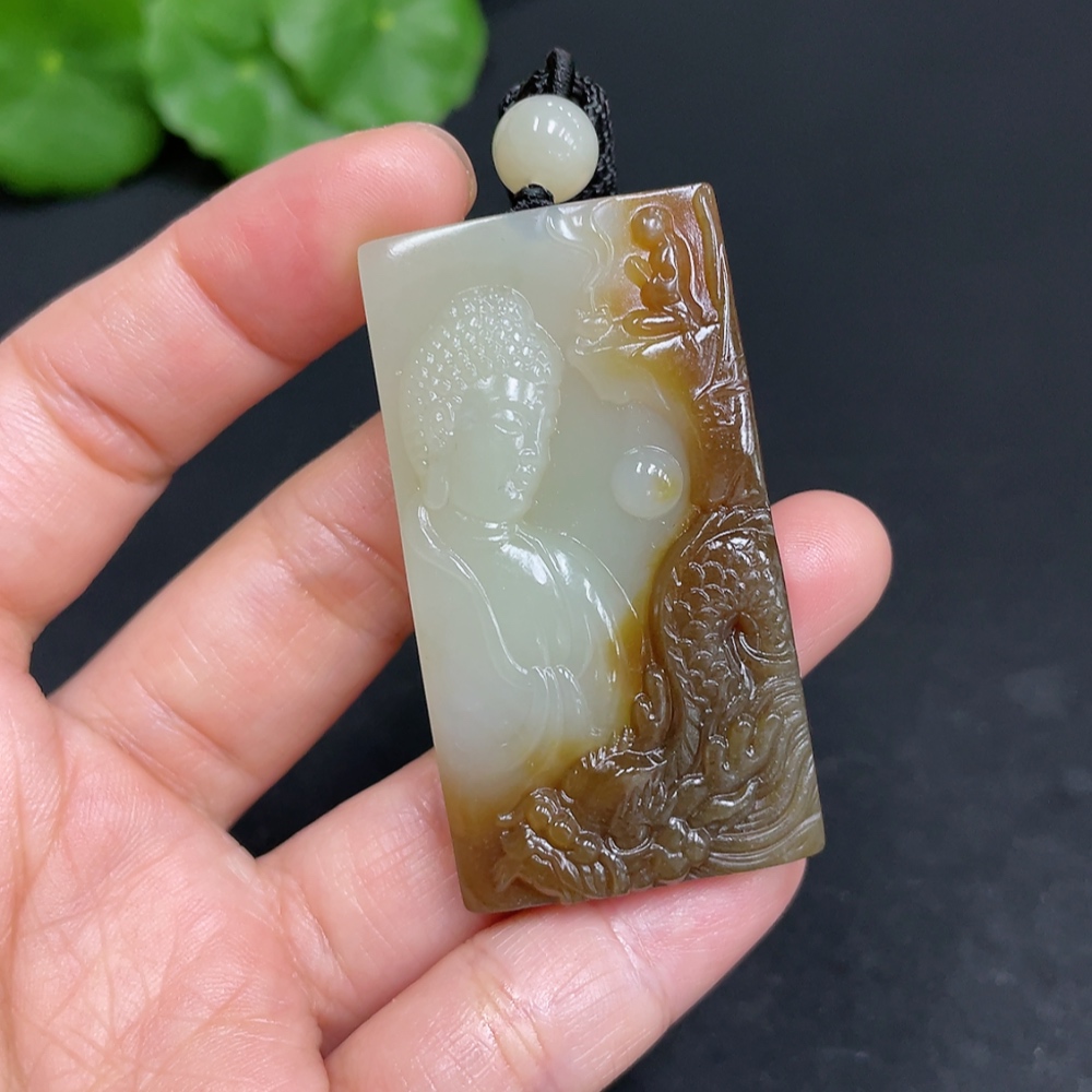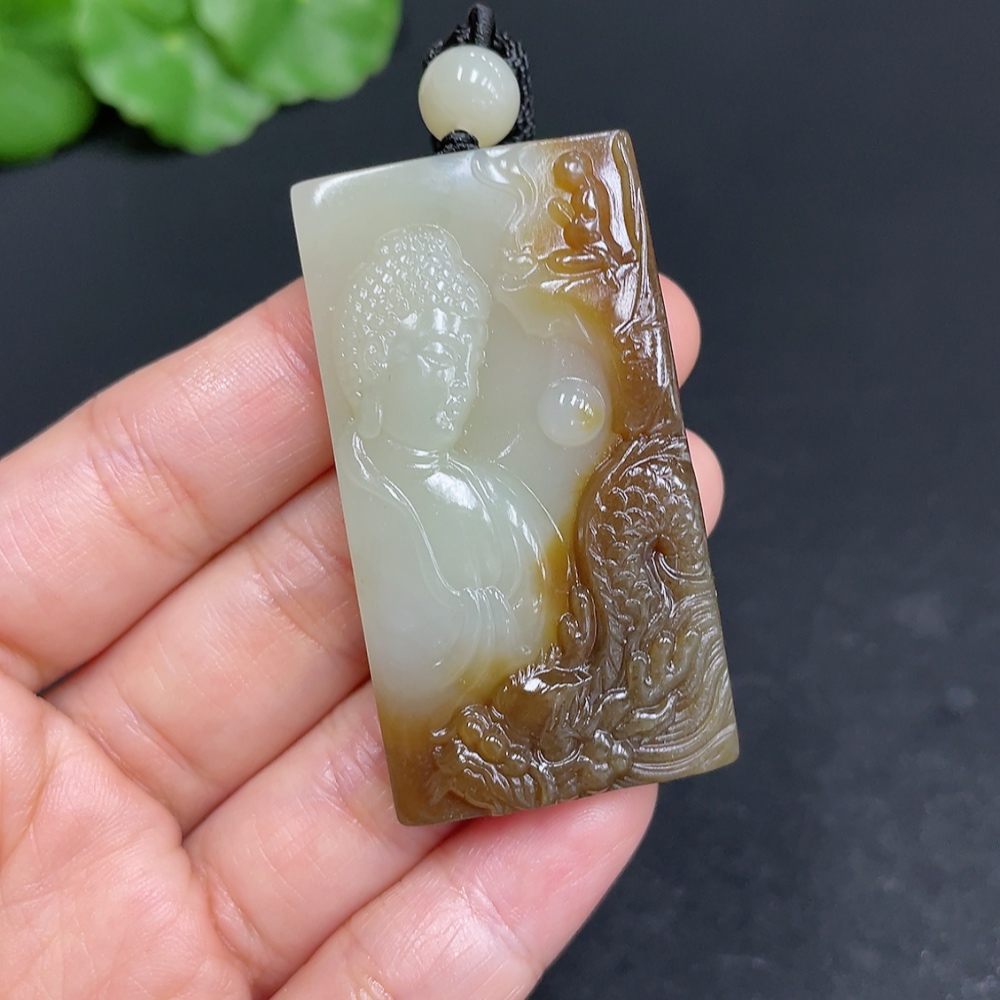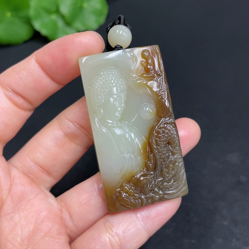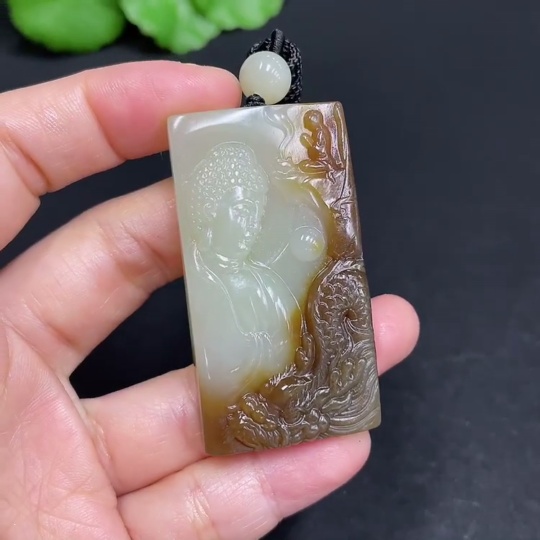 Hetian Jade Pendant Buddha Amulet Total Weight (including rope) 28.7g