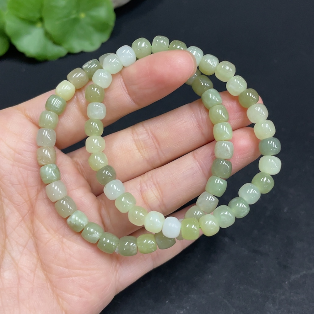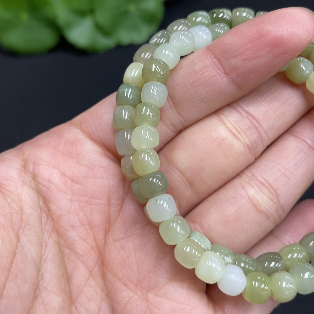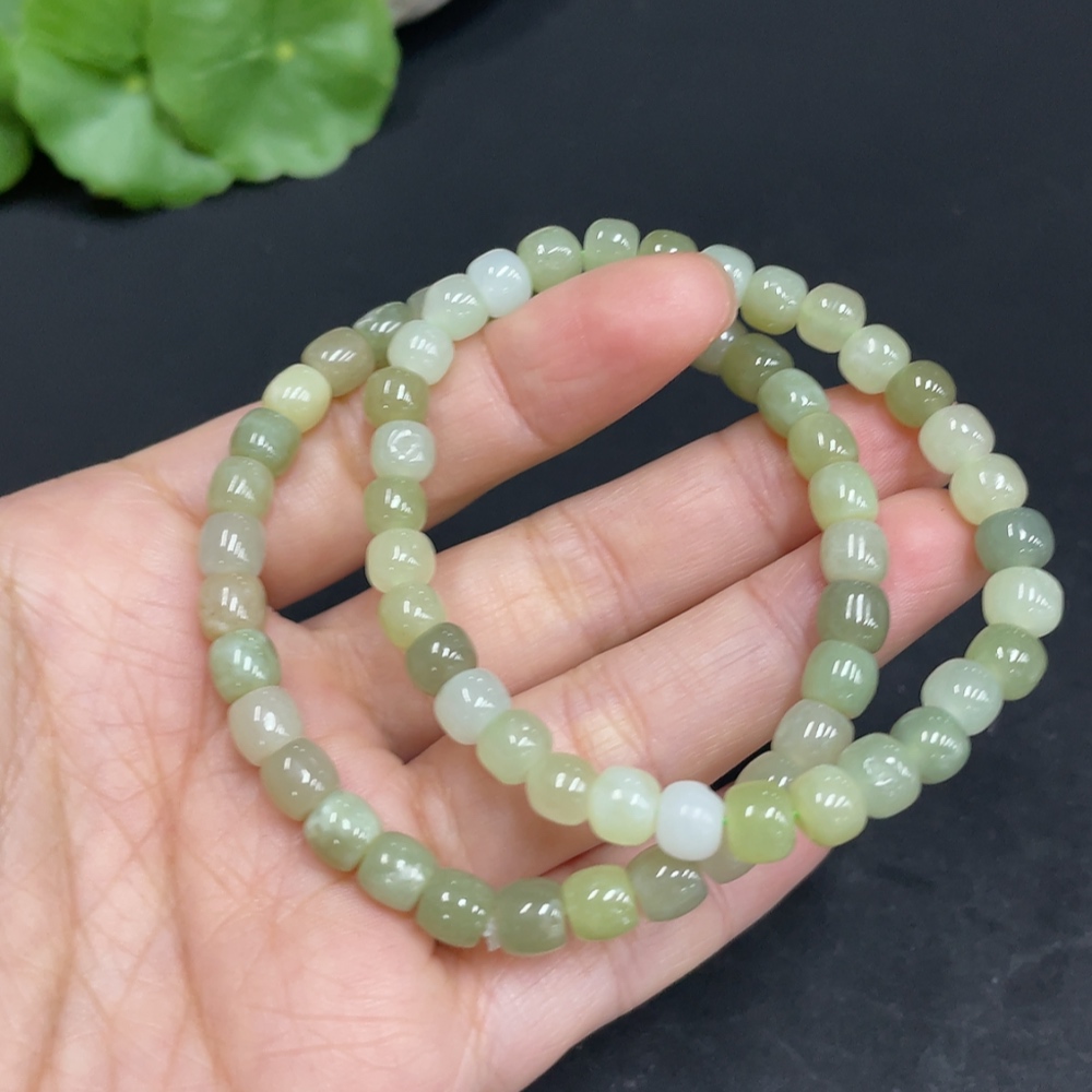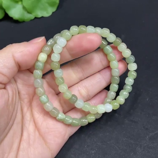 Hetian Jade Bracelet, approx. 5.6/5.8mm, total weight about 21.5g, with non-Hetian Jade beads and impurities