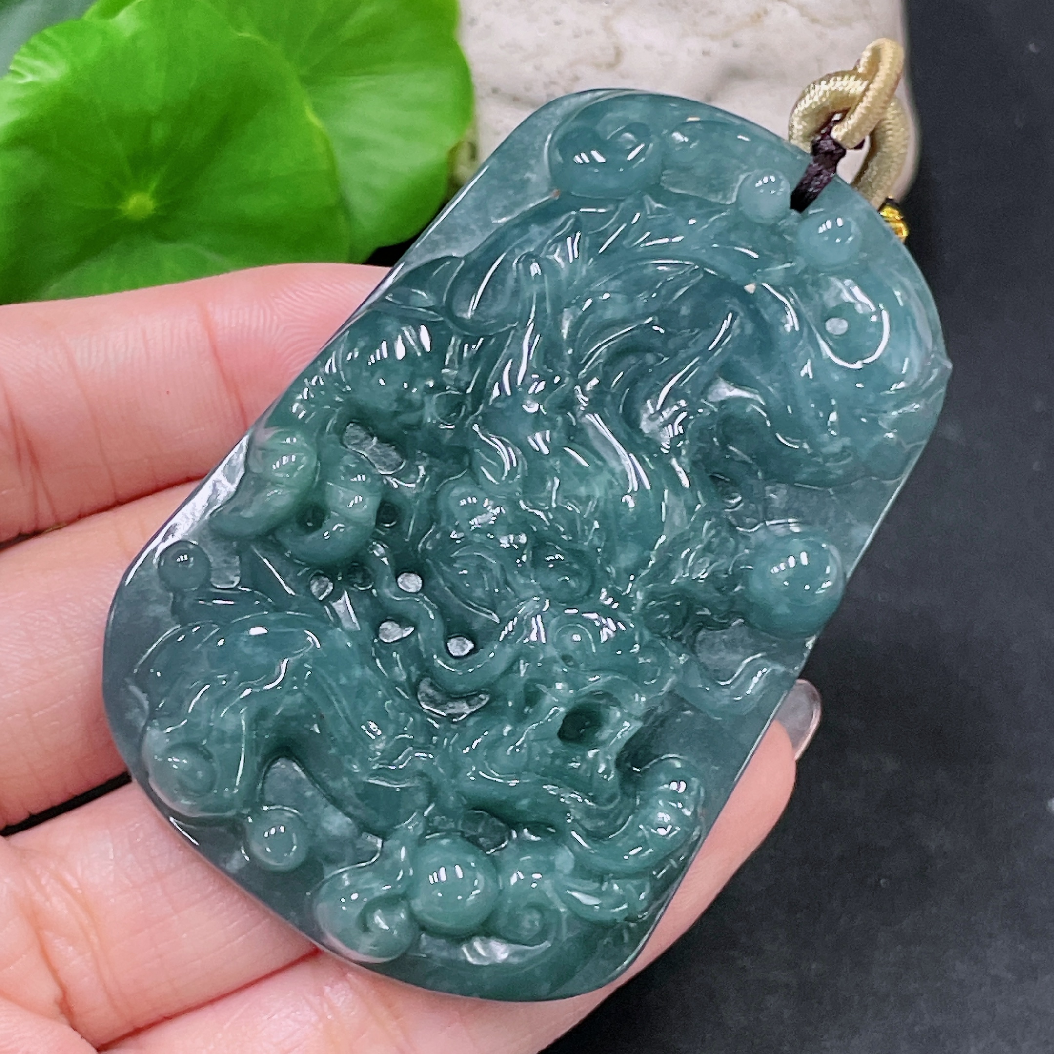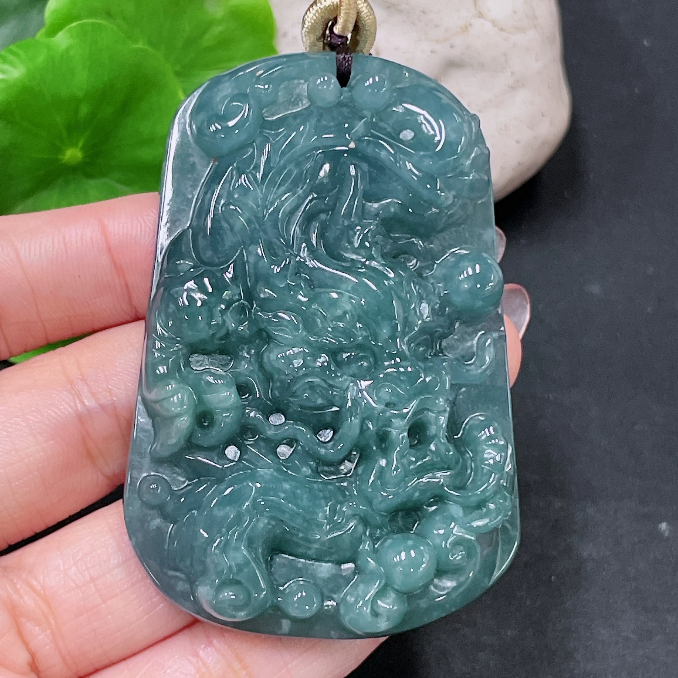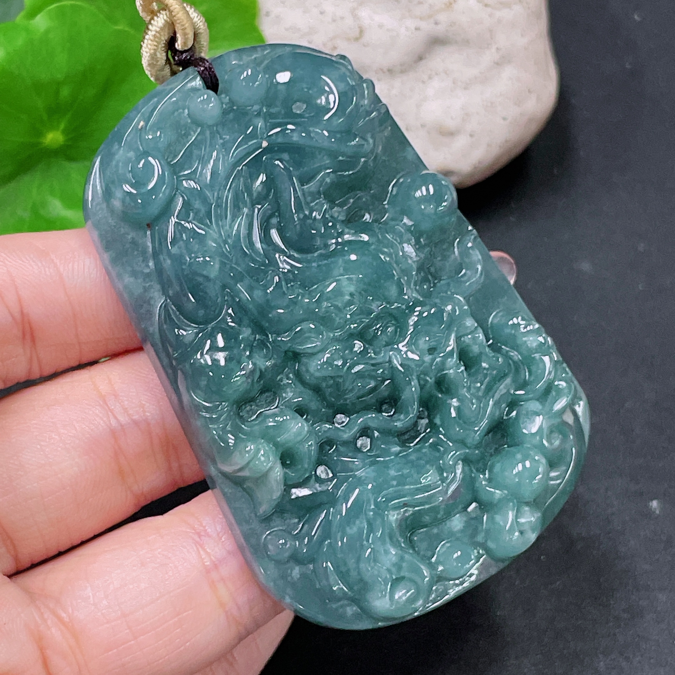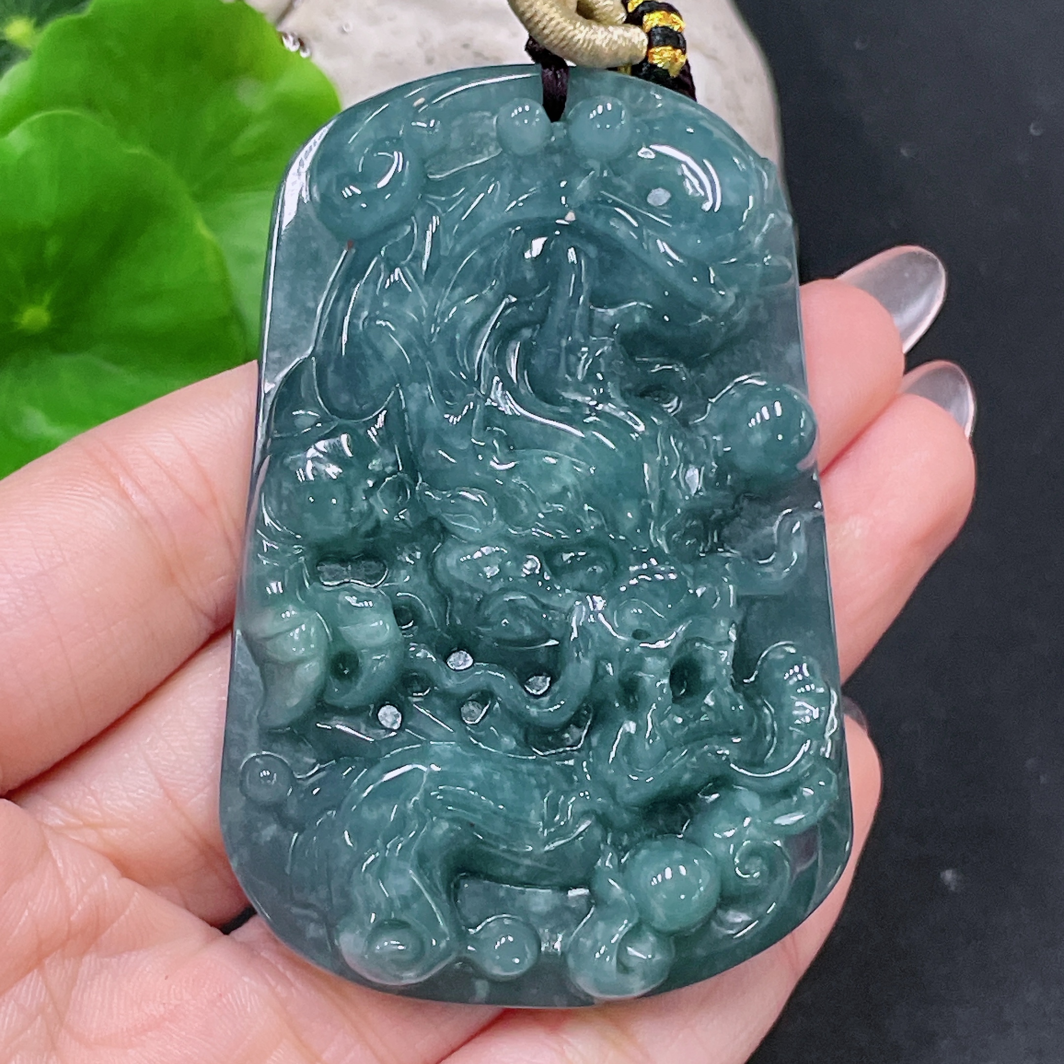 Jadeite Dragon Pendant with Cord, Total Weight Approximately 74.4g